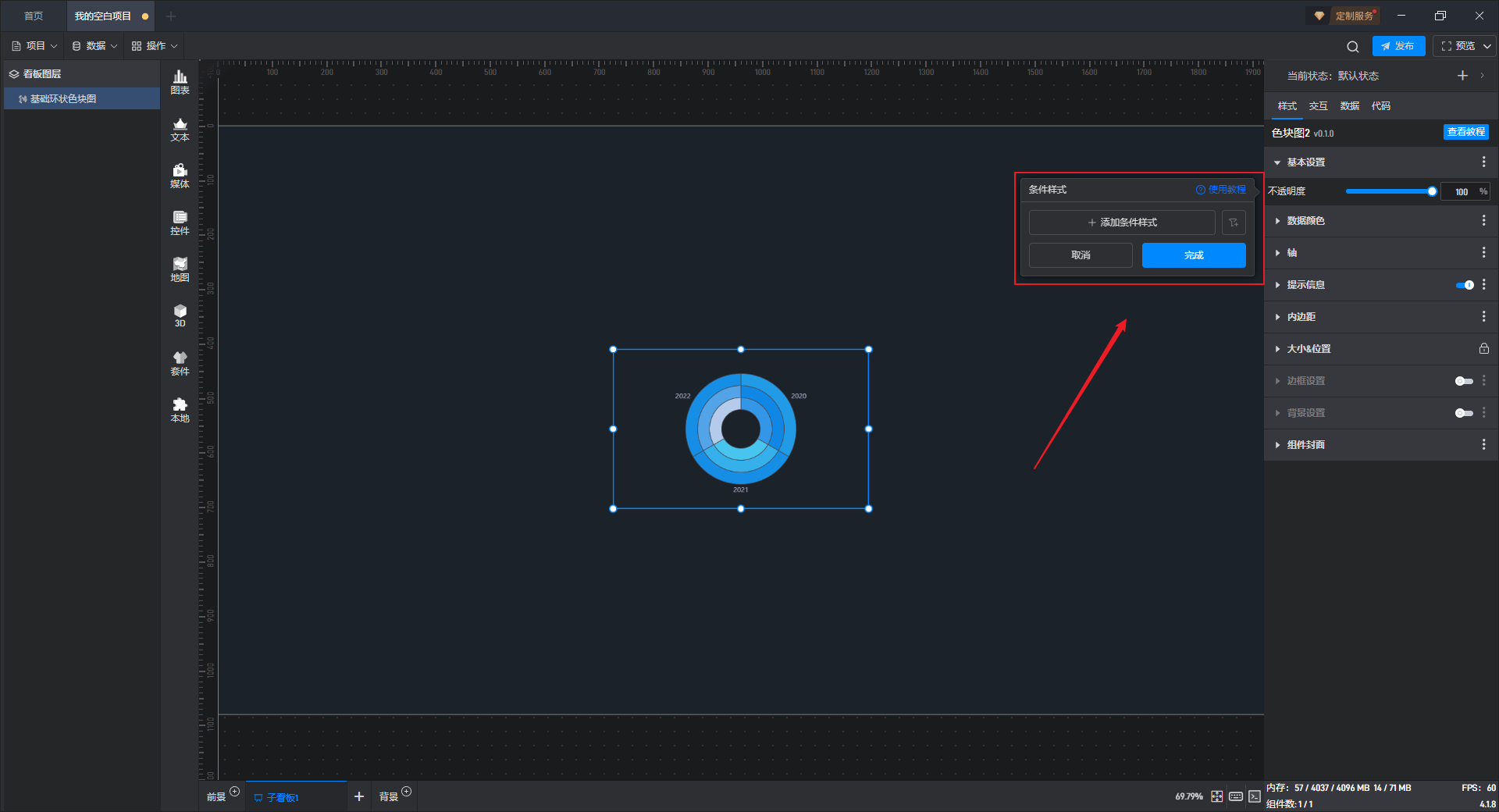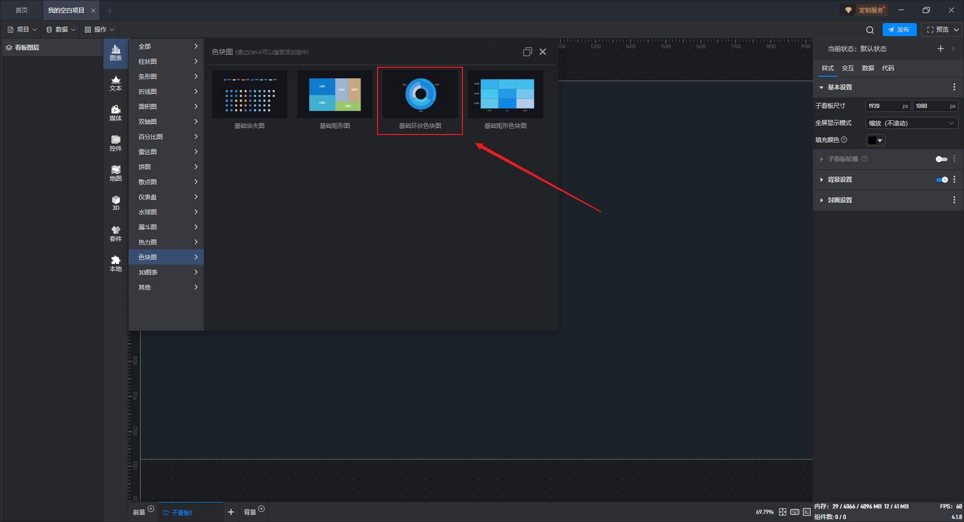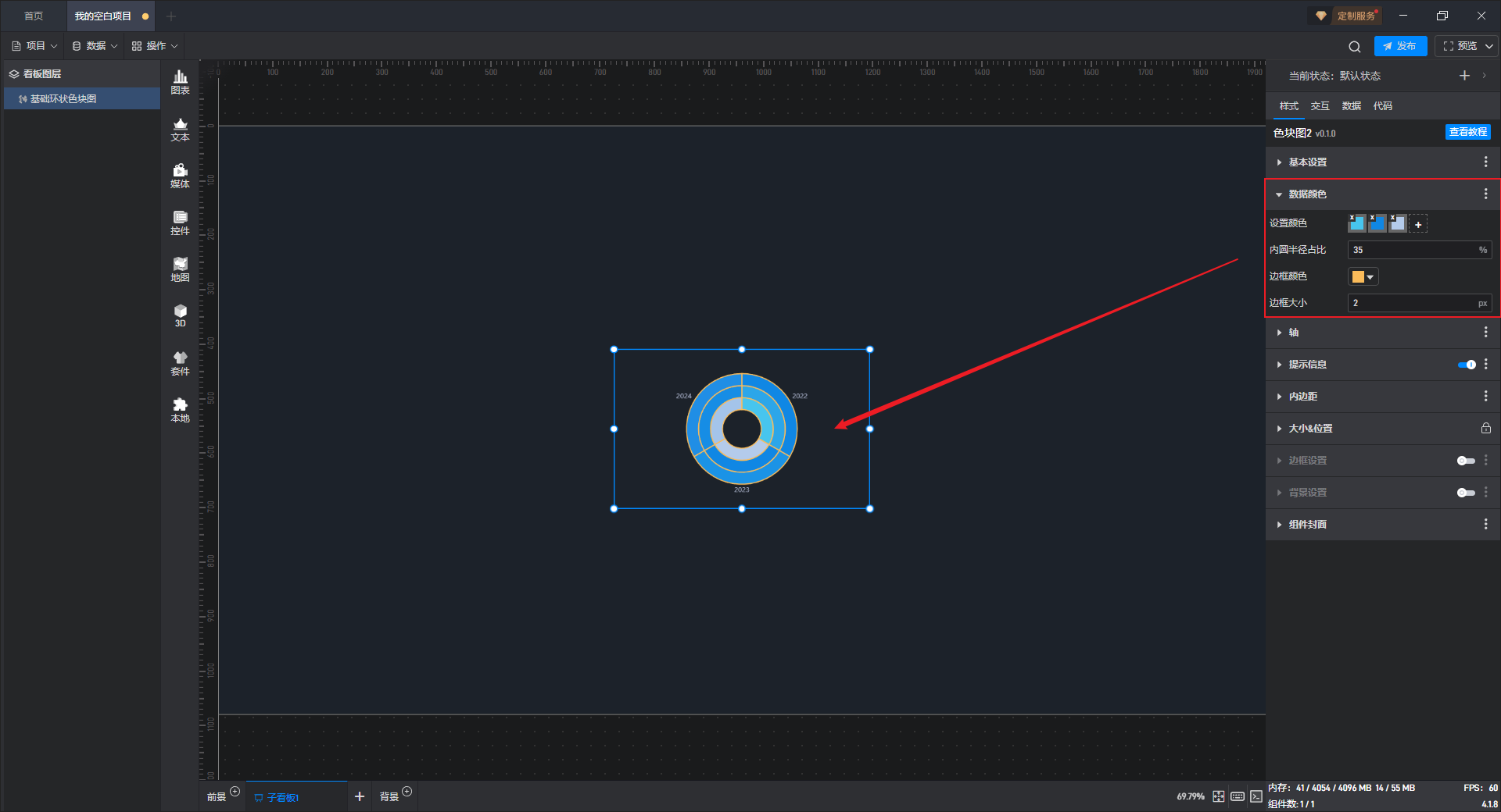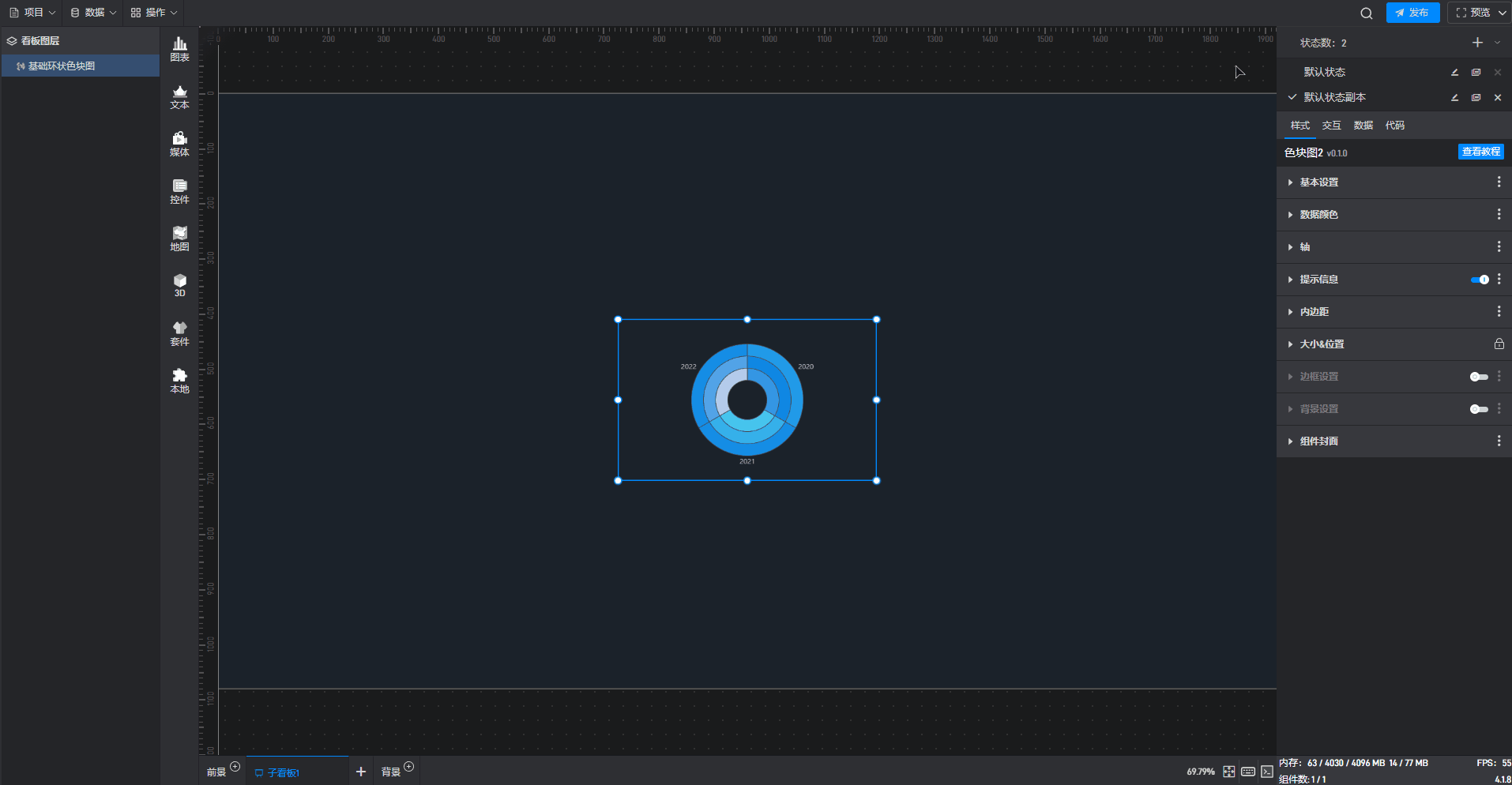 基础环状色块图是色块图组件的一种预设样式,包含了色块图组件所有的功能。