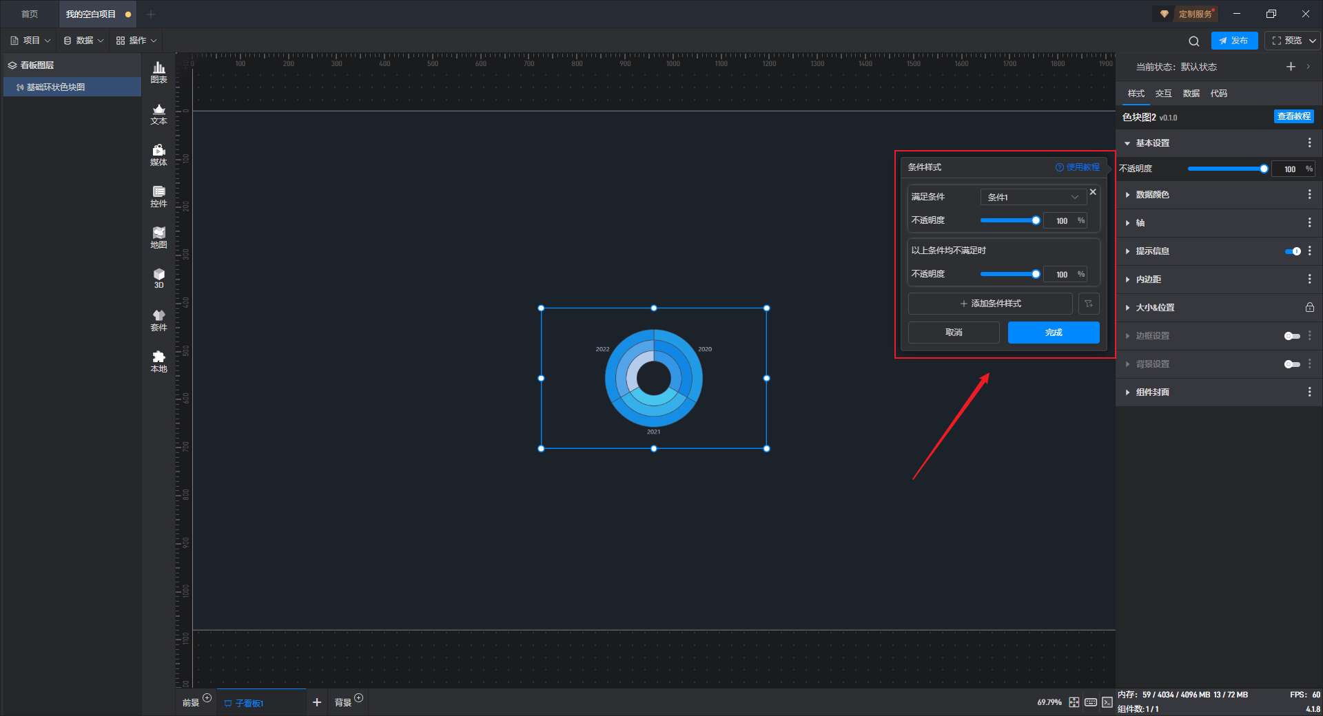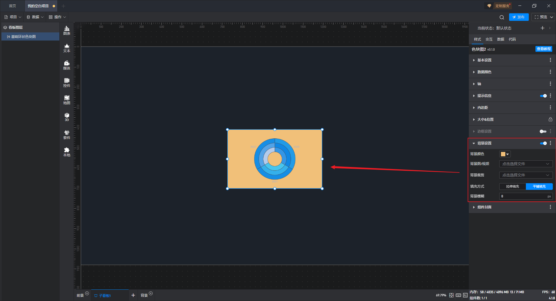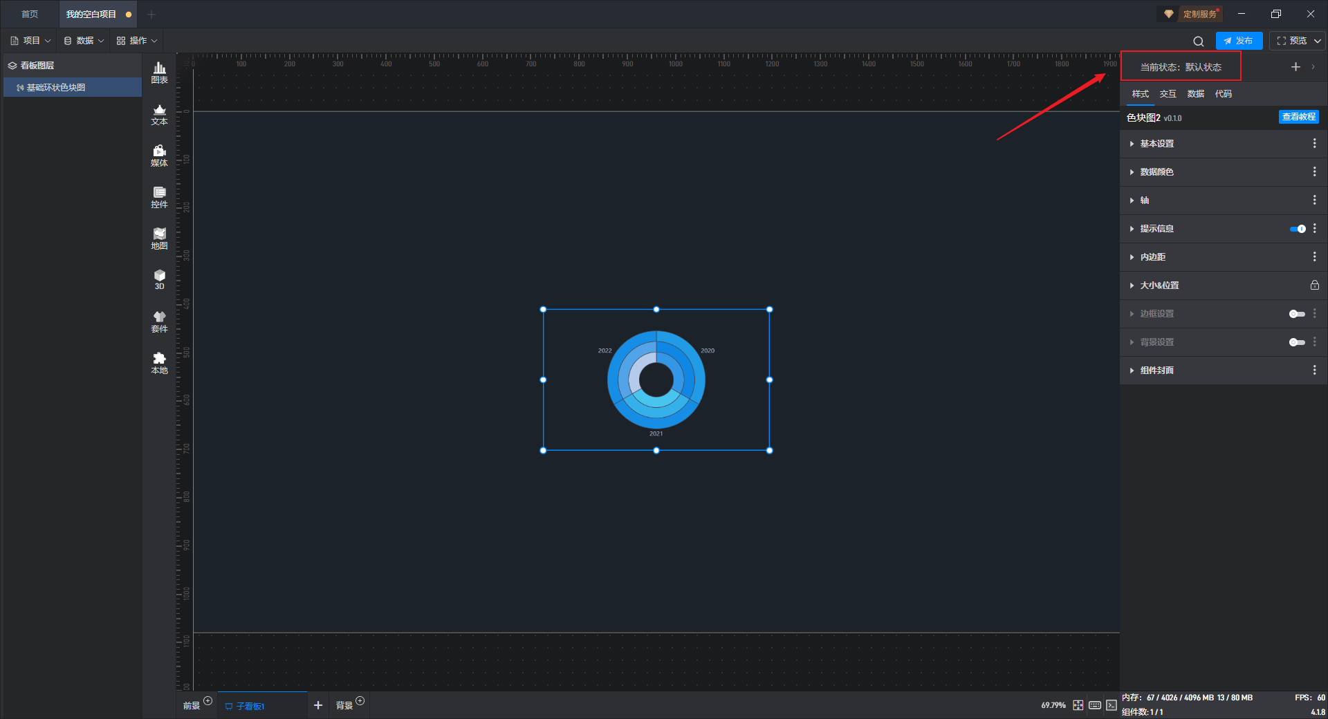 基础环状色块图是色块图组件的一种预设样式,包含了色块图组件所有的功能。