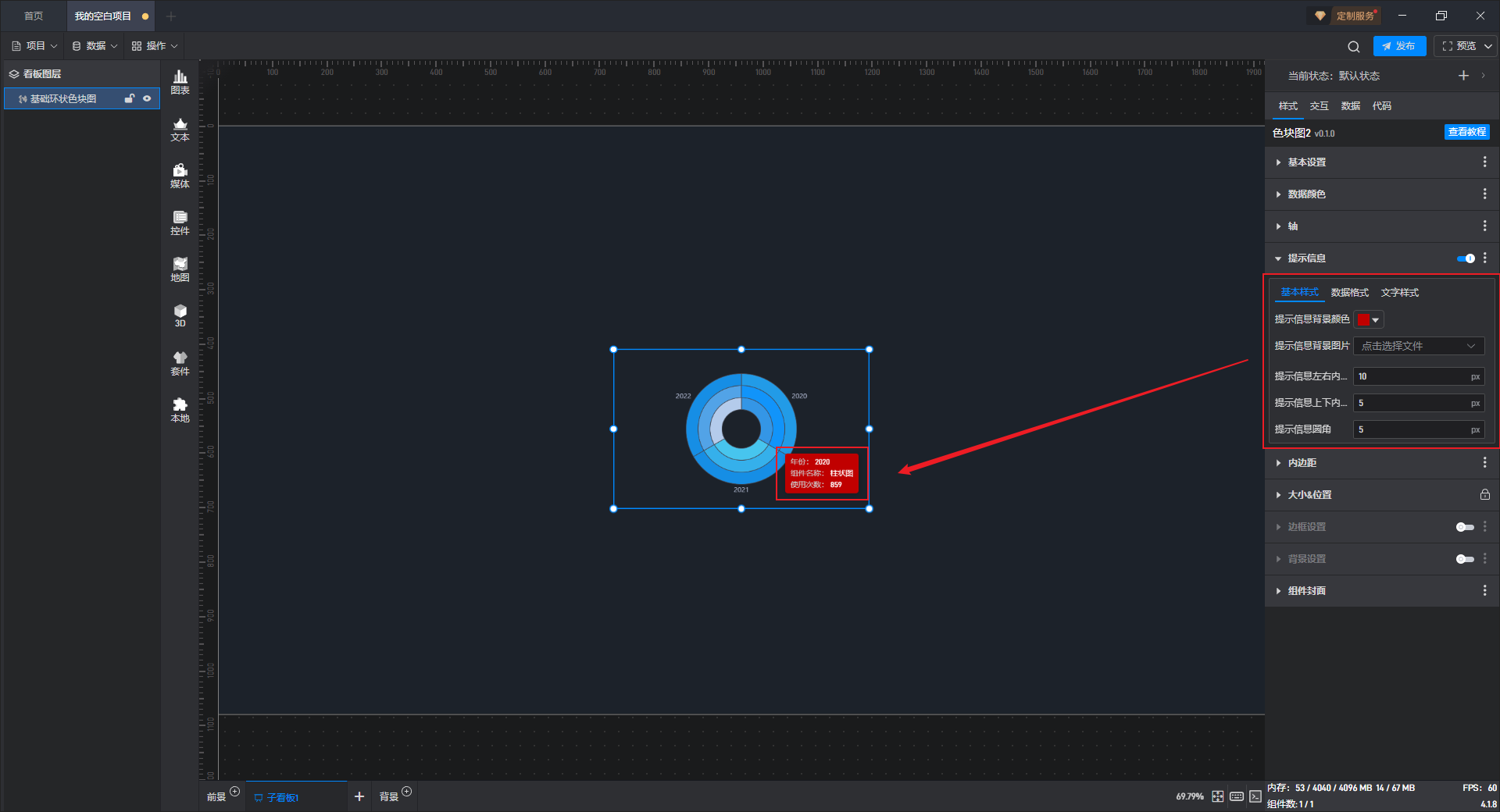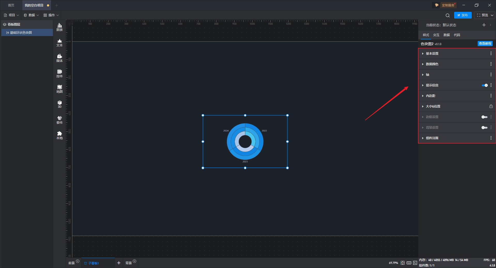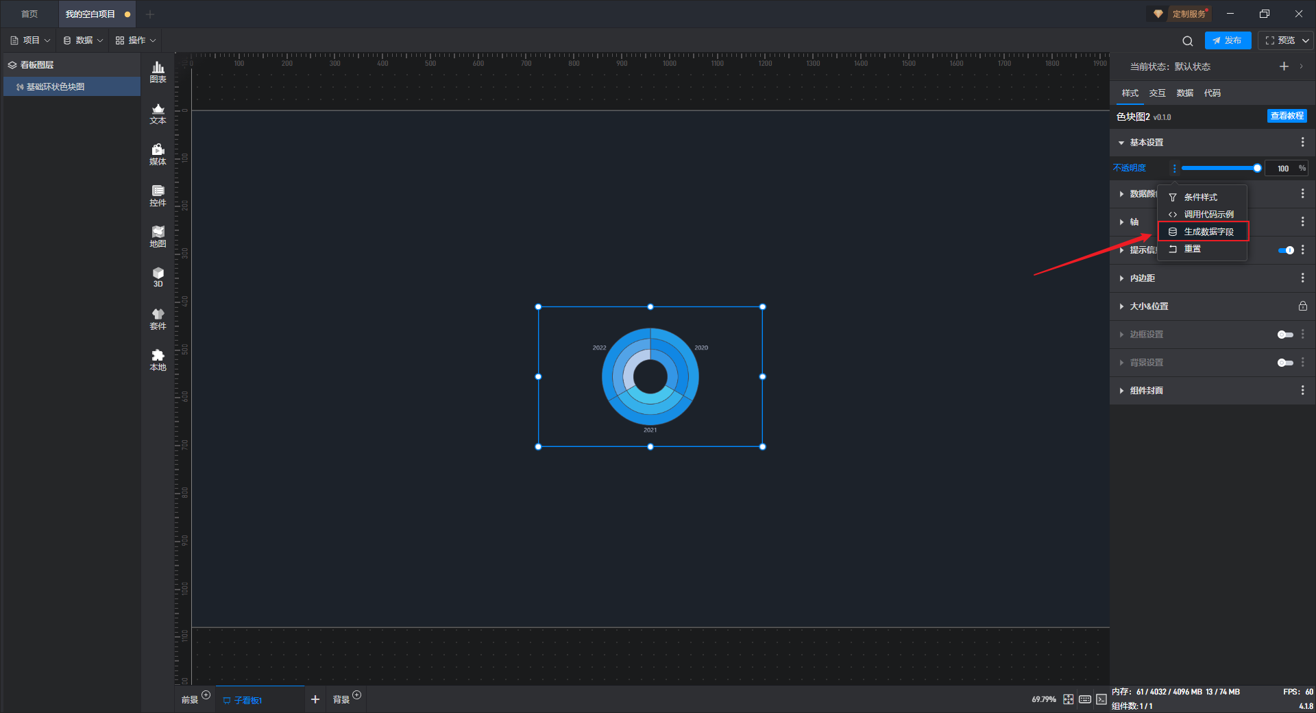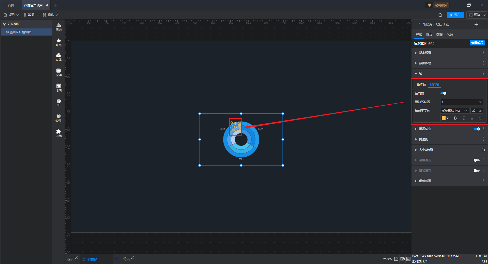 基础环状色块图是色块图组件的一种预设样式,包含了色块图组件所有的功能。