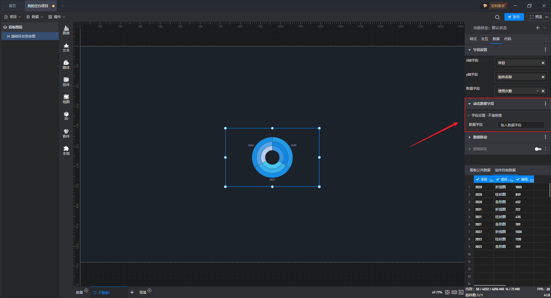 接下来只需要添加一个数据字段到这里,就可以通过数据来控制不透明度了。