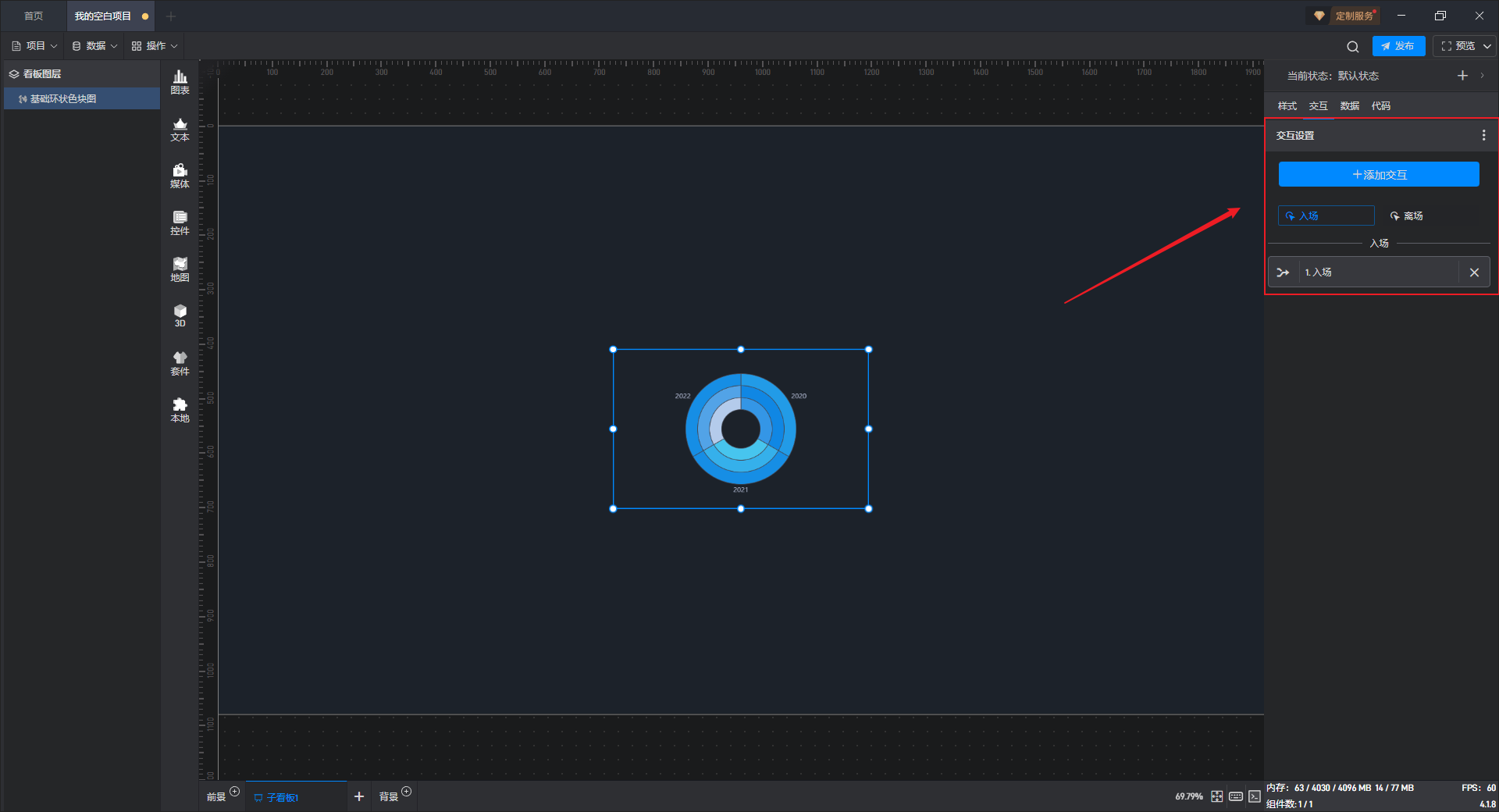 点击选中组件,在右侧“交互”设置窗口中可以对当前组件的交互进行添加和删除。