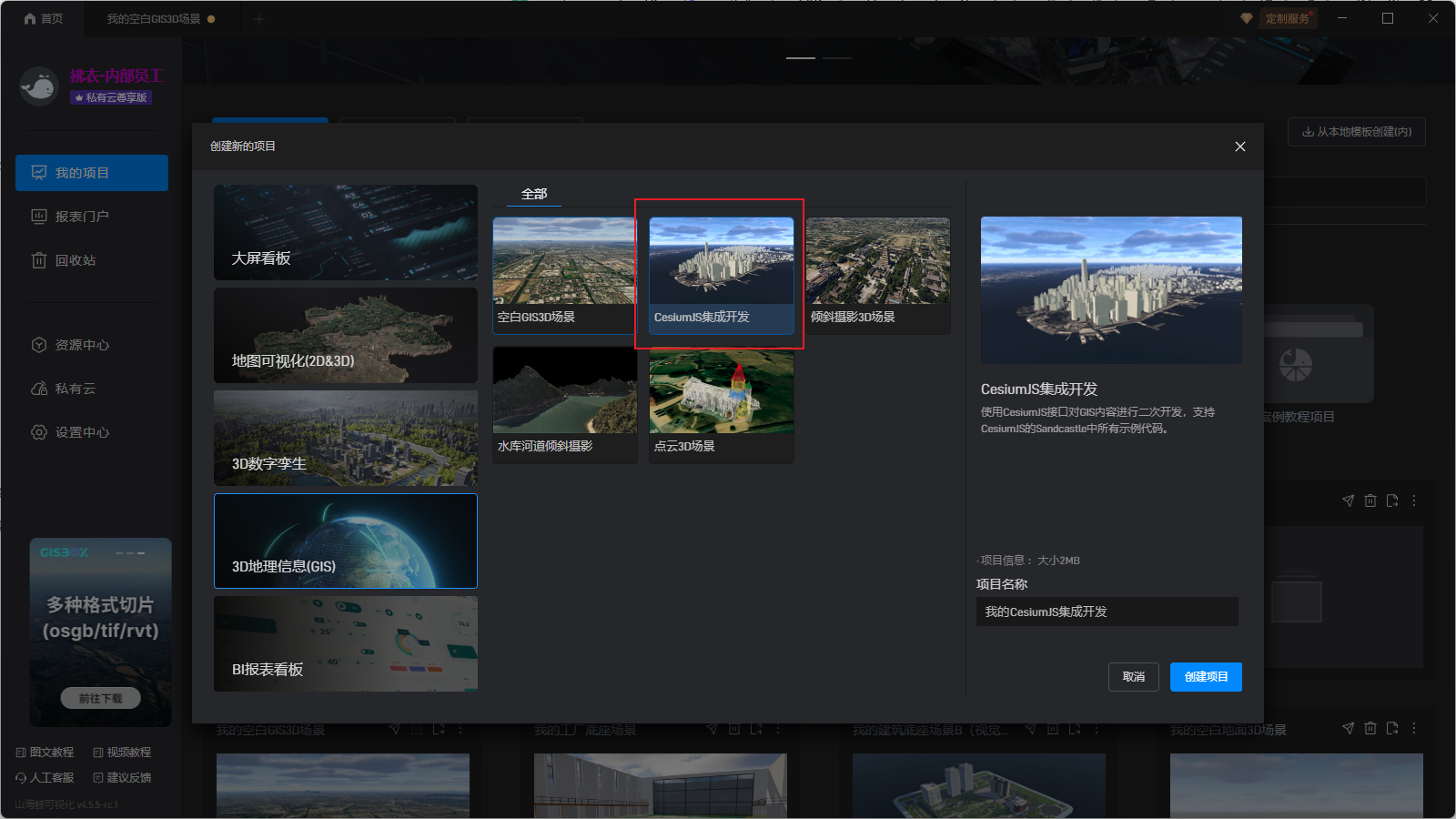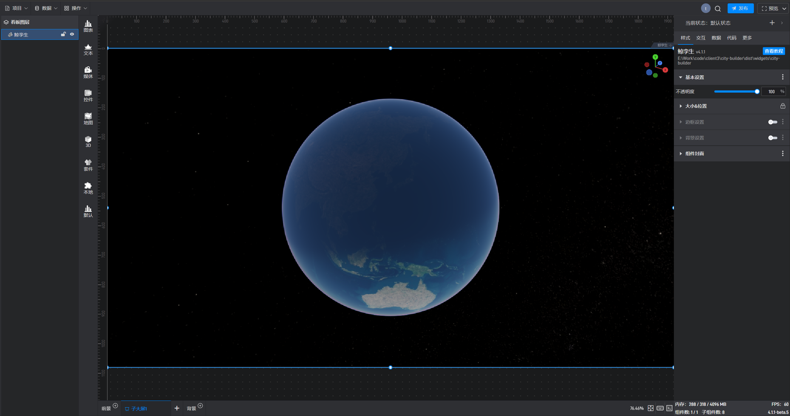 山海鲸可视化中的鲸孪生组件中的 GIS 功能整合了 CesiumJS 完整的功能,同时开发了 CesiumJS 的完整接口,方便之前 CesiumJS 项目的快速迁移。