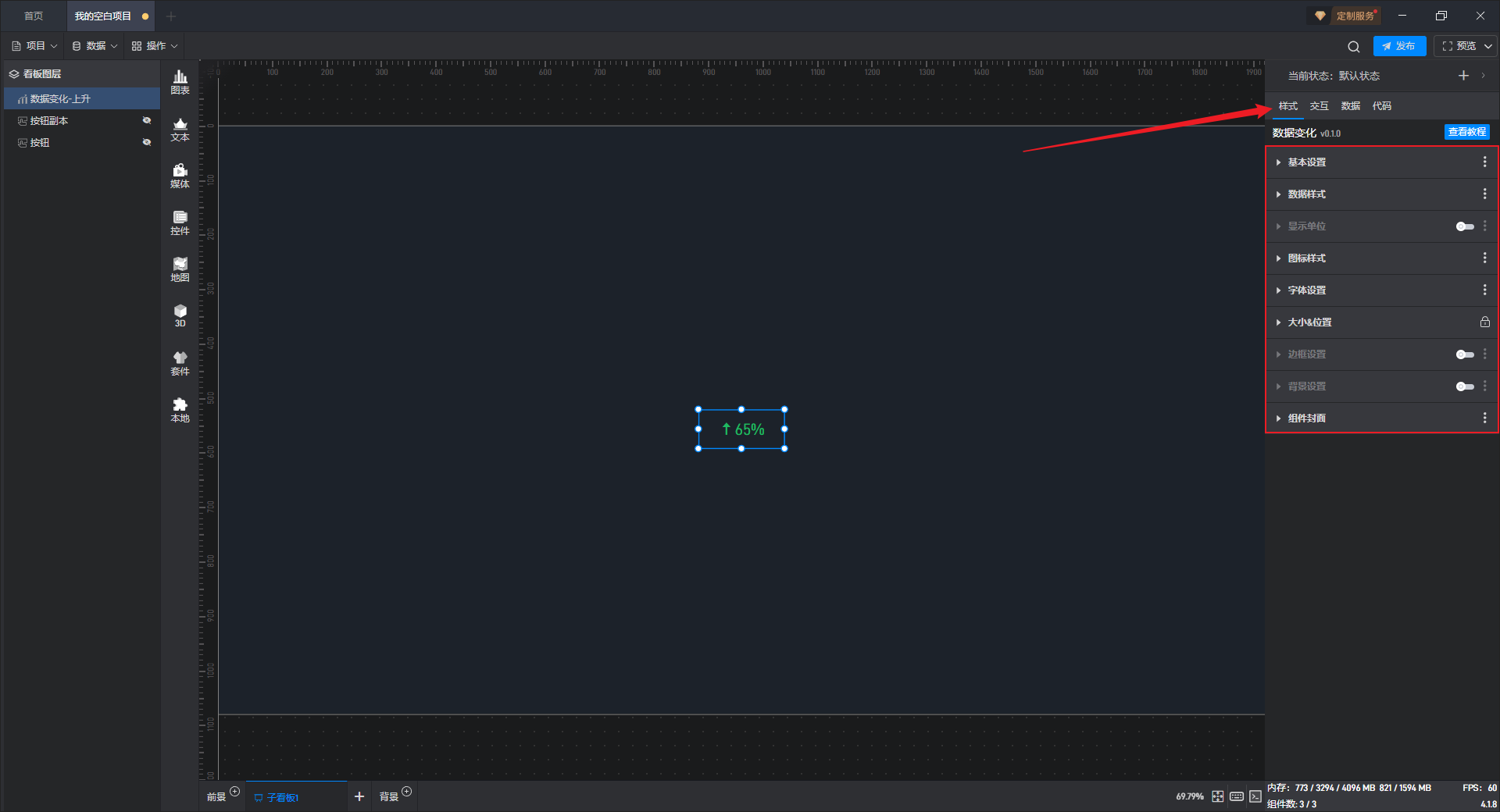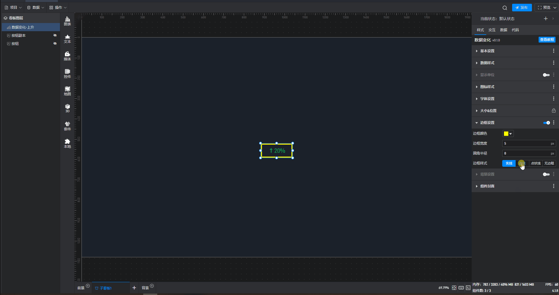 所谓固定样式,就是设置完之后一直保持的组件样式,这是和 3.2 章节中的条件样式相对应的,条件样式就是根据数据的变化改变组件的样式。