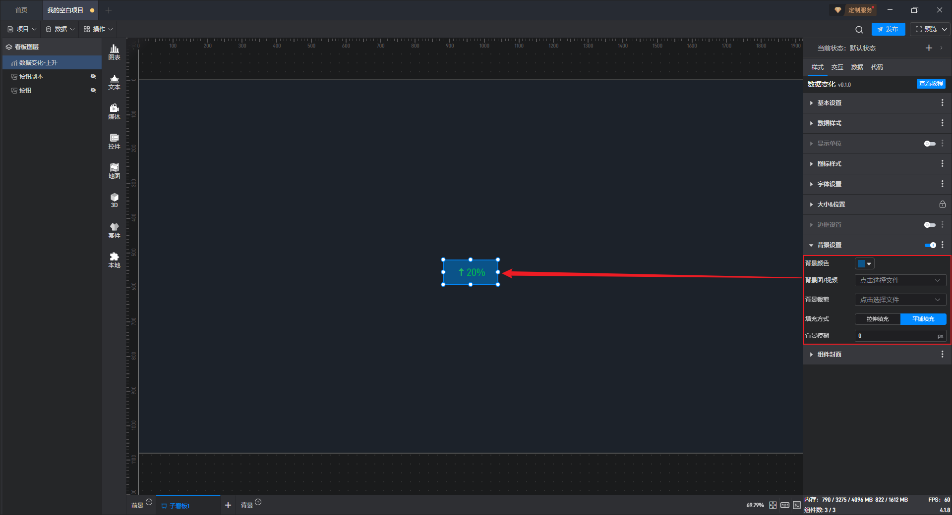 组件默认没有背景颜色,如果需要设置背景颜色,需要先开启“背景设置”项按钮。