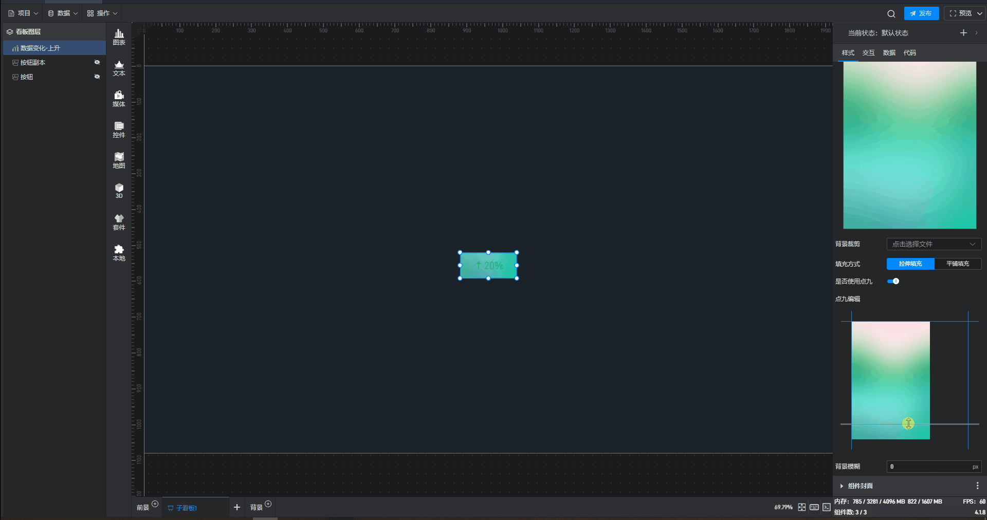 | 背景图/视频 | 可在此处添加本地图片或视频,充当组件背景。 |