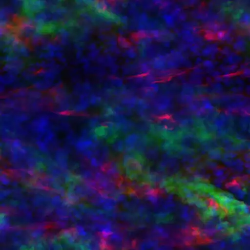 之前的体积云建模核心都是采用 3d 的 Perlin-Worley 噪声材质来建模的。卷云层在 ppt 中被称为 2.5d,建模无需 3d 材质,只需要 2d 噪声材质即可。作者还贴心的公布了 3 种卷云的噪声材质,我这里也很贴心的帮大家处理进了一张贴图的三个通道: