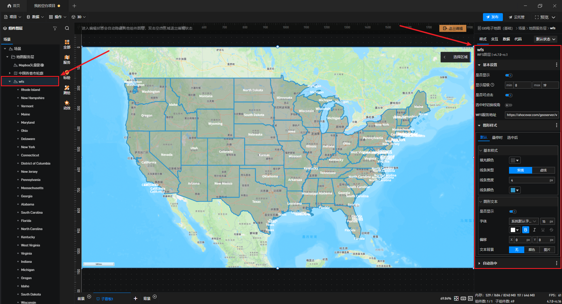添加后,可在右侧对要素的样式以及显示方式进行设置。