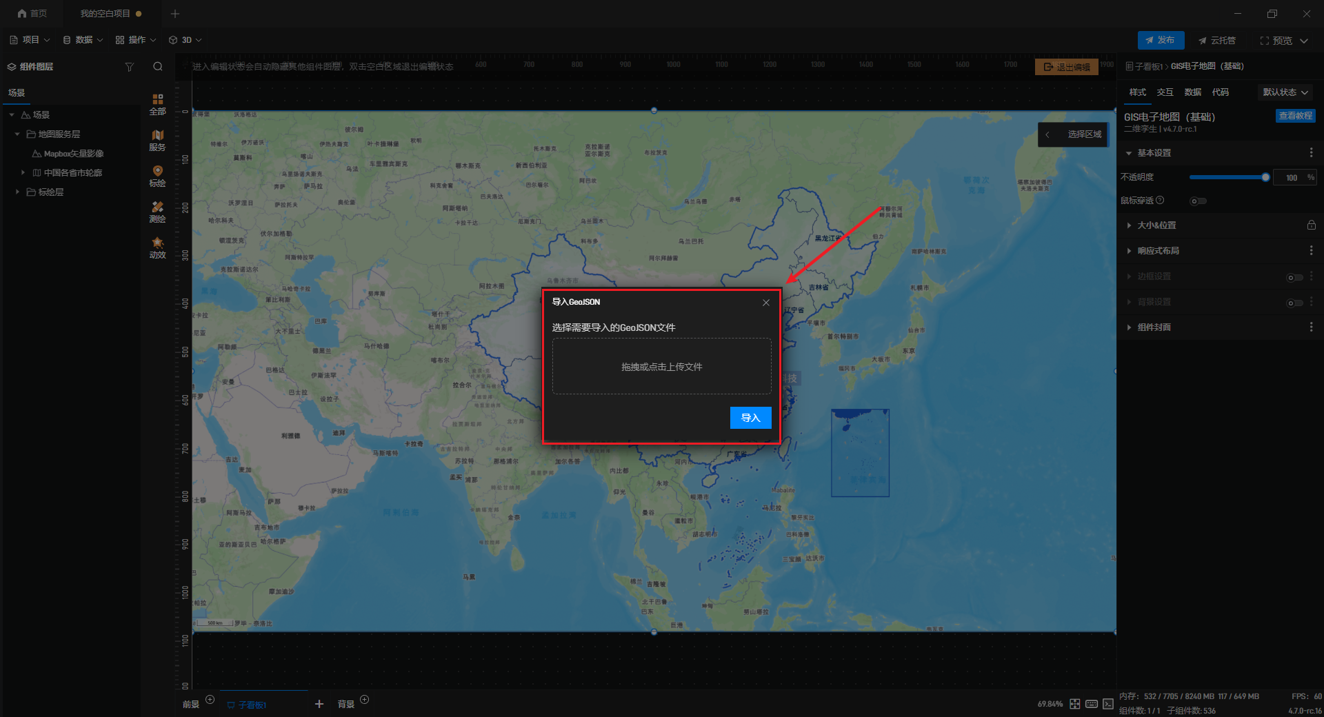 行政区划需要导入对应的GeoJSON文件来添加。
