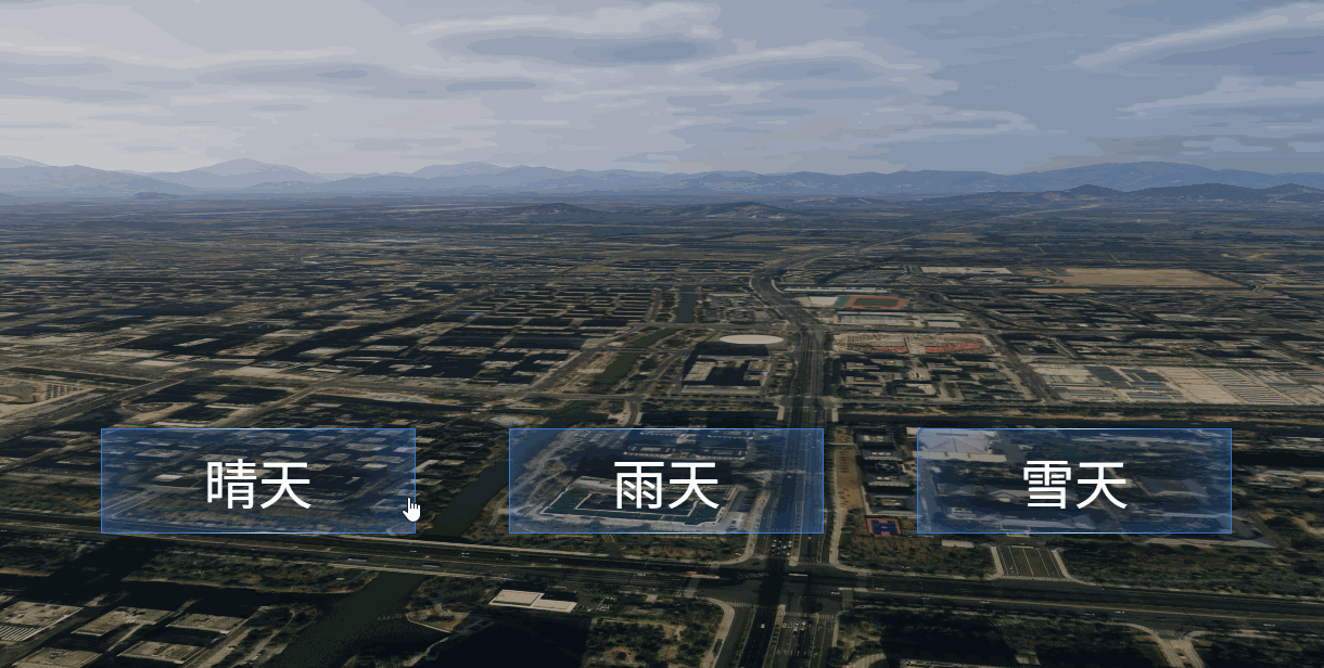 这样,我们就可以通过按钮来控制场景中的天气了,最终效果如下图所示: