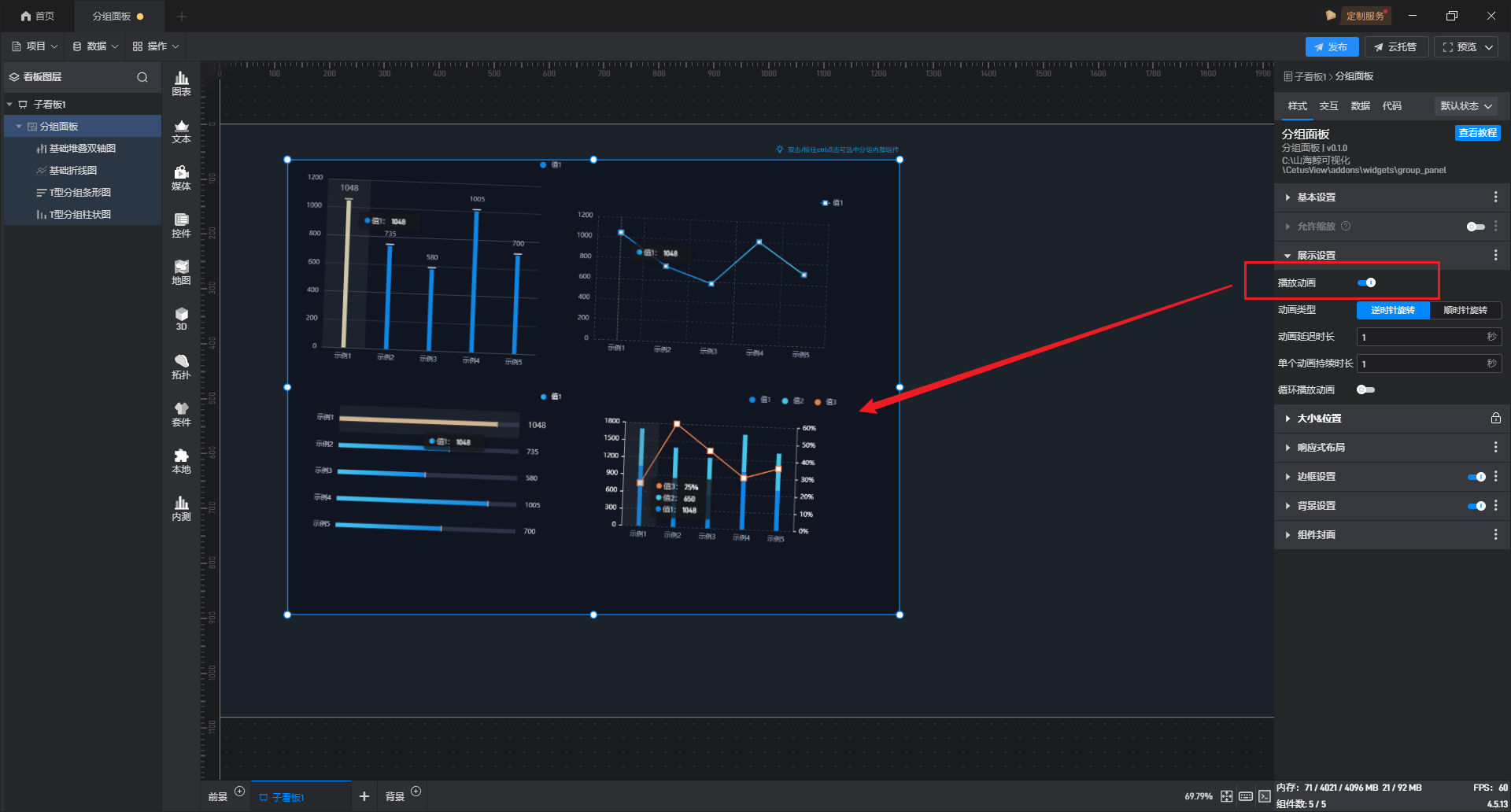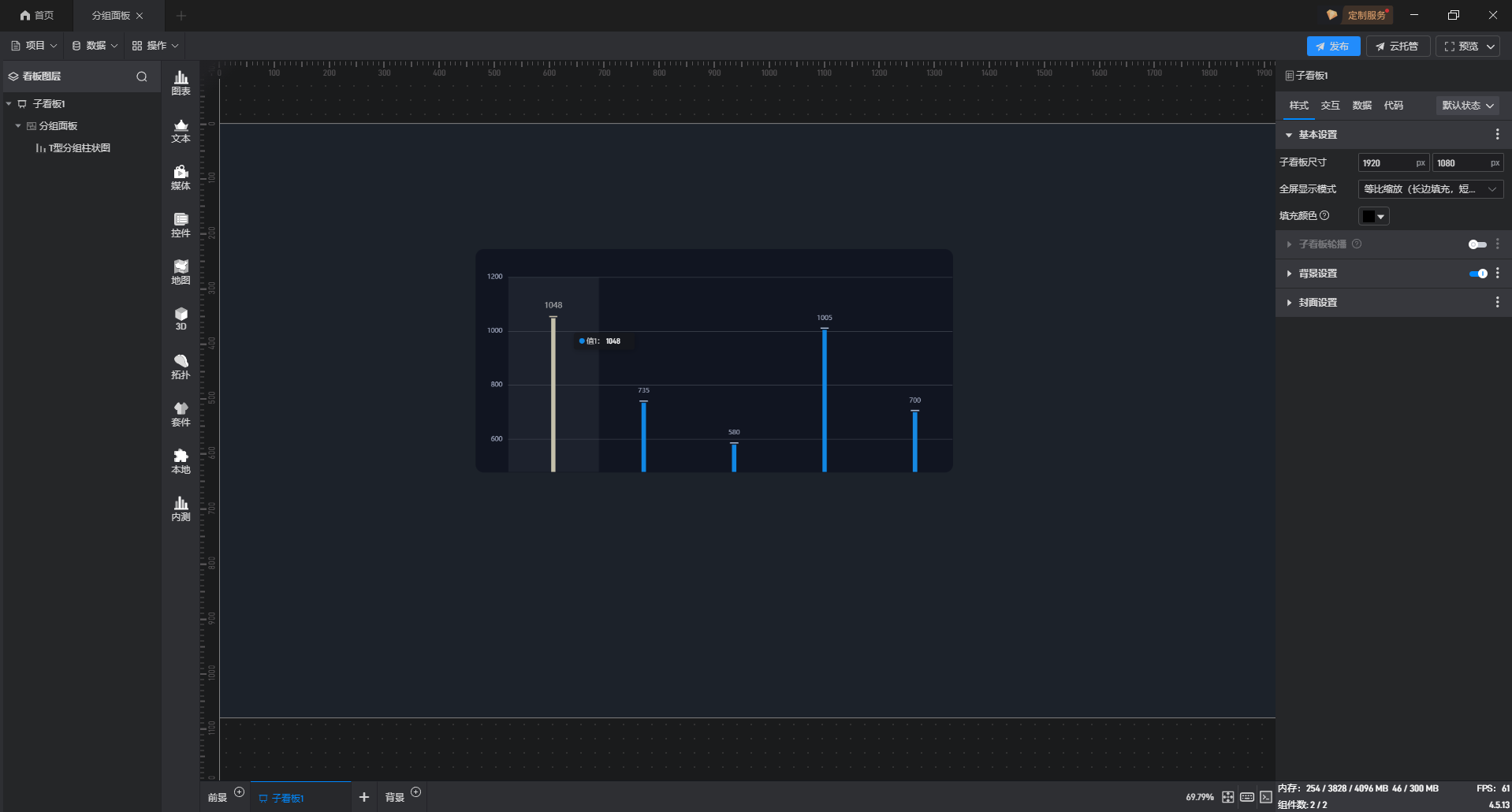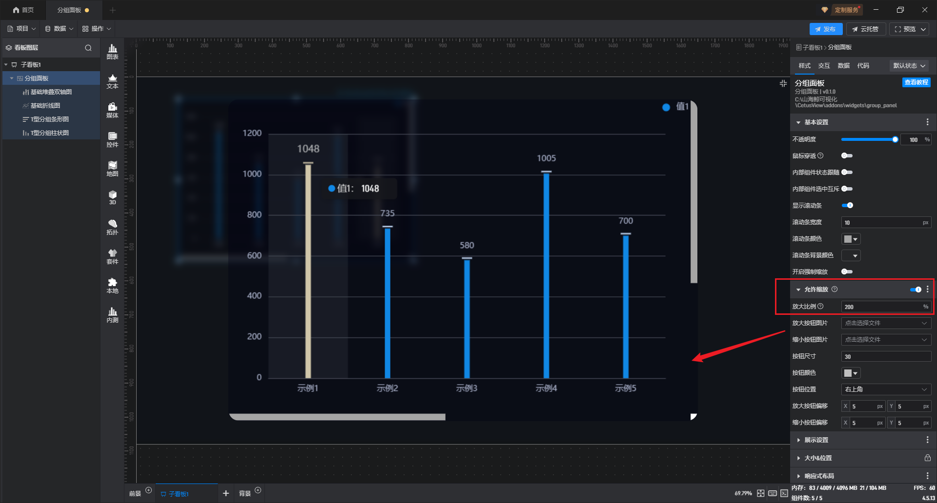 放大比例:自定义缩放后面板占整个看板大小比例,默认大小为“100%”。