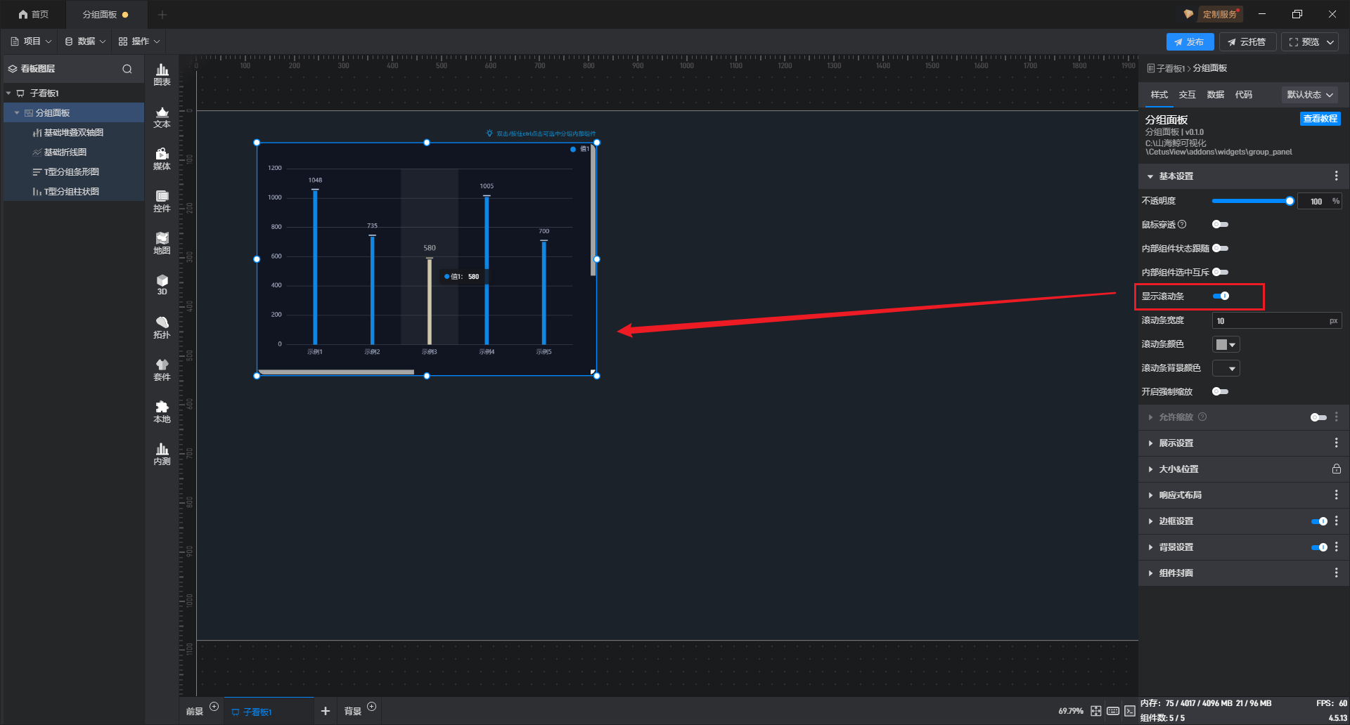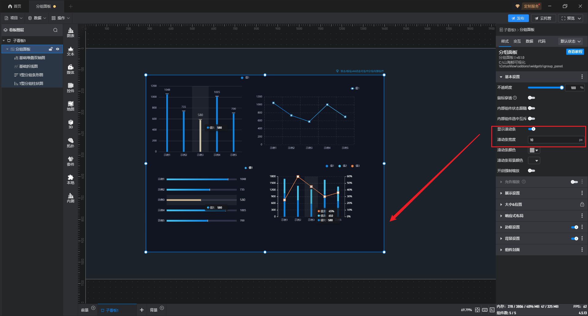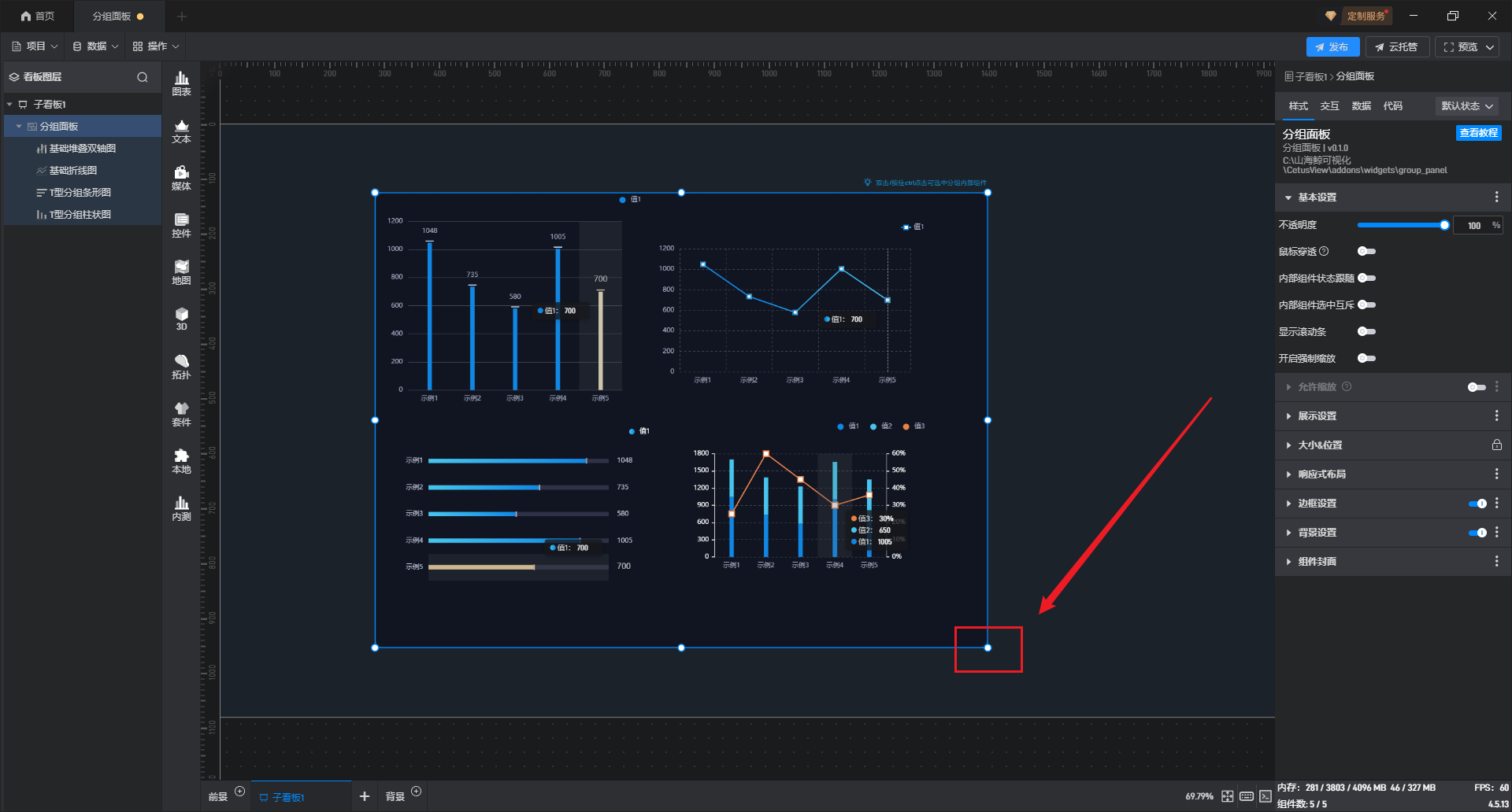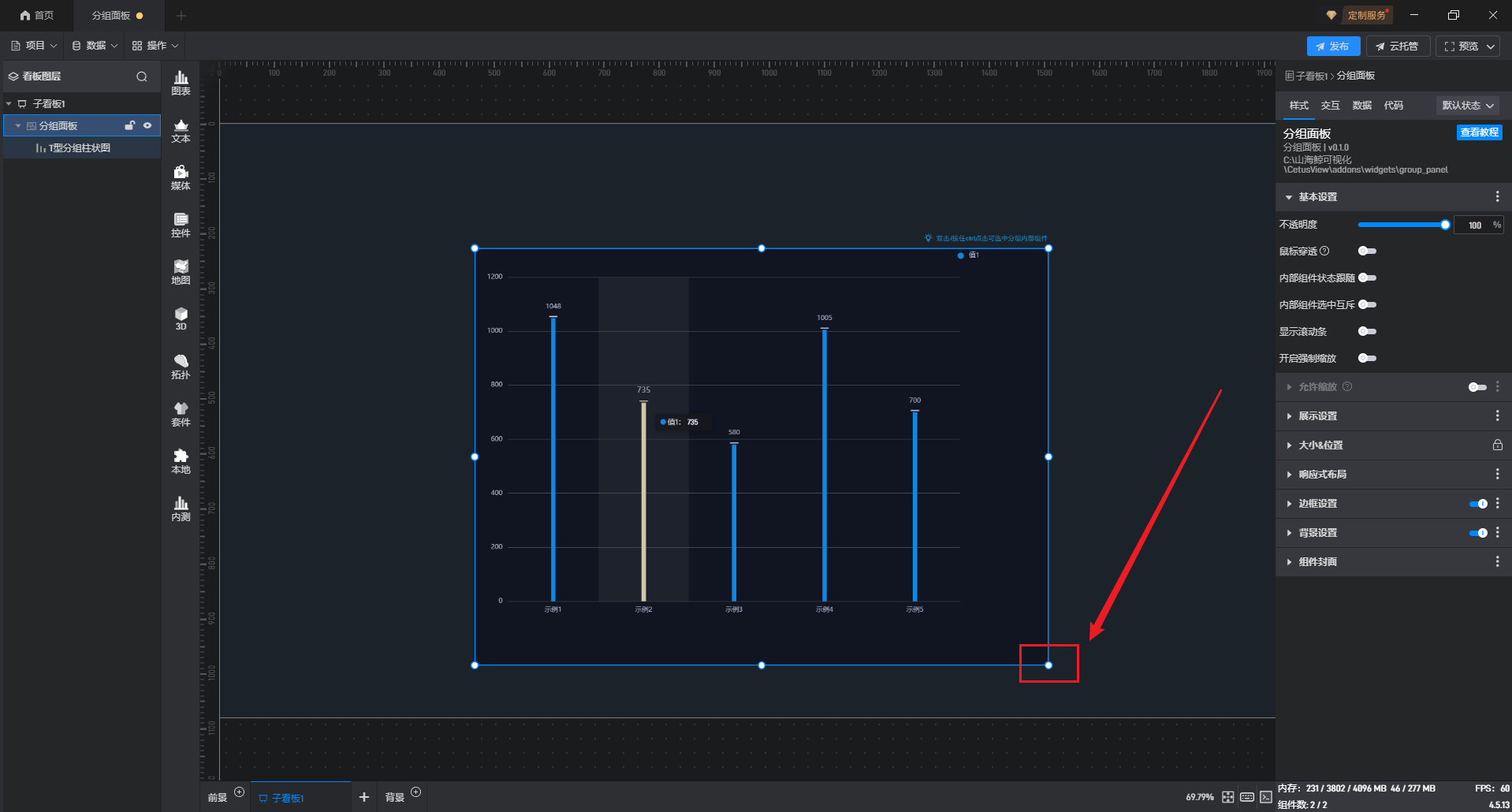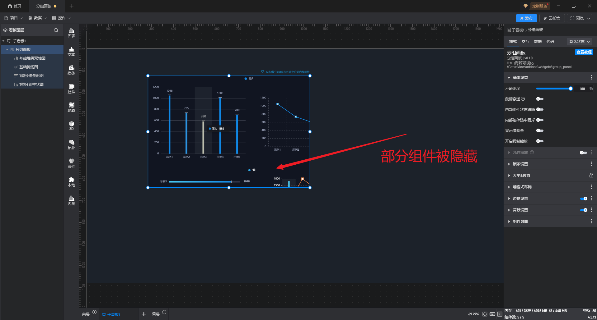 原因:调整分组面板大小时,内部组件会隐藏,同时一个一个调整又很费时费力。