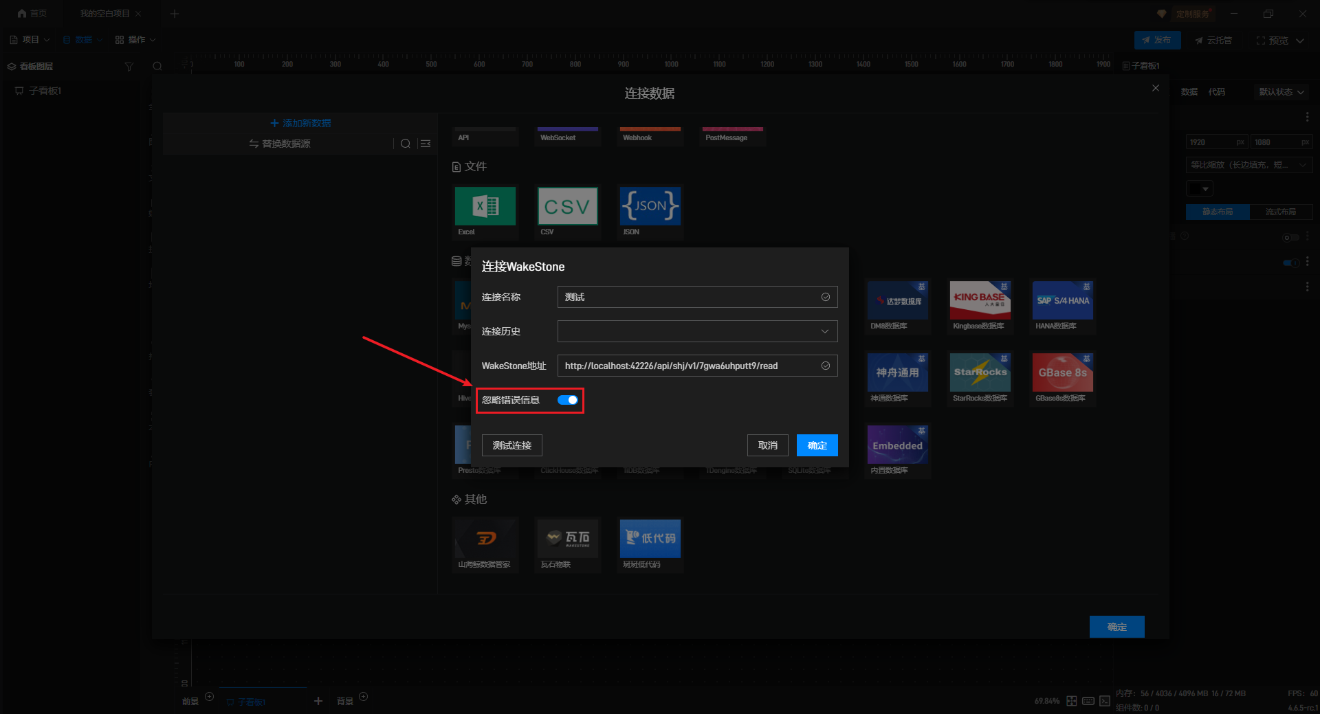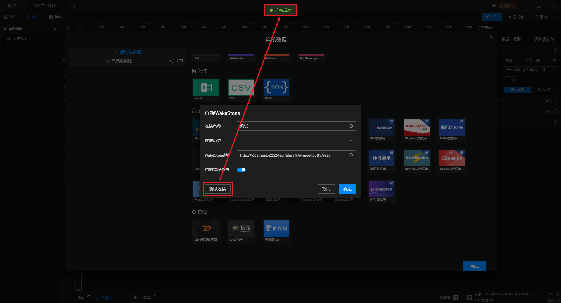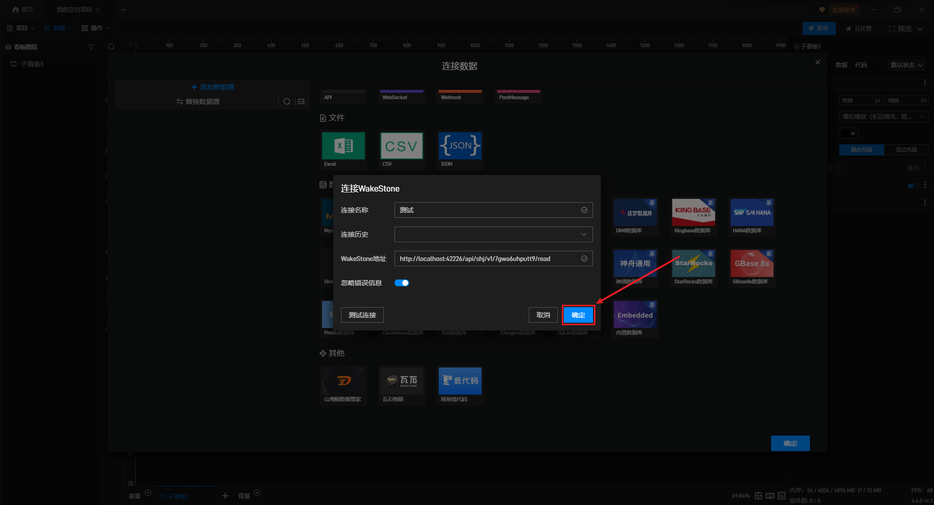 设置完成后,点击“确定”按钮即可完成瓦石物联数据的连接。