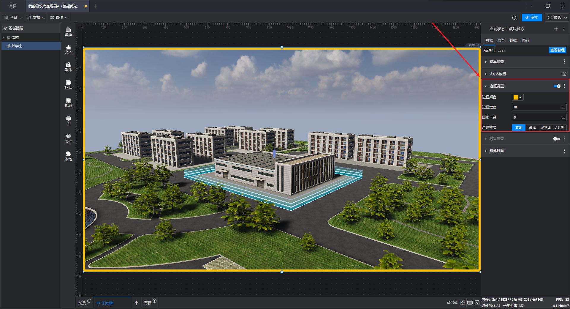 在此处可以对组件边框的边框颜色、宽度、图形边框圆角半径等样式进行配置。