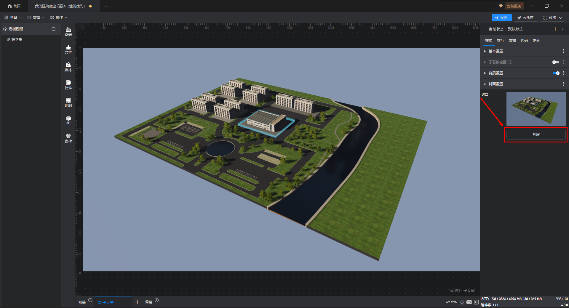 点击“截屏”按钮,可以截取当前项目的图片作为封面。