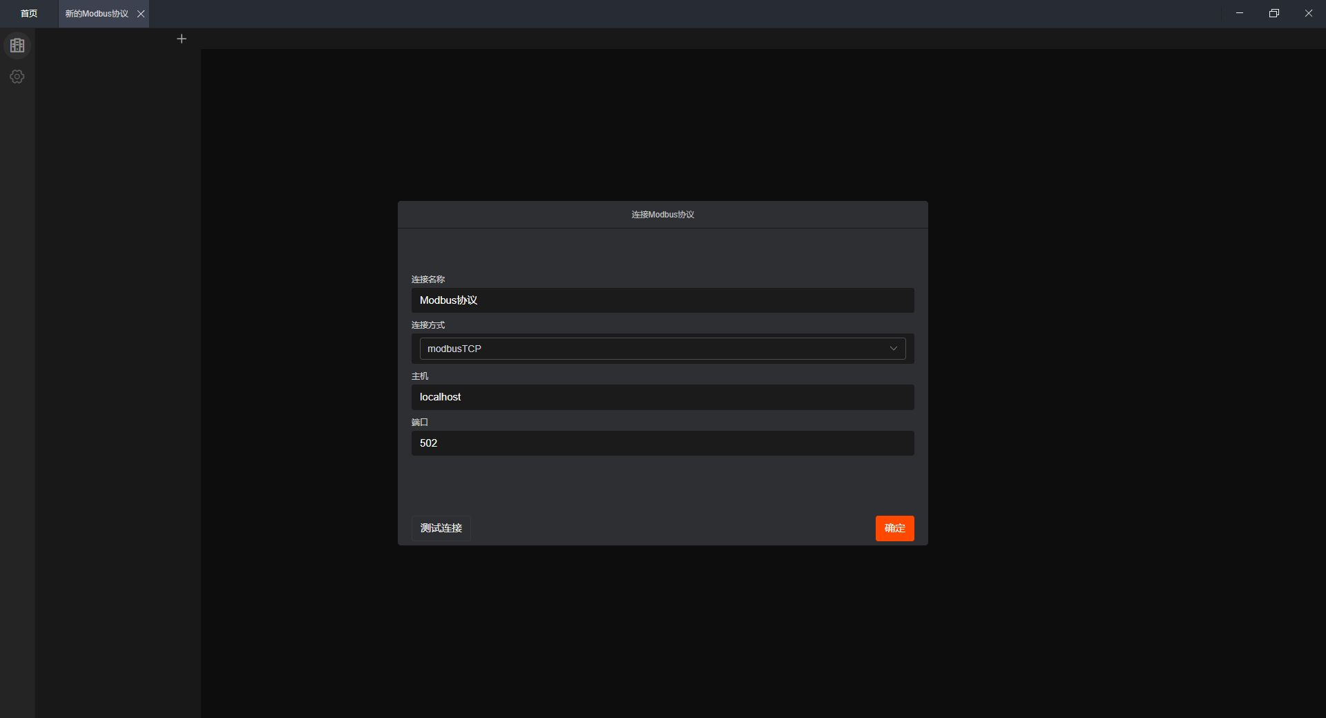 连接方式有两种:Modbus TCP和Modbus RTU。Modbus TCP 是一个在以太网上的协议,Modbus RTU 是一个在串口上的协议。这里通过 Modbus Slave 软件模拟出来是 Modbus TCP 的连接方式,所以,我们选择“Modbus TCP”,端口是502,点击“确定”。