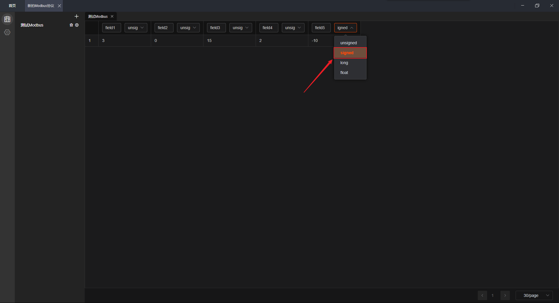 把第五个数据改成 signed,这样就得到了正确的数据。因为我们目前选了 5 个寄存器,所以会默认创建 5 个字段,直接忽略最后 1 个字段就好。