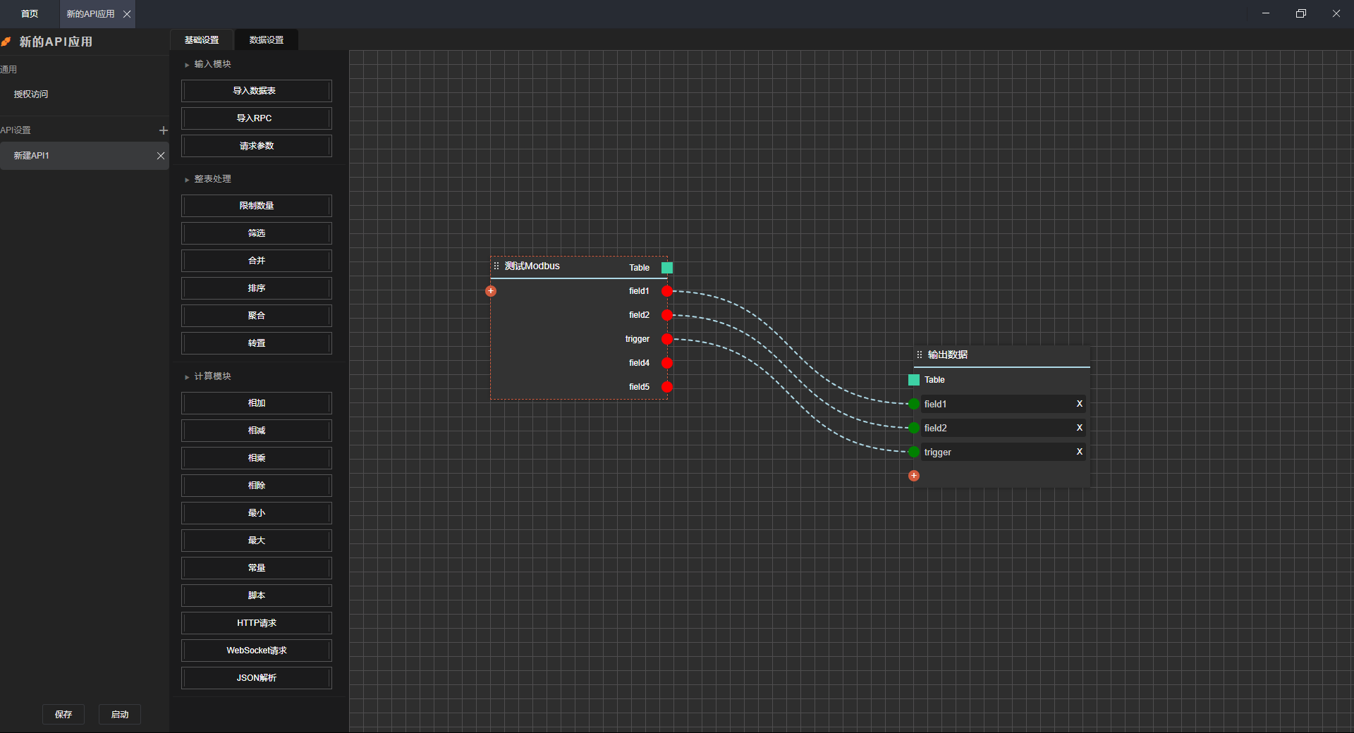 点击“保存”,然后点击“启动”,即可启动 API 应用。