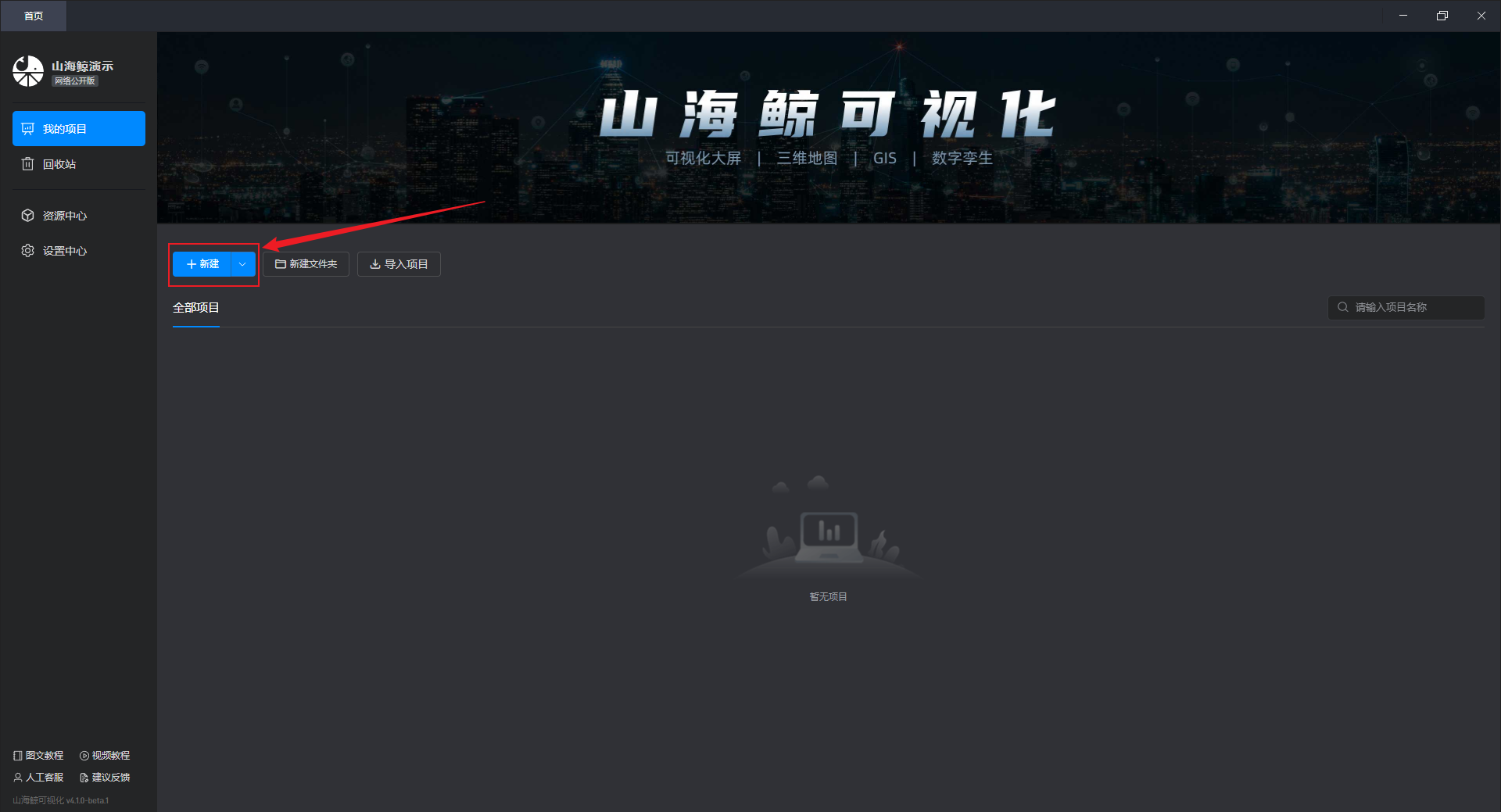 在山海鲸可视化大屏软件中经常需要连接各种各样的数据,软件中内置了多种数据源连接方式,在“新建项目”后便可看到。
