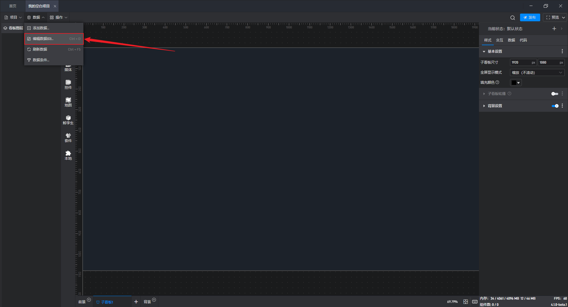 打开山海鲸可视化软件,在可视化项目中添加数据源,点击“编辑数据”。