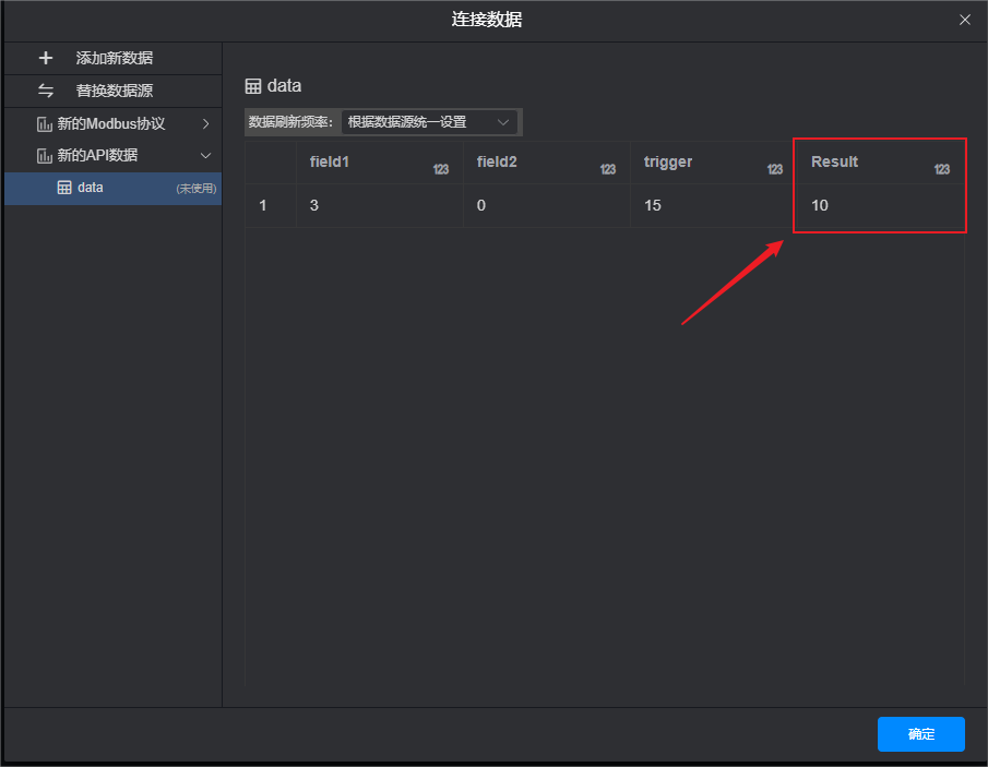 至此我们就通过 API 接口添加的数据源就已经完成,该数据就是刚刚的一个计算的结果。