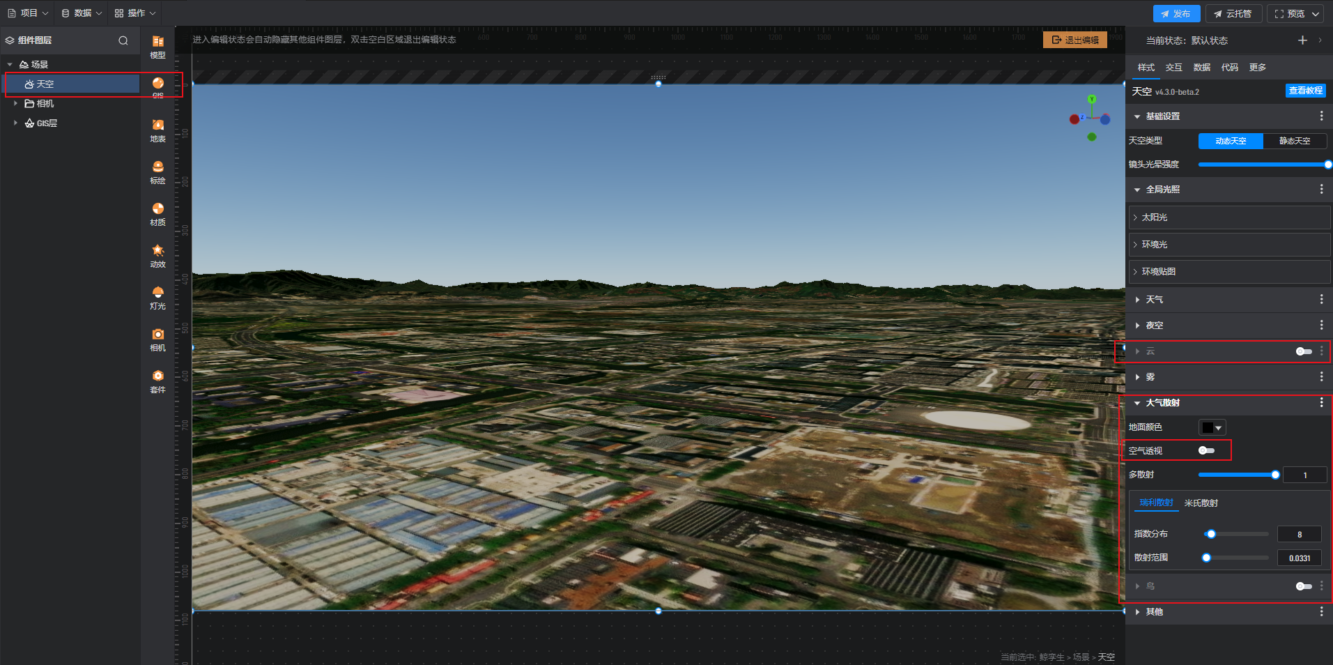 在天空设置栏关闭云层和大气散射(开启状态下会影响画面通透,操作完可以再开启)。