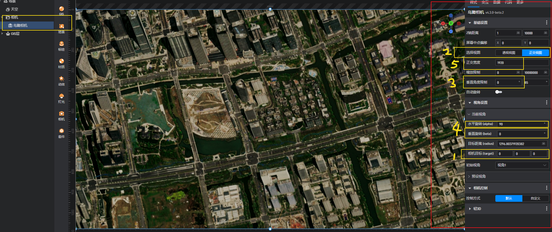 3)默认正交宽度对应 1920m*1080m(修改大小尽量同比例)建模软件 1920 对应 Y 1080 对应 X