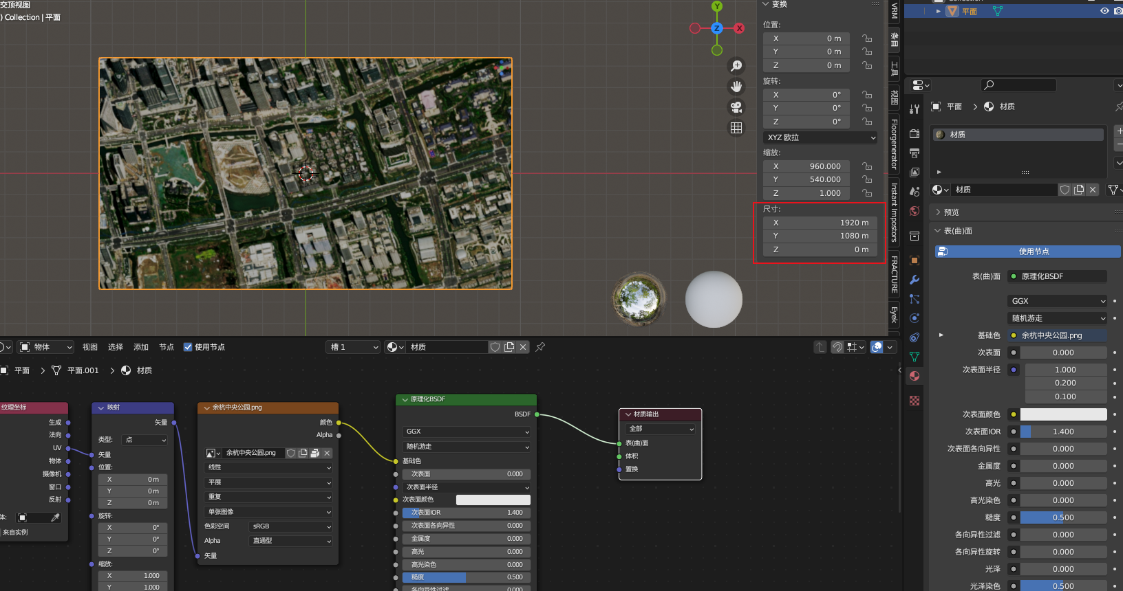 打开 blender 建模软件>新建平面将尺寸调整,对应的正交宽度 1920x1080,再将保存的截图以贴图的形式给予平面,然后开始建模,并导出。