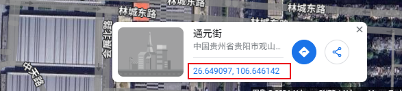例如 贵州省贵阳市 通元街 我们取 26.649 106.646