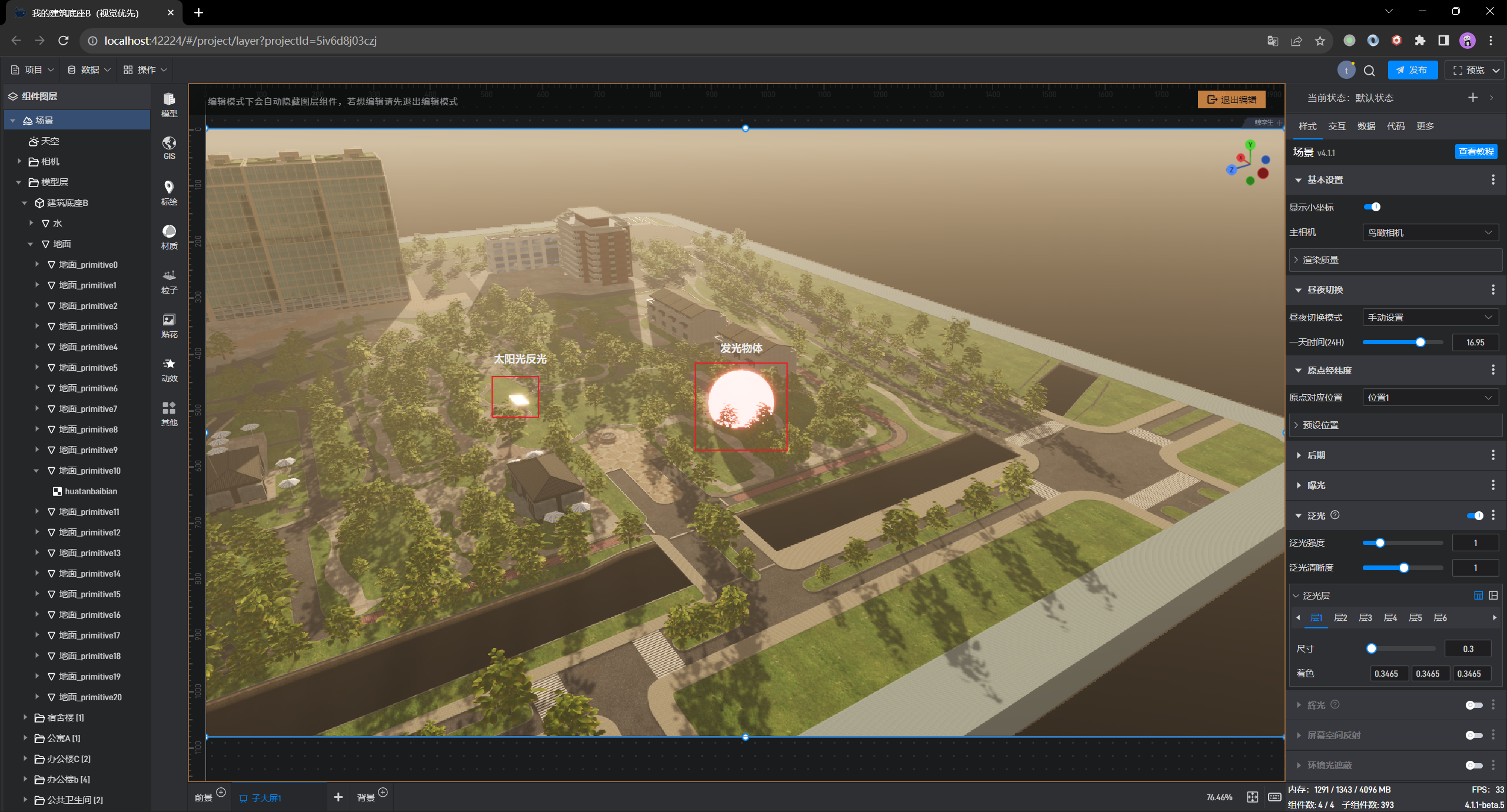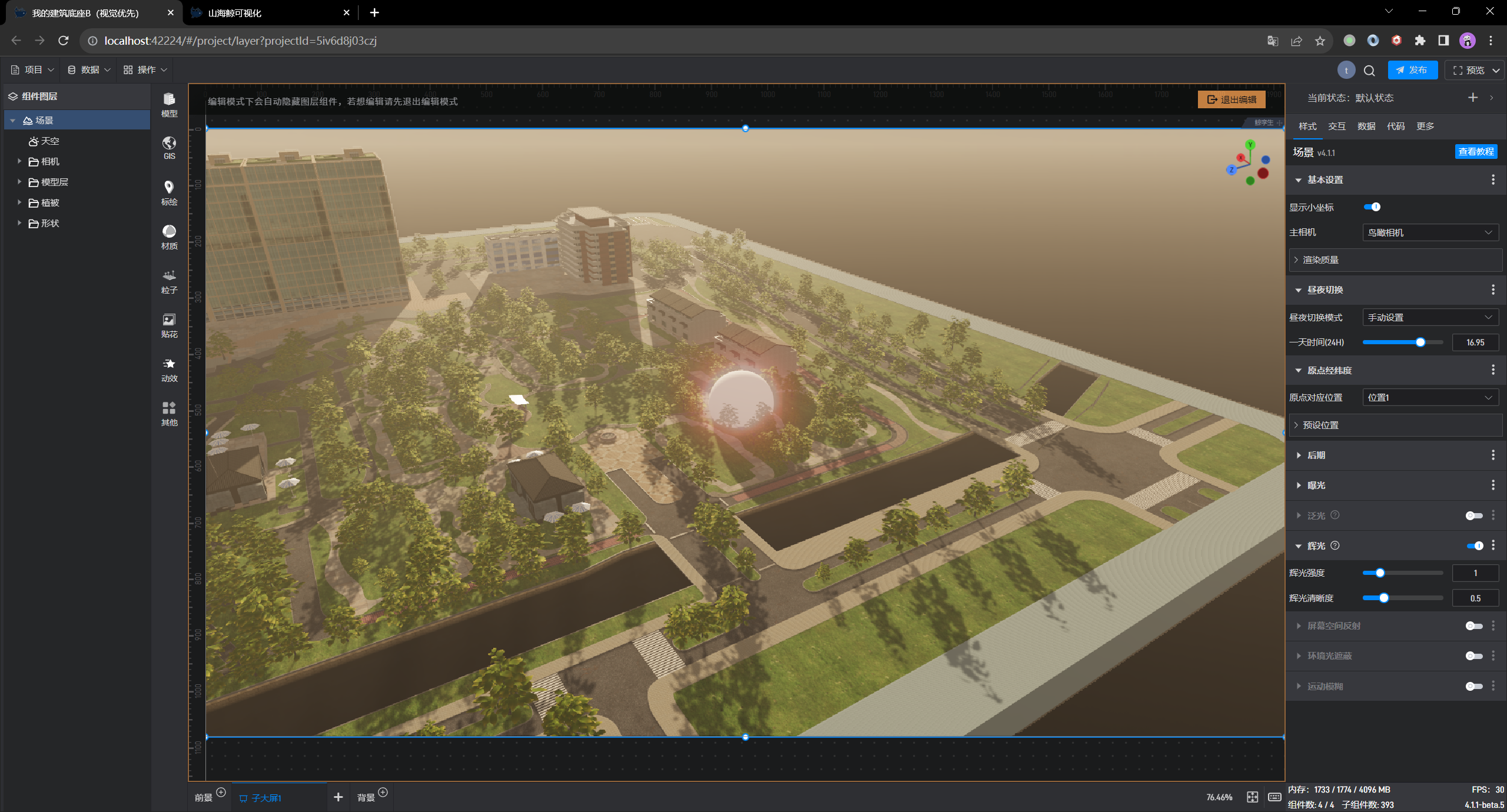 值得注意的是,昼夜切换还会影响模型和材质当中的仅在夜晚发光等选项。