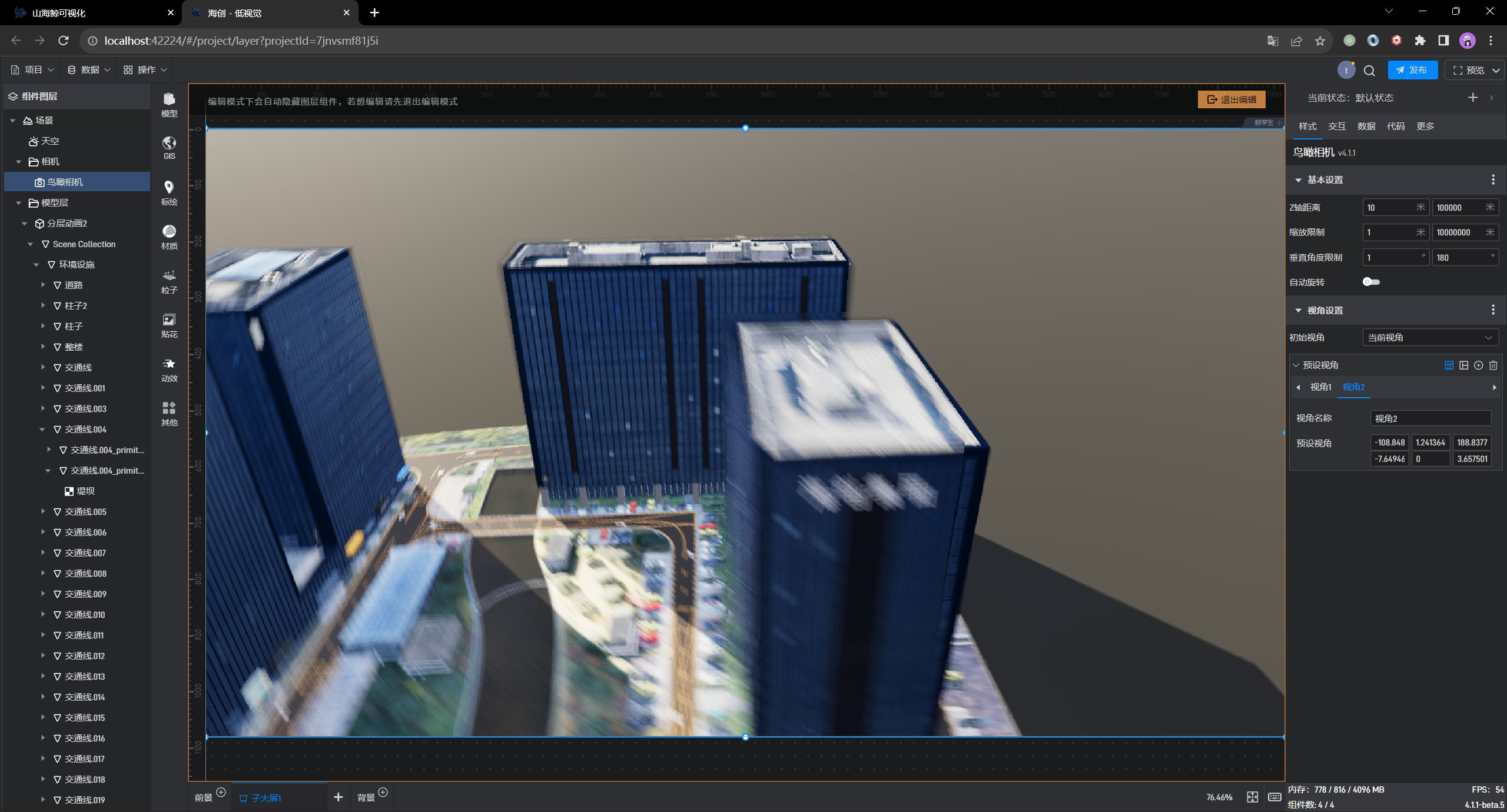 | 位置精度 | 大场景中,需要查看偏离中心点很远的位置(大于 1000 米)的时候,需要修改精度为高 |