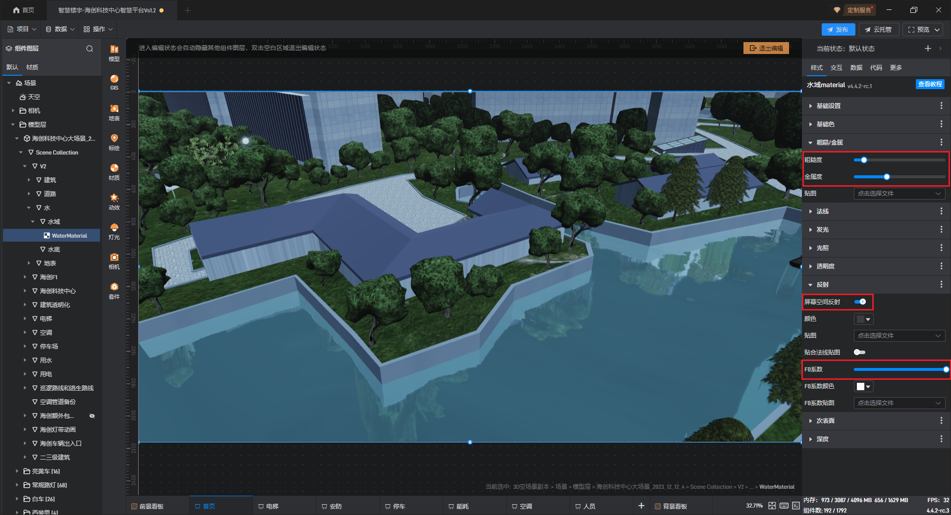 同时如果材质的“粗糙度”或“金属度”为0时,那么也不会出现屏幕空间反射的效果。以下几个材质选项均会影响屏幕空间反射的效果: