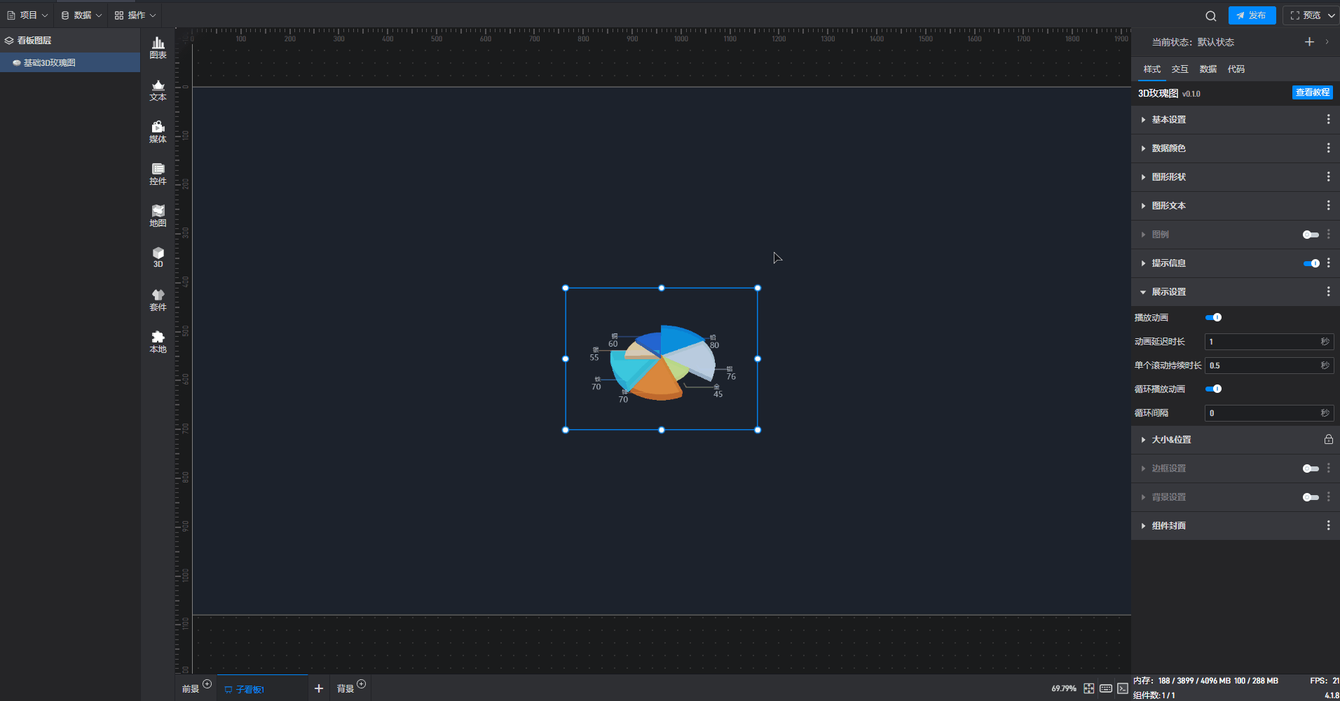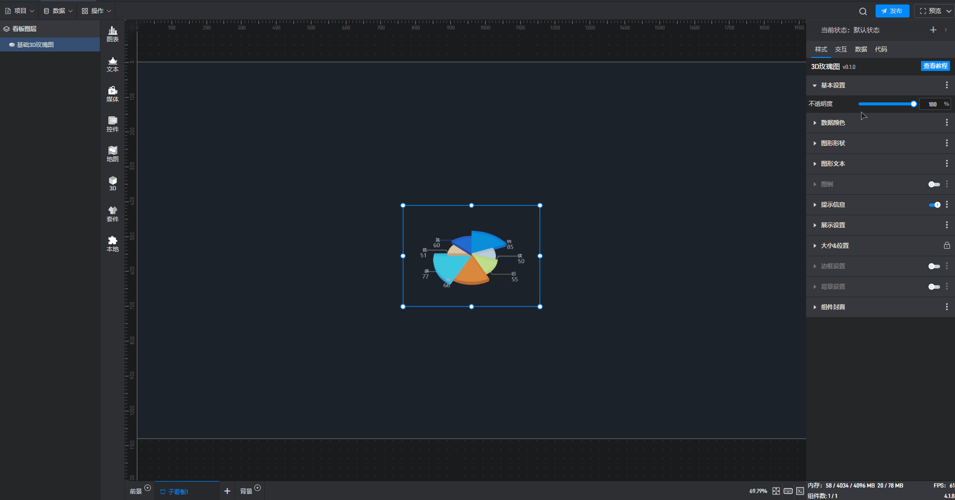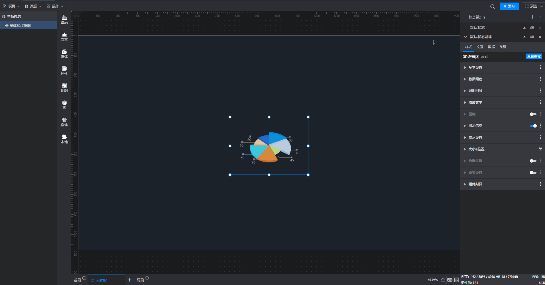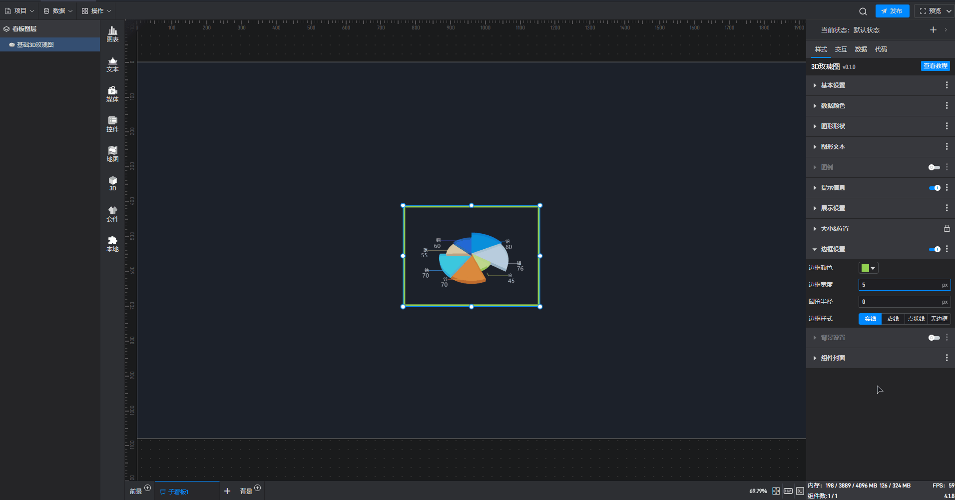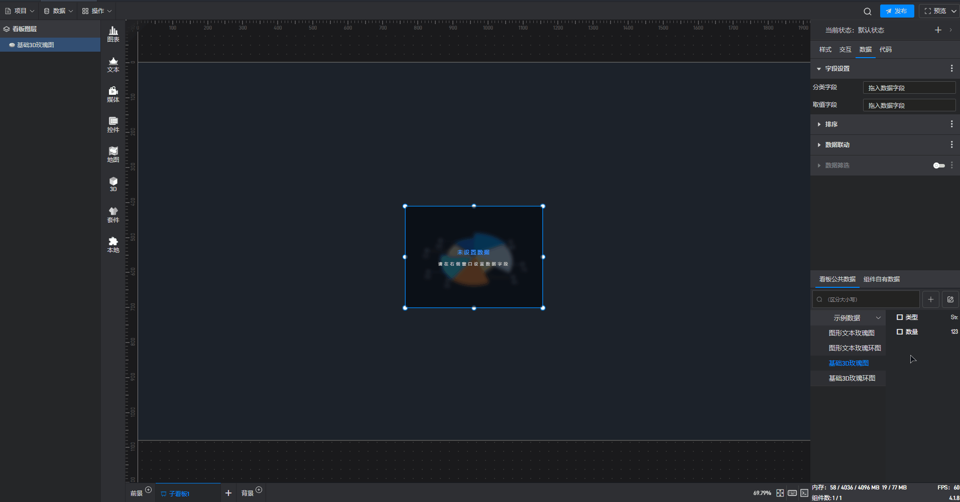 基础 3D 玫瑰图是3D 图表组件的一种预设样式。在组件的使用过程中,我们可以按照以下步骤进行设置: