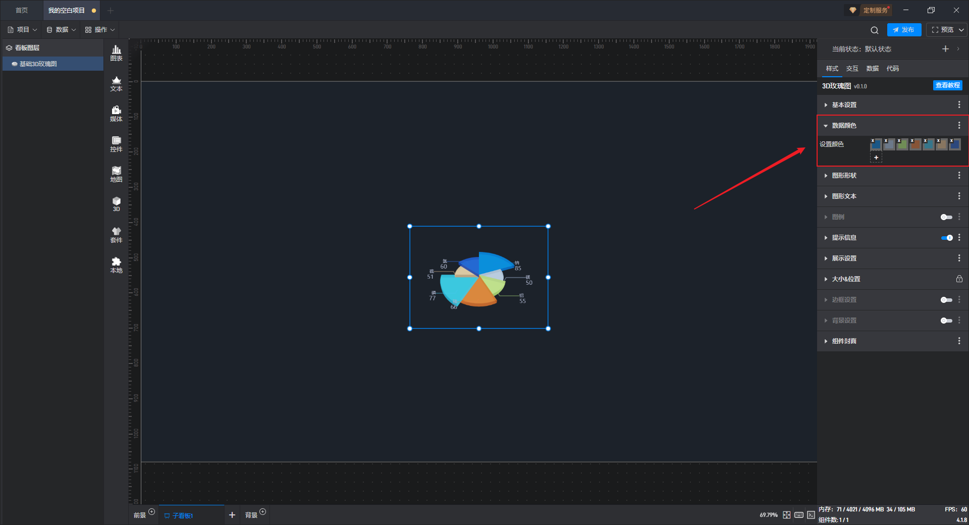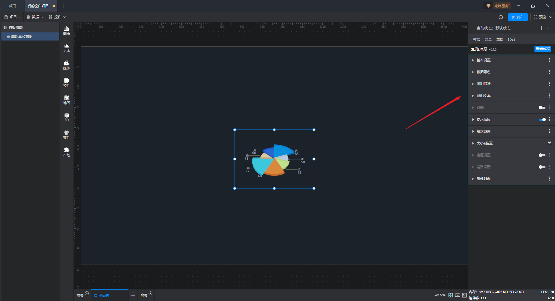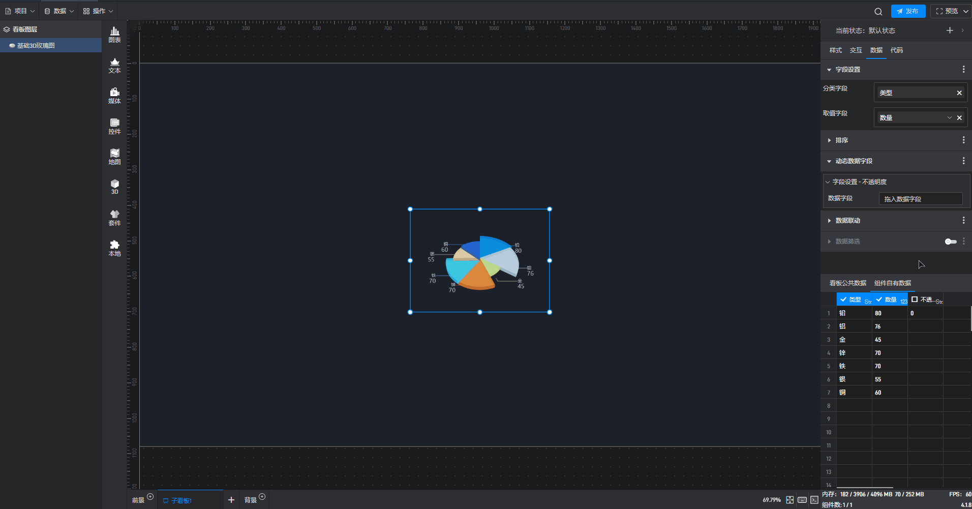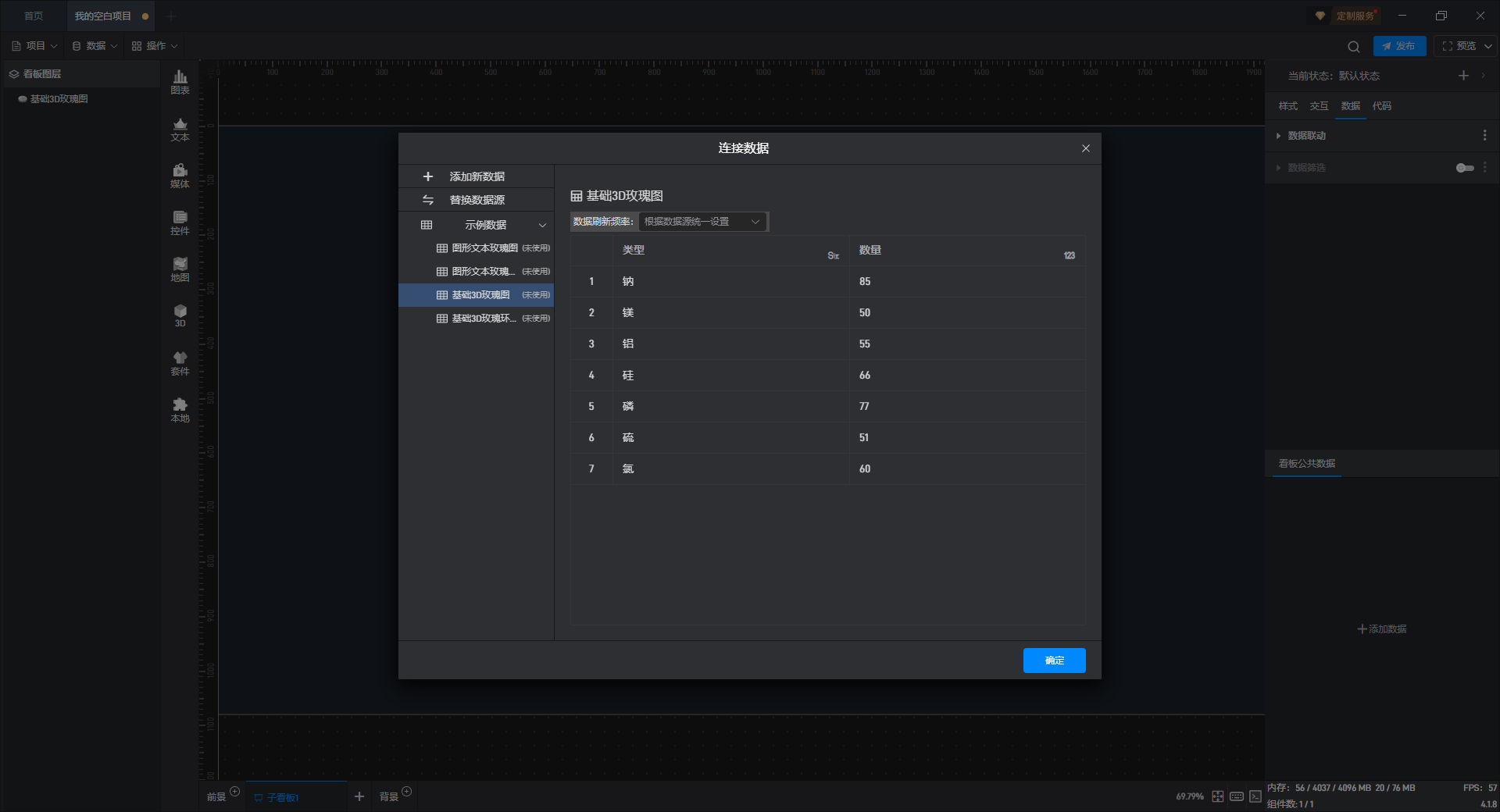 基础 3D 玫瑰图是3D 图表组件的一种预设样式。在组件的使用过程中,我们可以按照以下步骤进行设置: