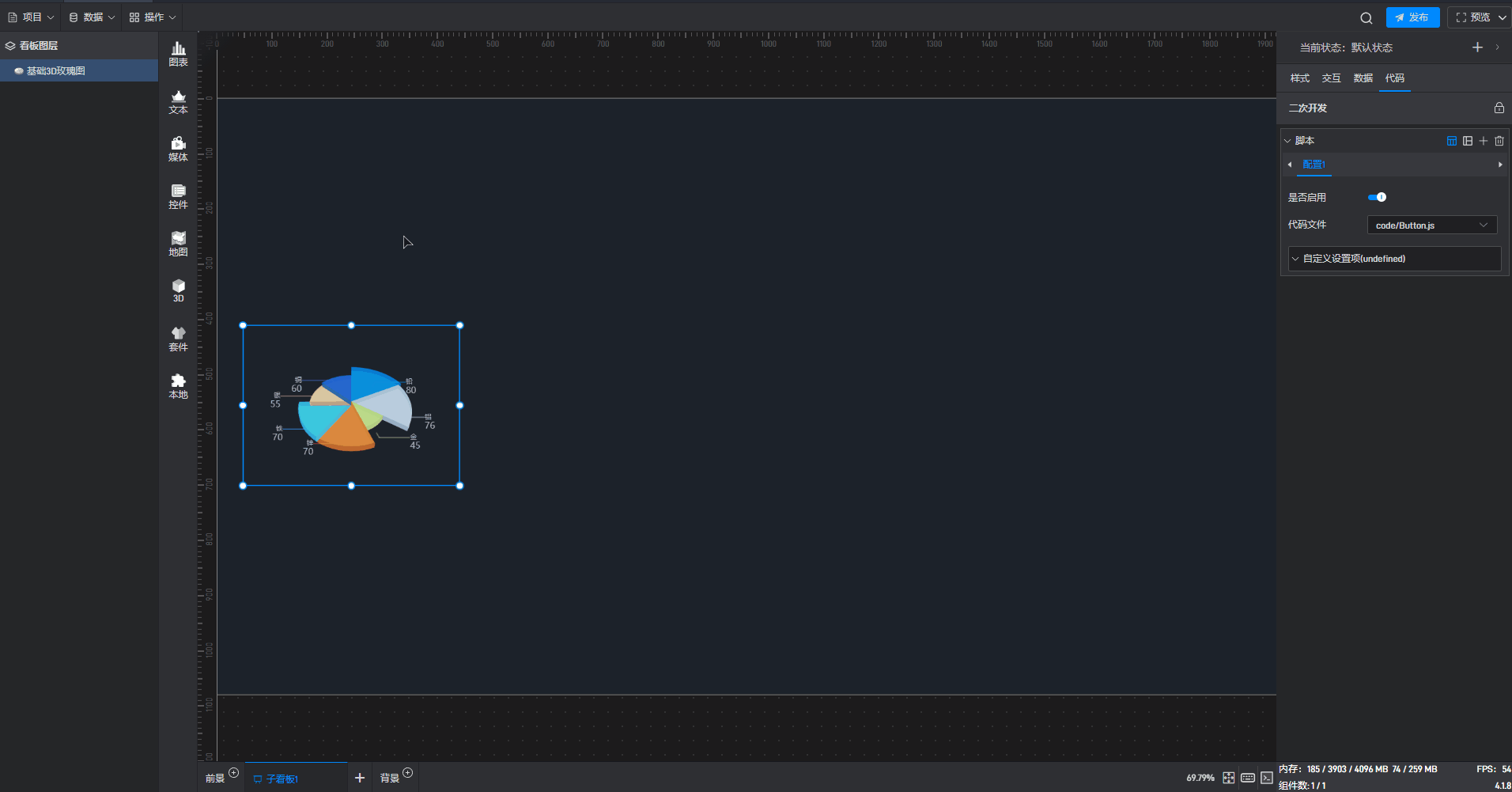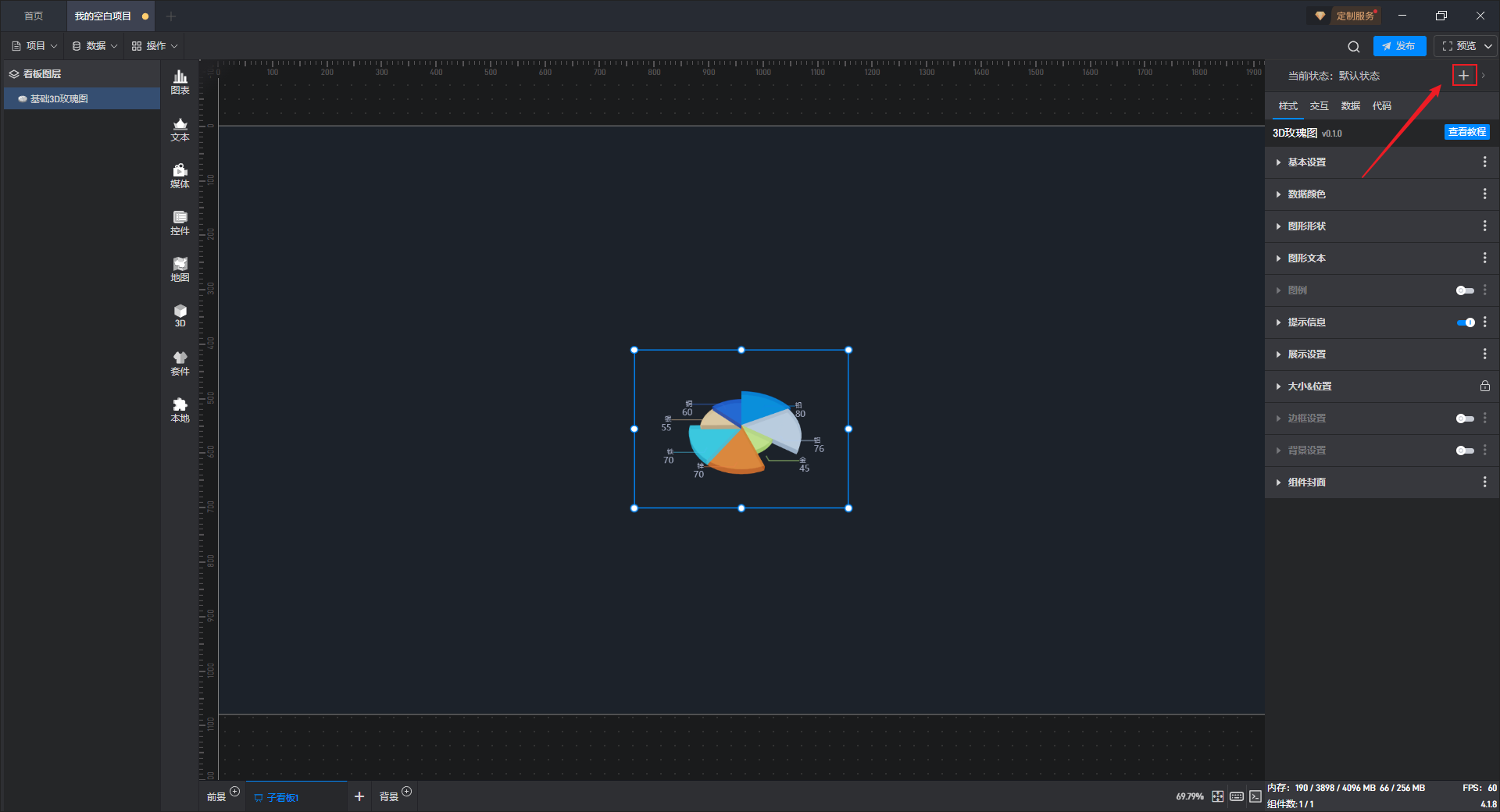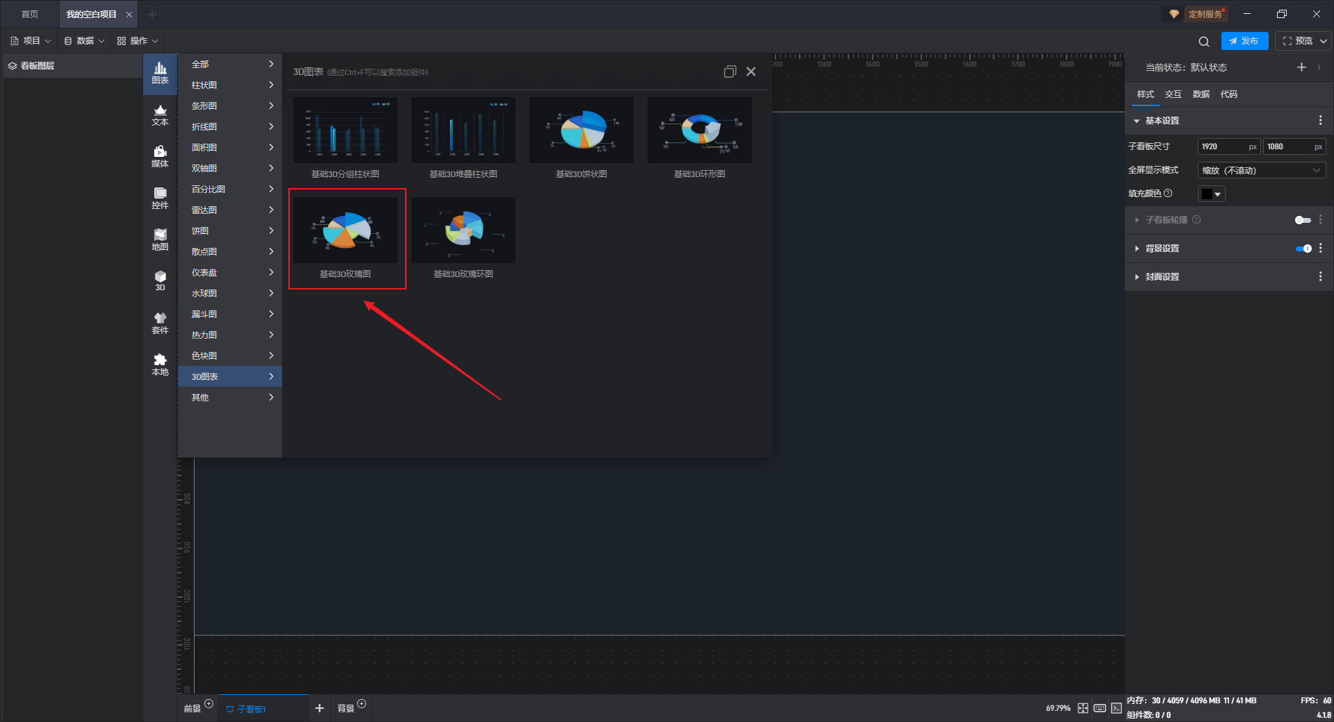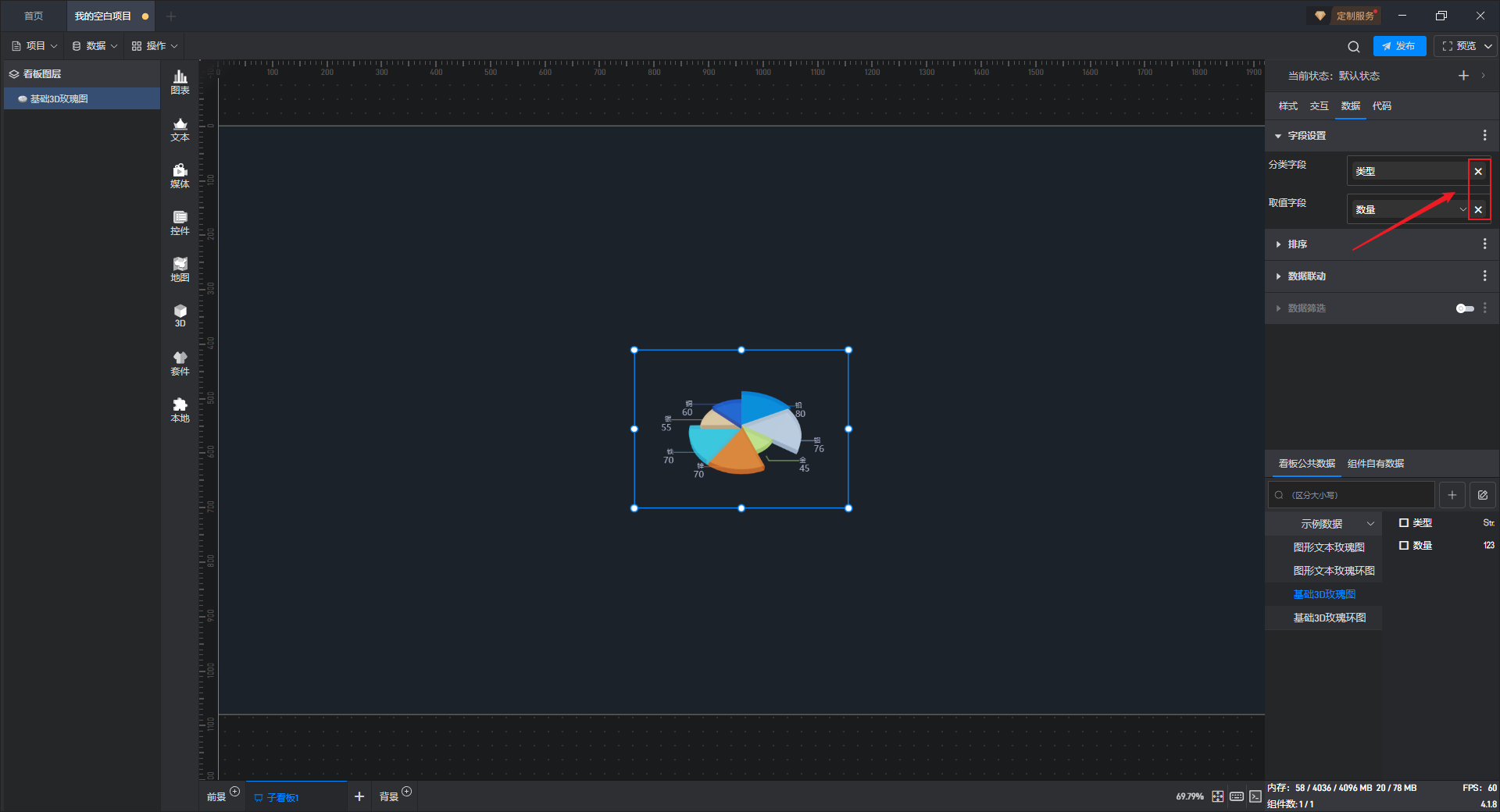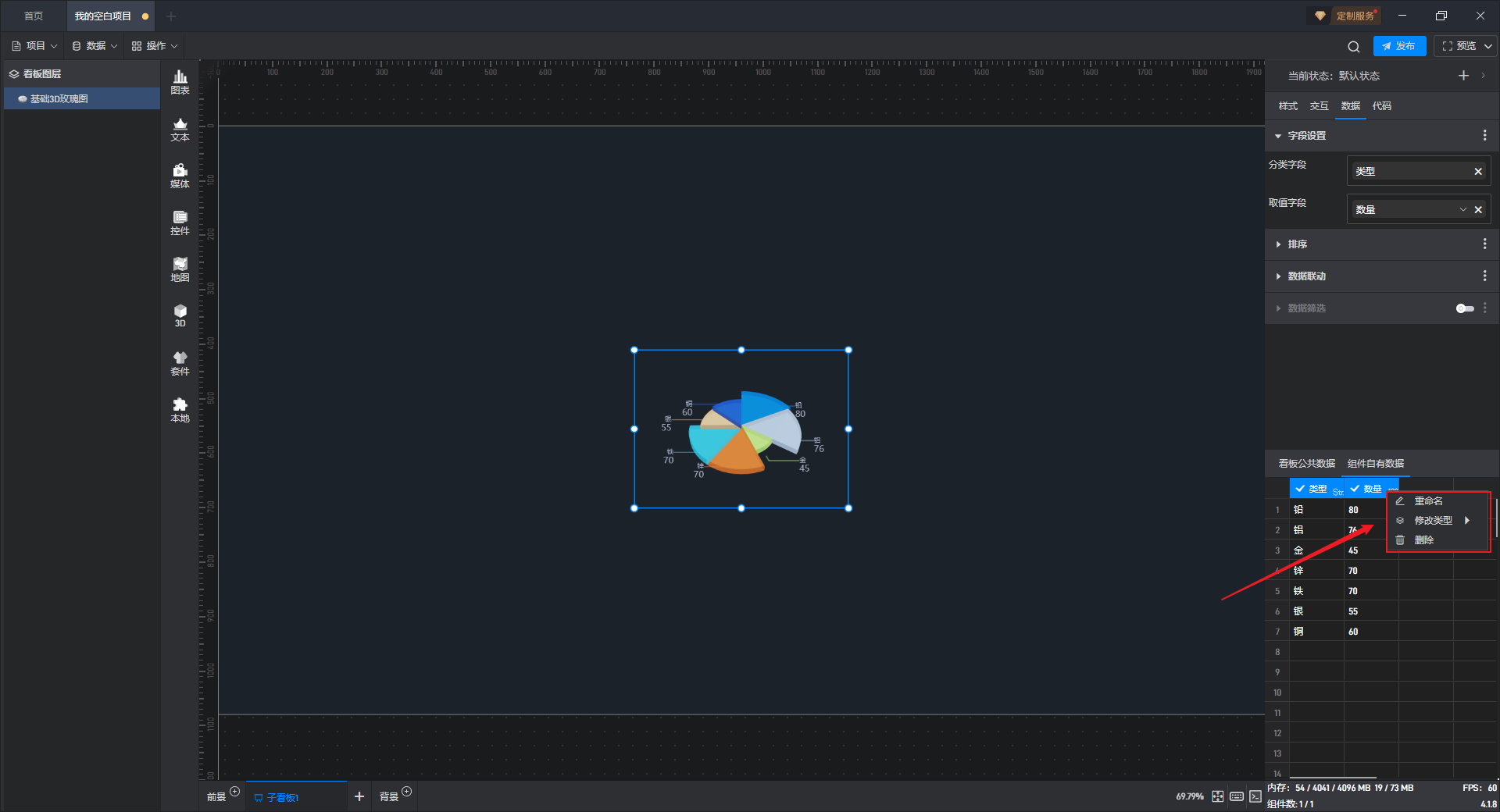 基础 3D 玫瑰图是3D 图表组件的一种预设样式。在组件的使用过程中,我们可以按照以下步骤进行设置: