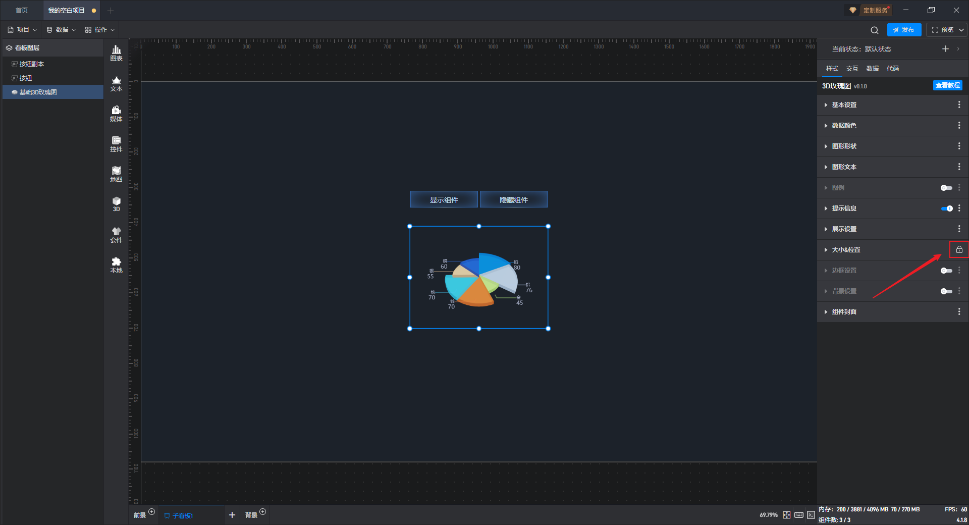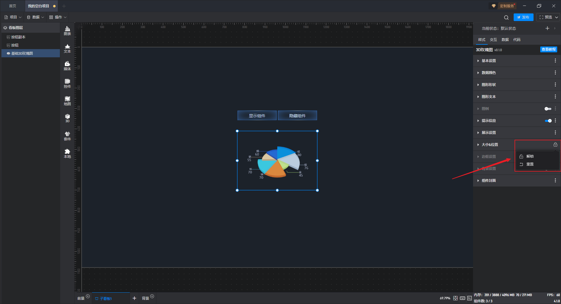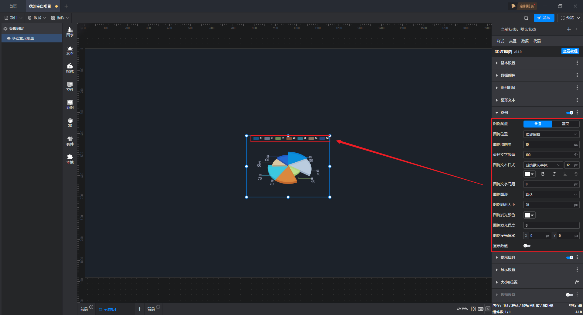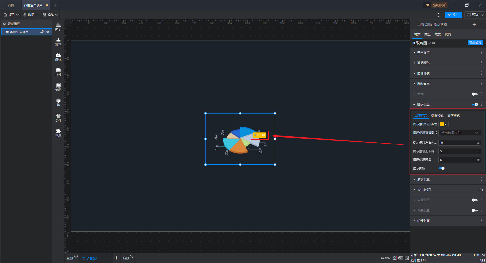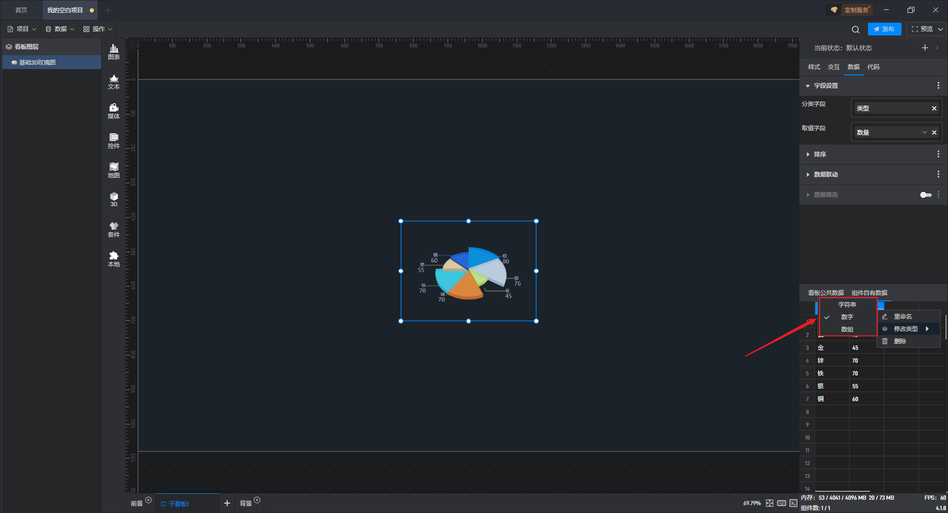 基础 3D 玫瑰图是3D 图表组件的一种预设样式。在组件的使用过程中,我们可以按照以下步骤进行设置: