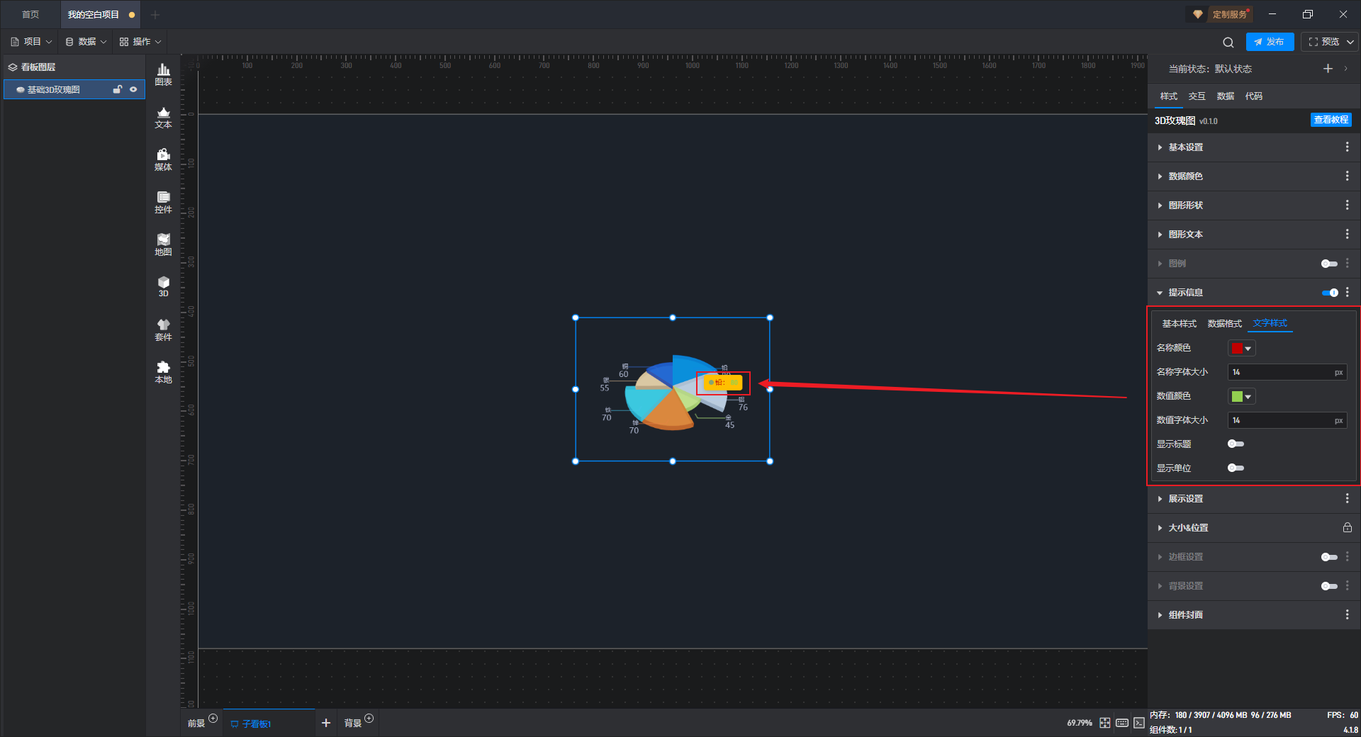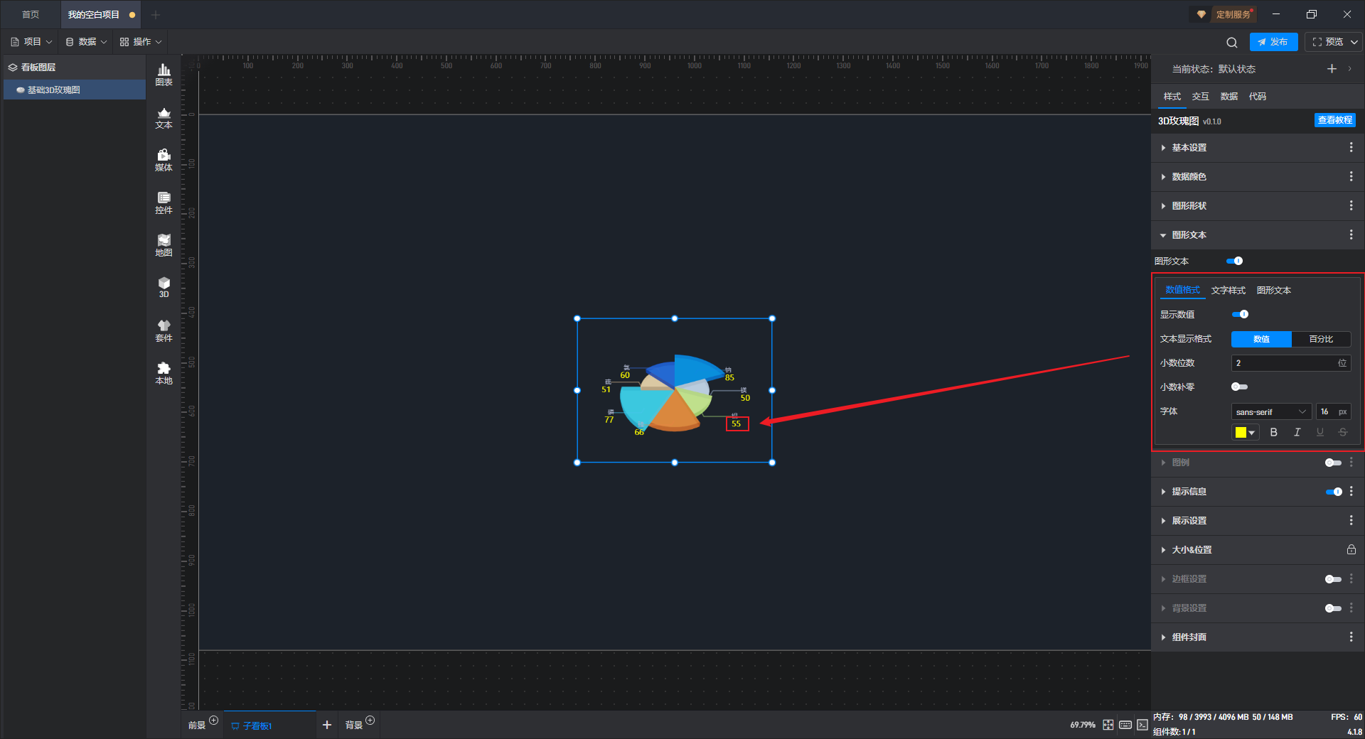 开启“图形文本”按钮后,组件中才能显示图形文字样式。