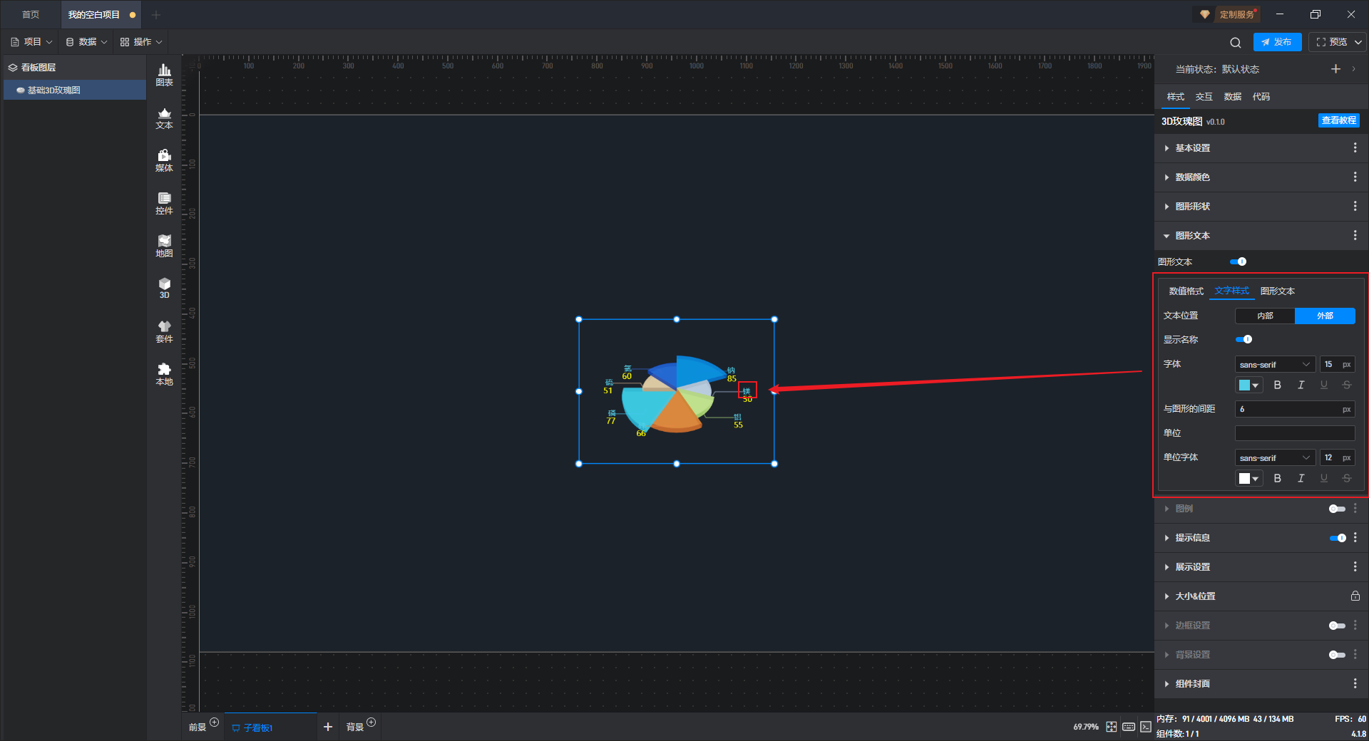 基础 3D 玫瑰图 图形文本文字样式,如下图所示: