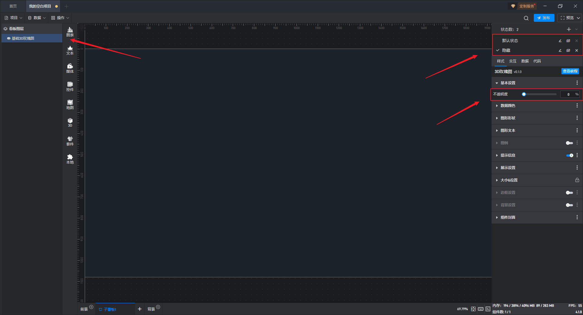 这里我们添加的数据字段中,数值是 0,所以最终效果是,通过动态数据字段将不透明度的数值修改为 0,从而让组件变成了隐藏。