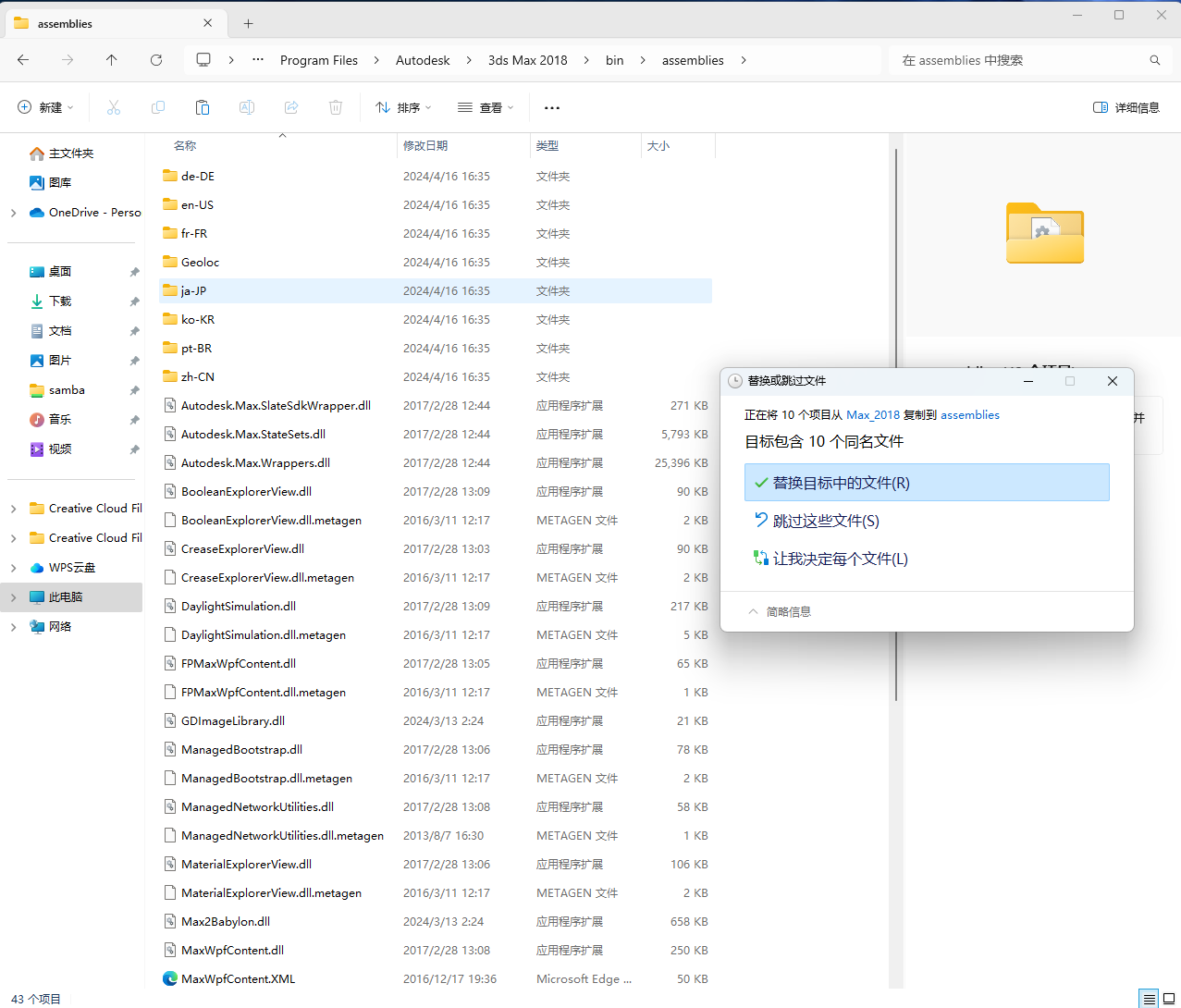 解压出来后全选所有的 dll 文件复制,然后粘贴到安装文件的这个位置下 Autodesk\3ds Max 2018\bin\assemblies,如果不知道位置,可以在桌面上选择图标右键打开文件所在位置。