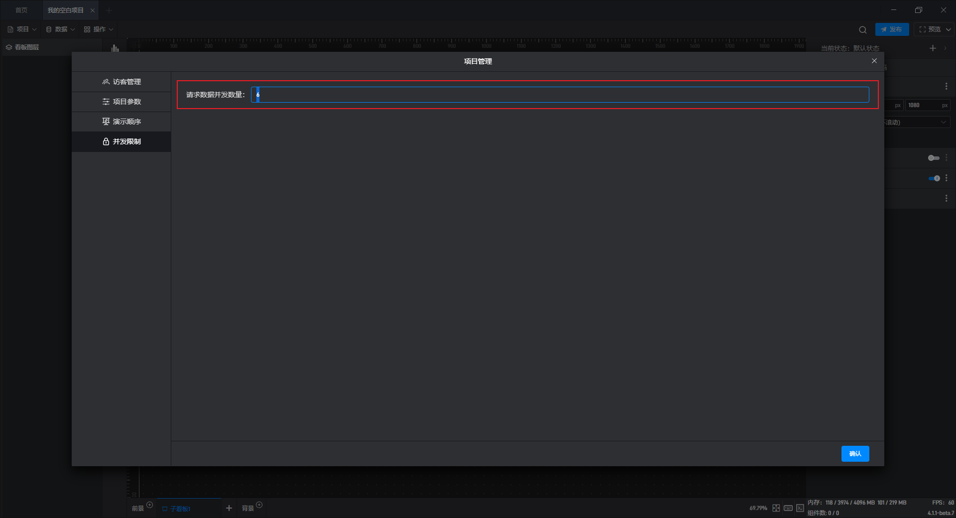 通过“并发限制”,可以设置在打开项目时发起数据请求的并发数量。
