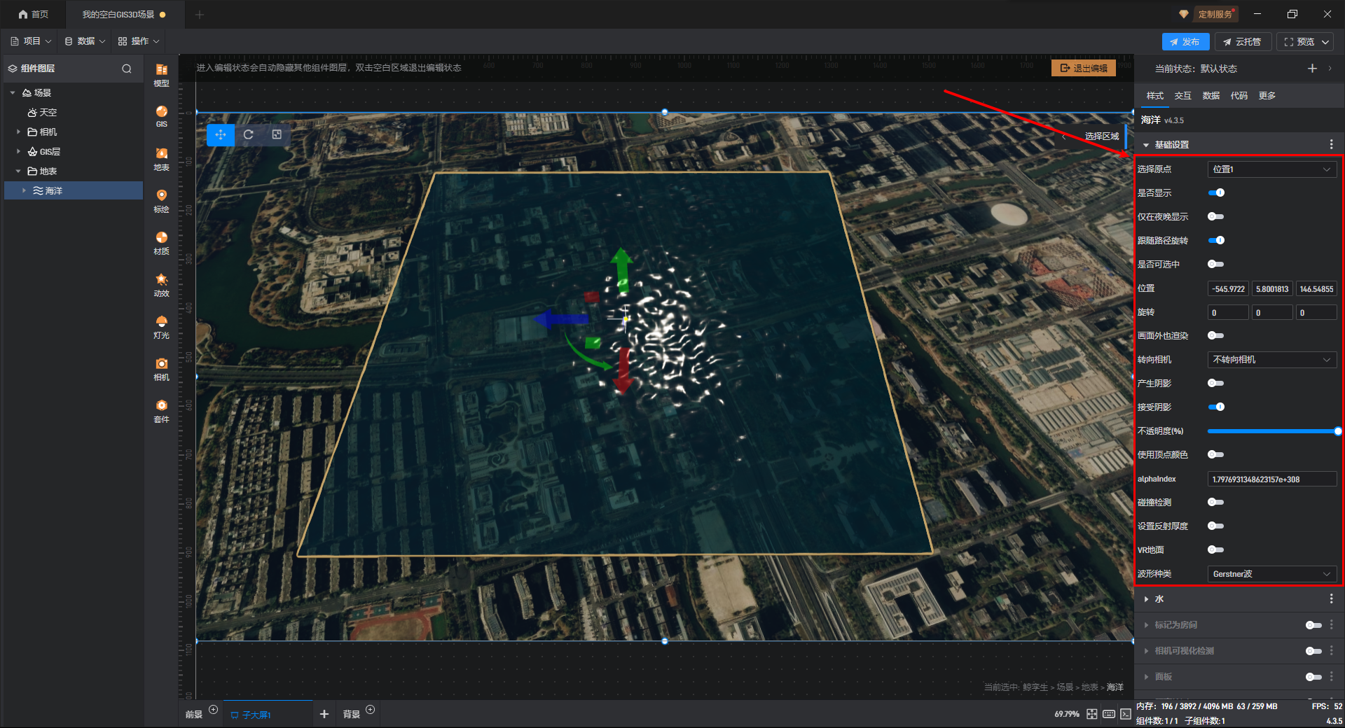 | 旋转 | 自定义设置海洋旋转角度。 |