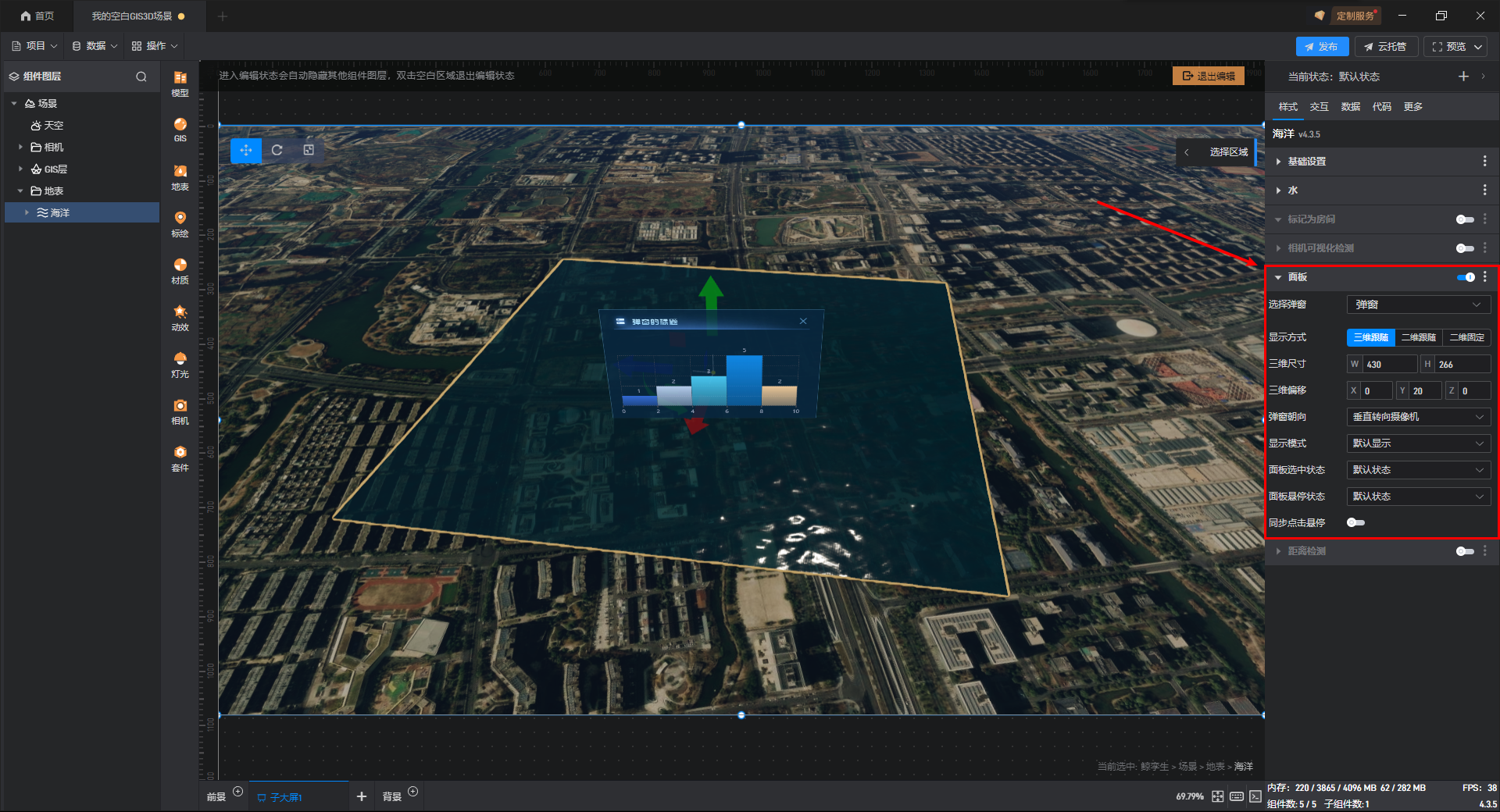 面板主要用于设置交互弹窗,当我们需要点击海洋显示某一弹窗时可在此处进行设置,具体设置项如下: