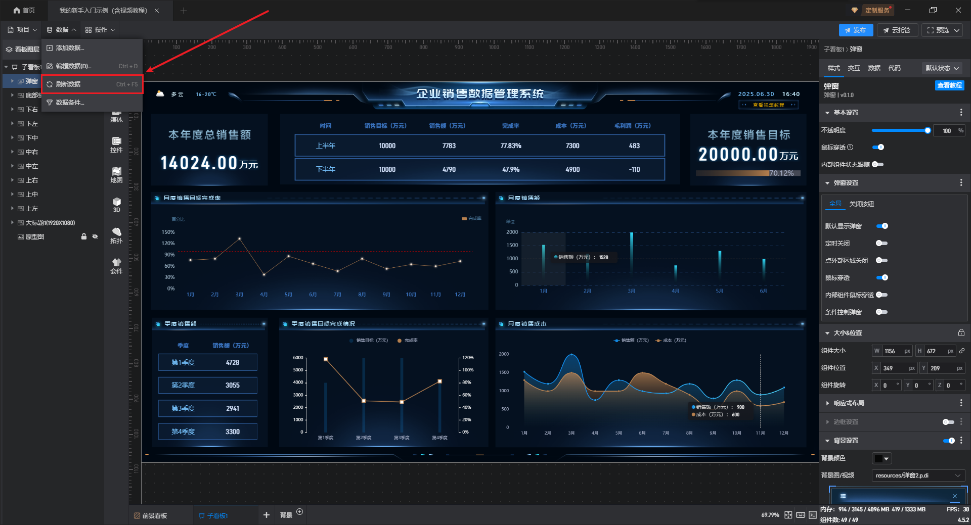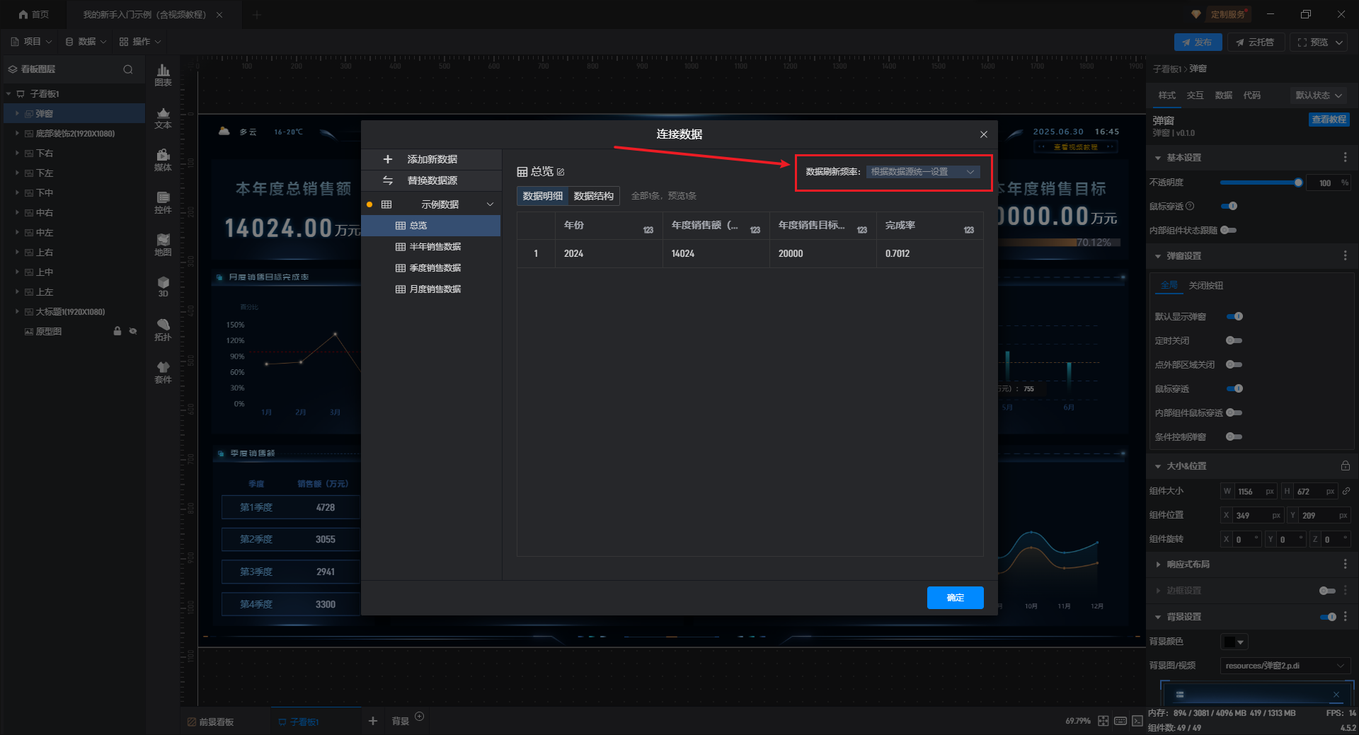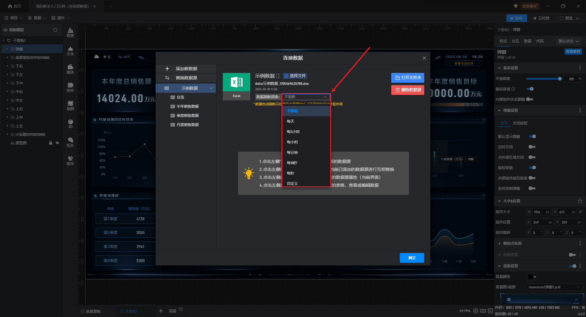 自动更新主要是针对看板在全屏播放过程中,希望随着数据源数据的更新,看板中能够展示更新之后的数据。