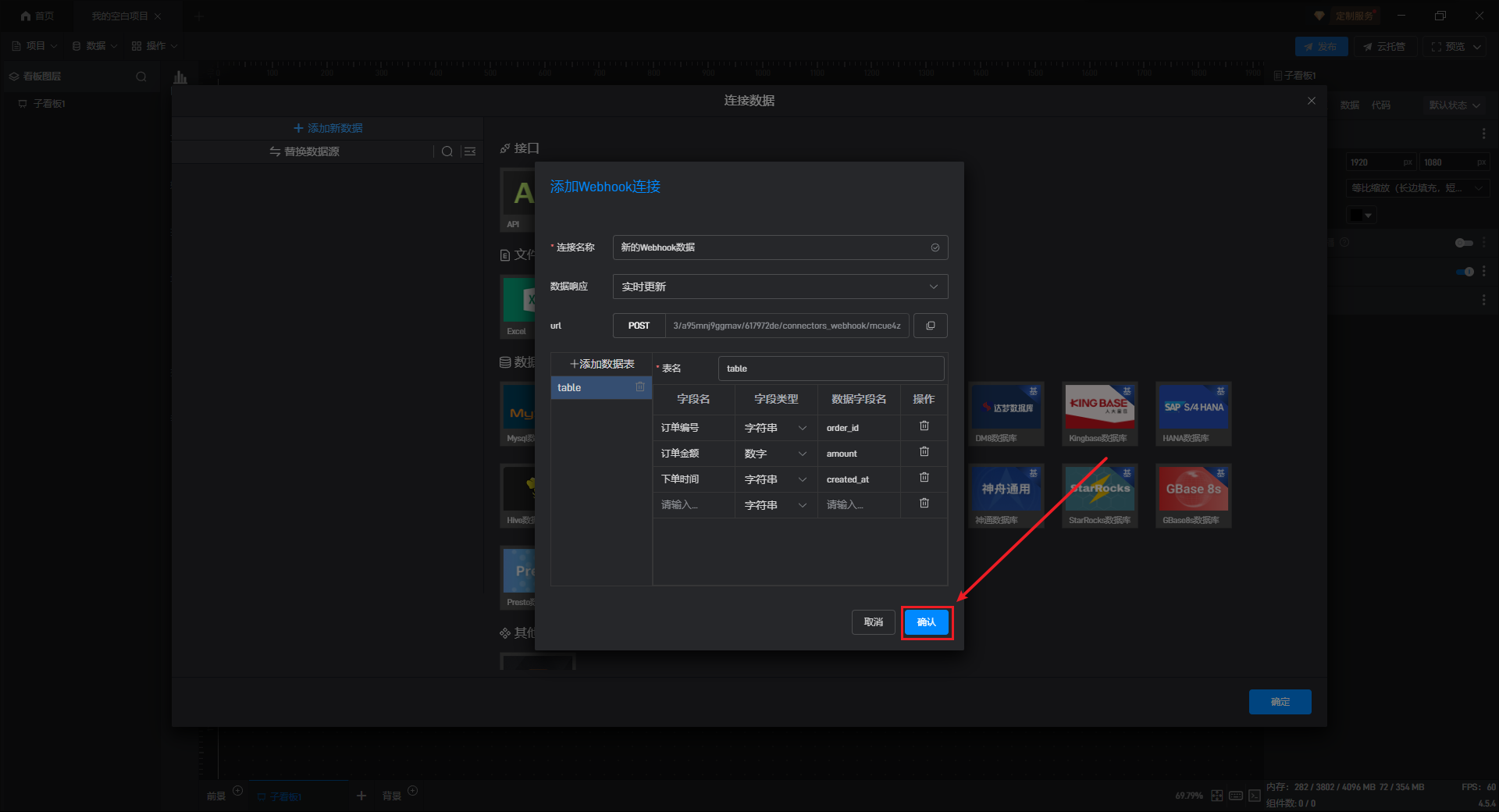 设置完成后,点击“确定”按钮即可完成 Webhook 数据的连接。