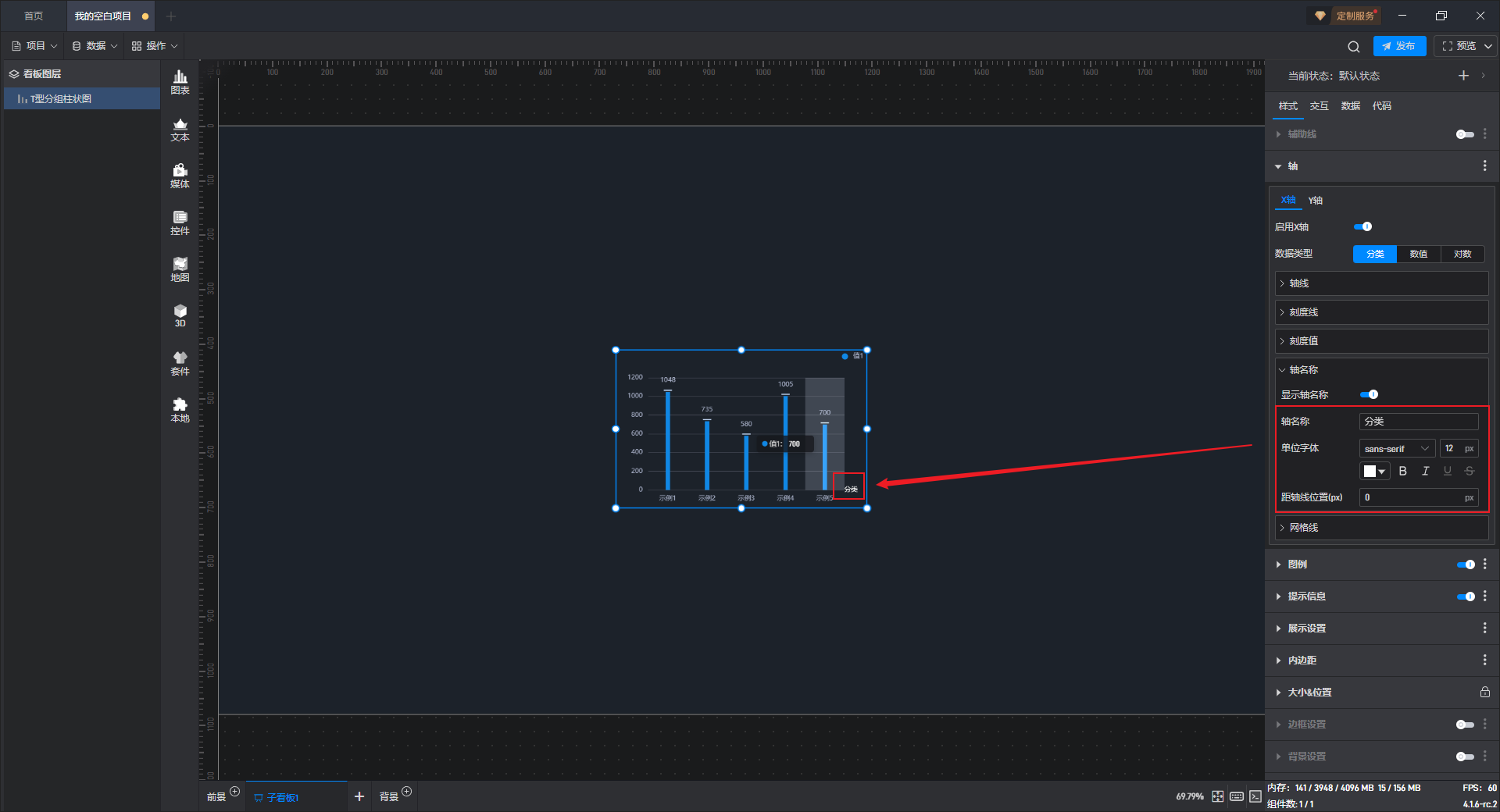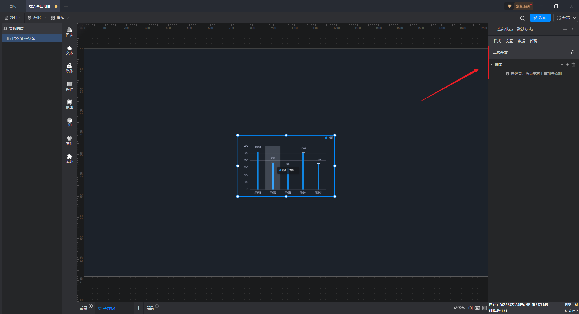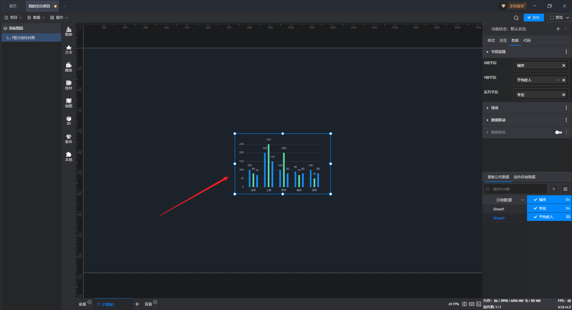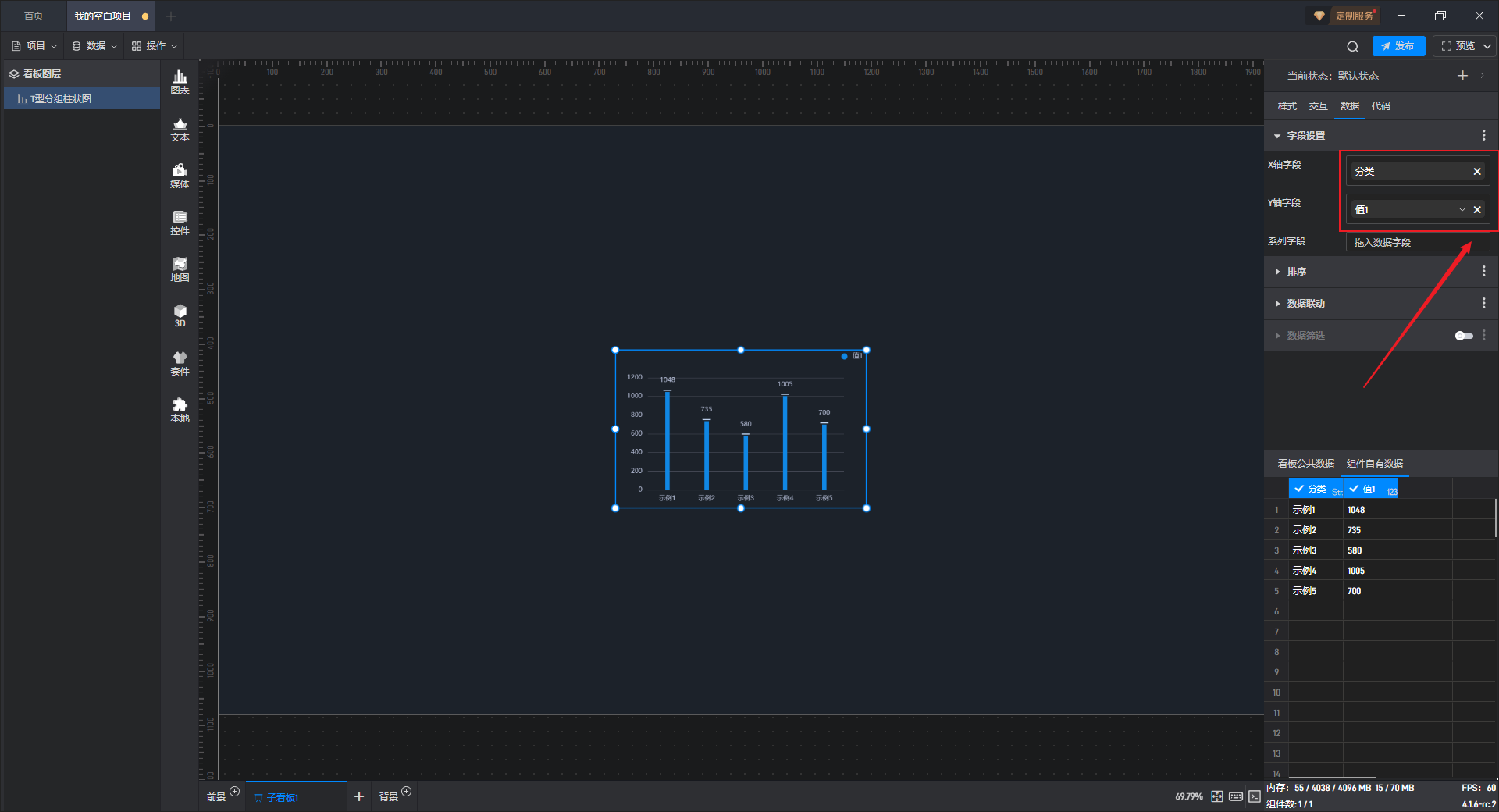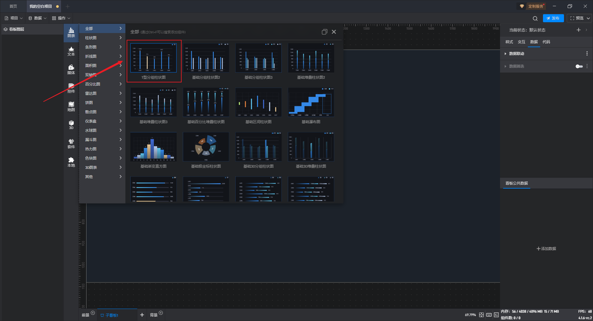 下面我们以T 型分组柱状图为例,为大家介绍一下组件的使用步骤: