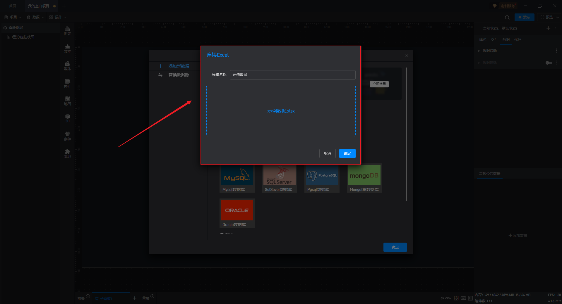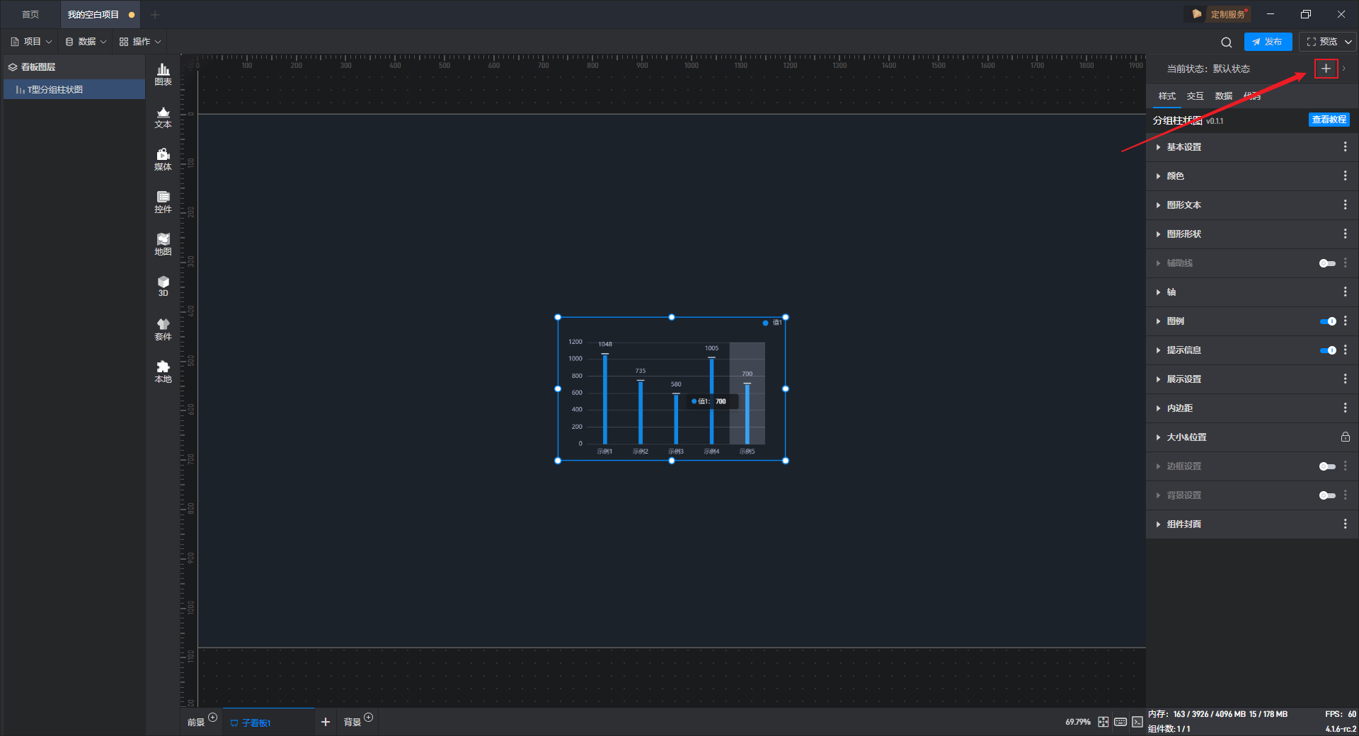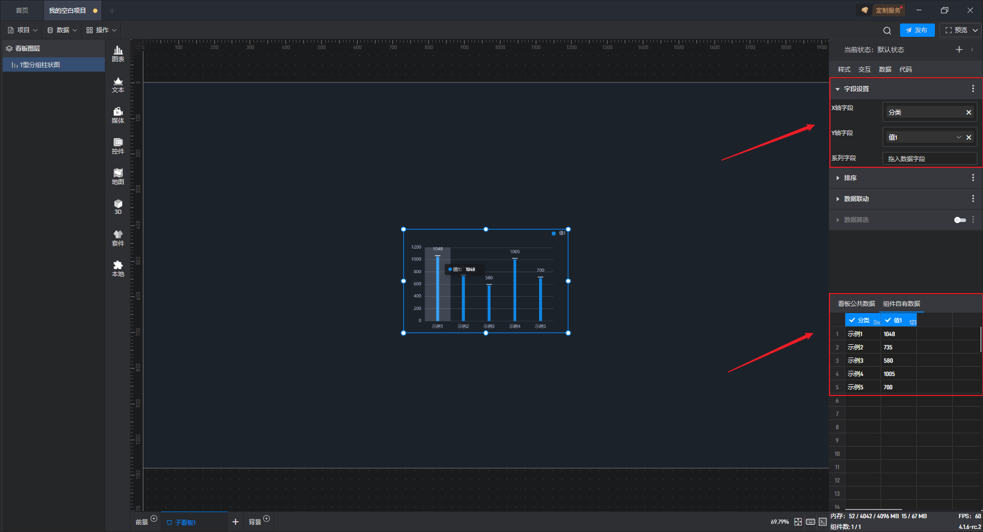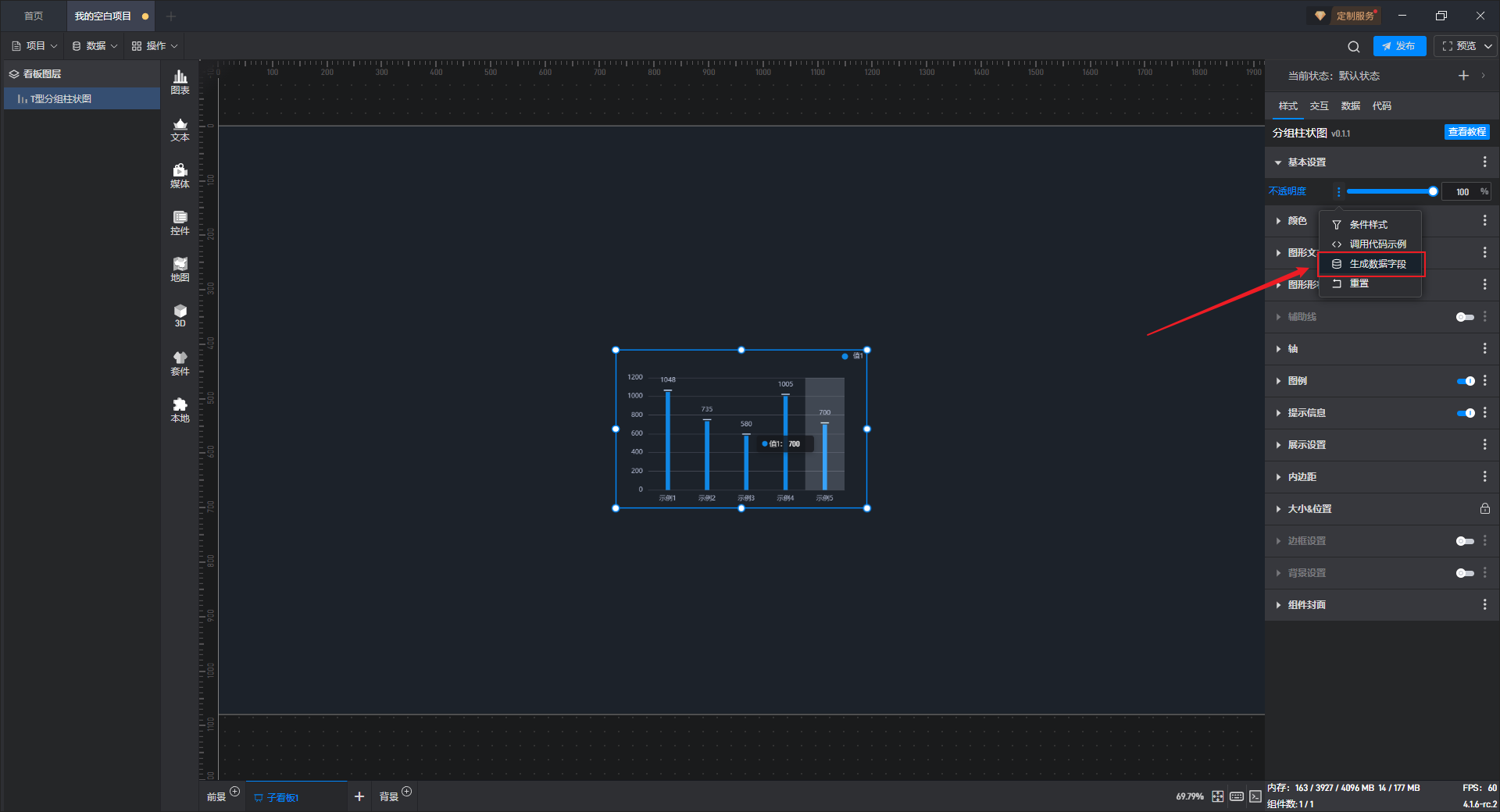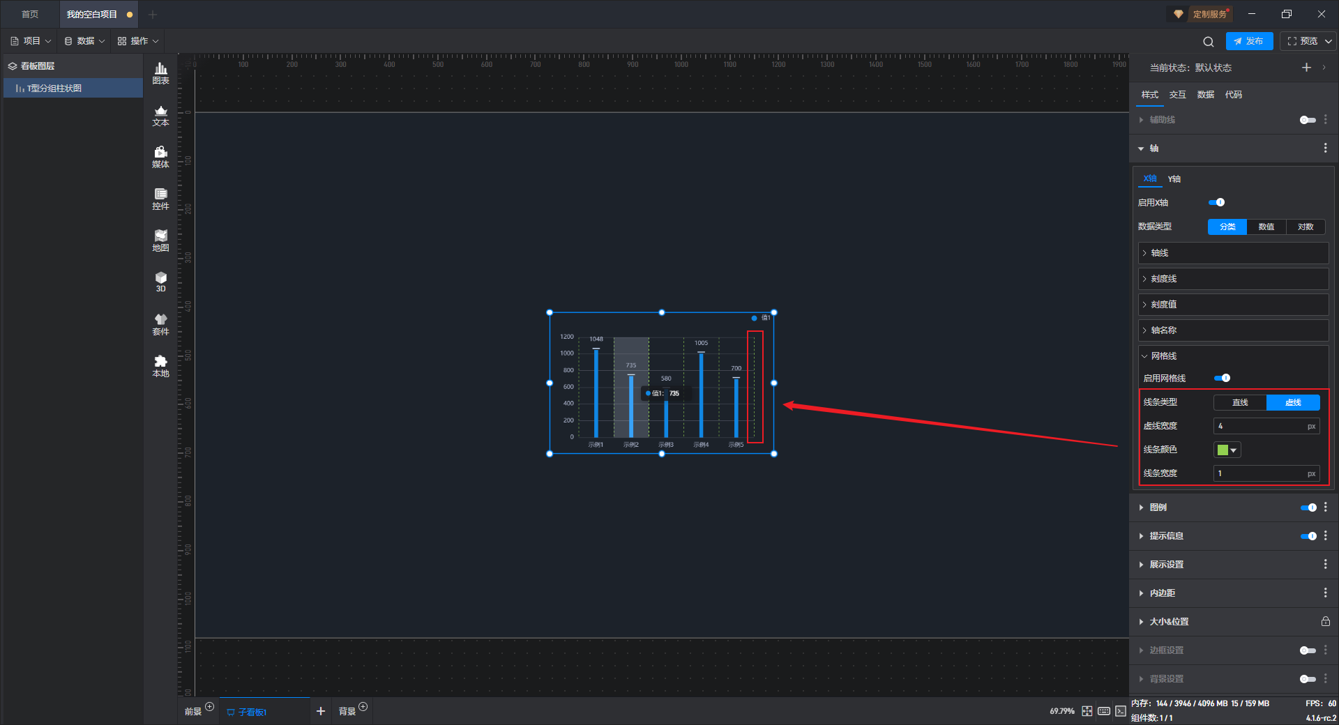 下面我们以T 型分组柱状图为例,为大家介绍一下组件的使用步骤: