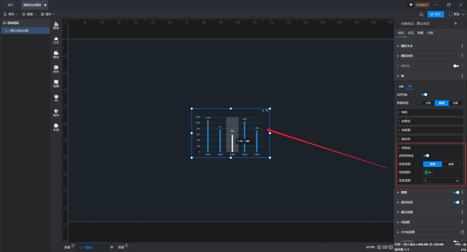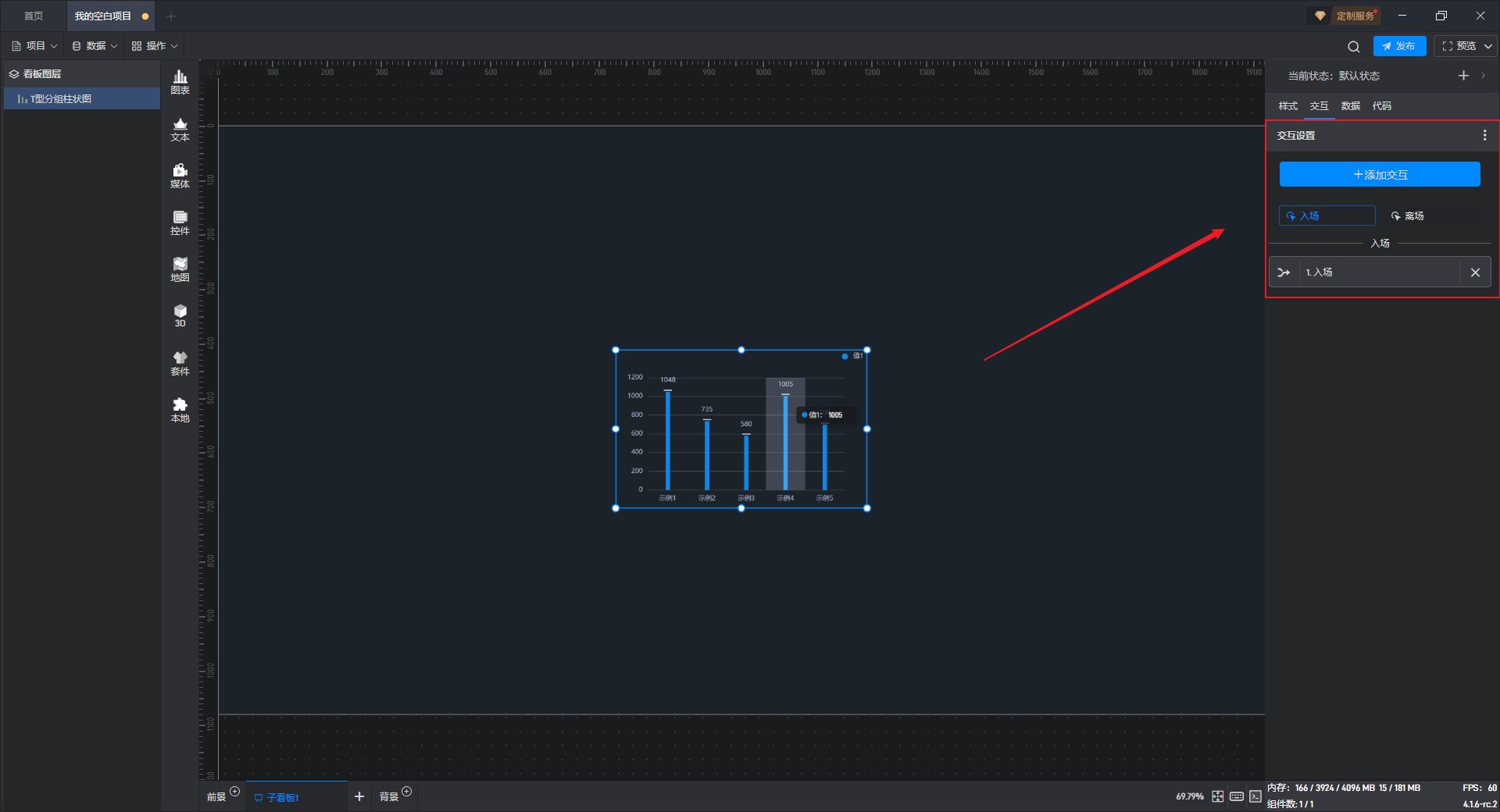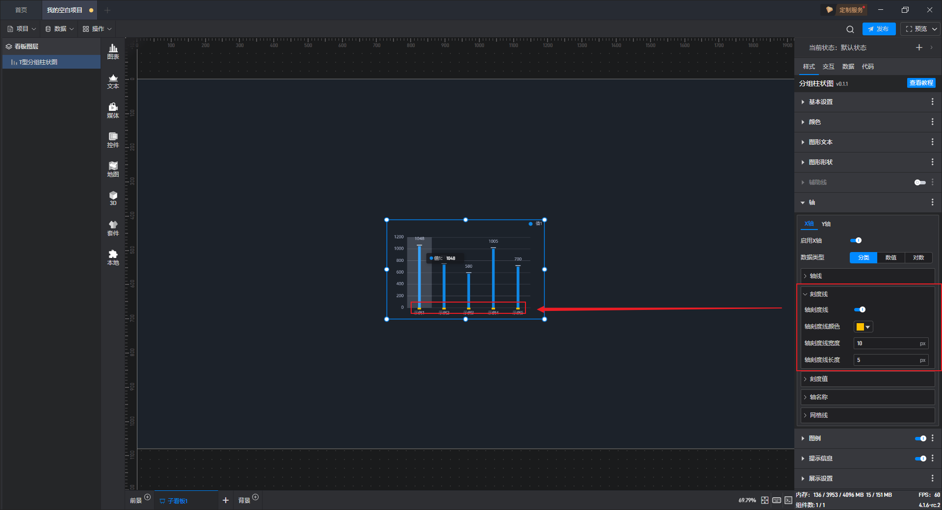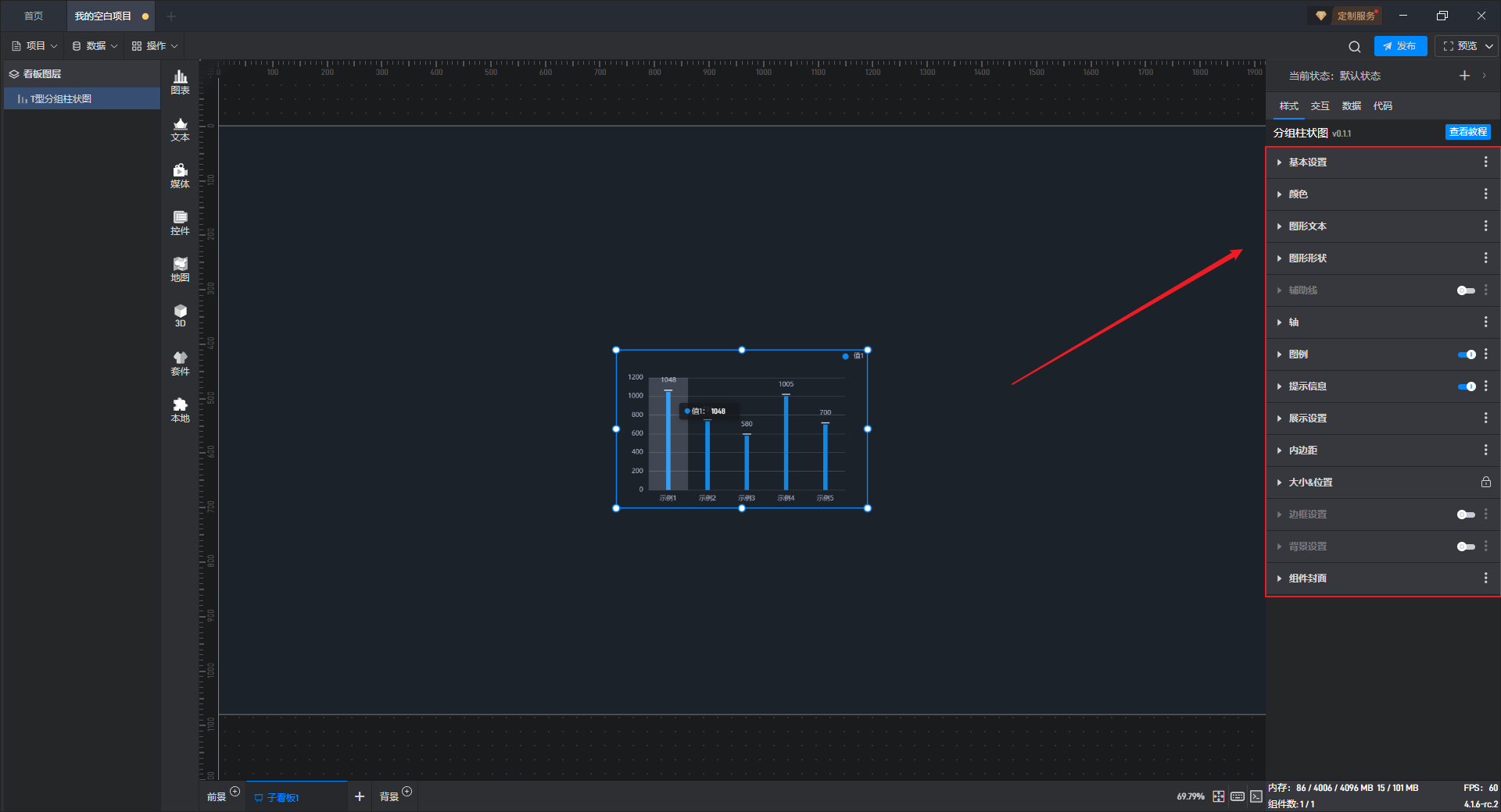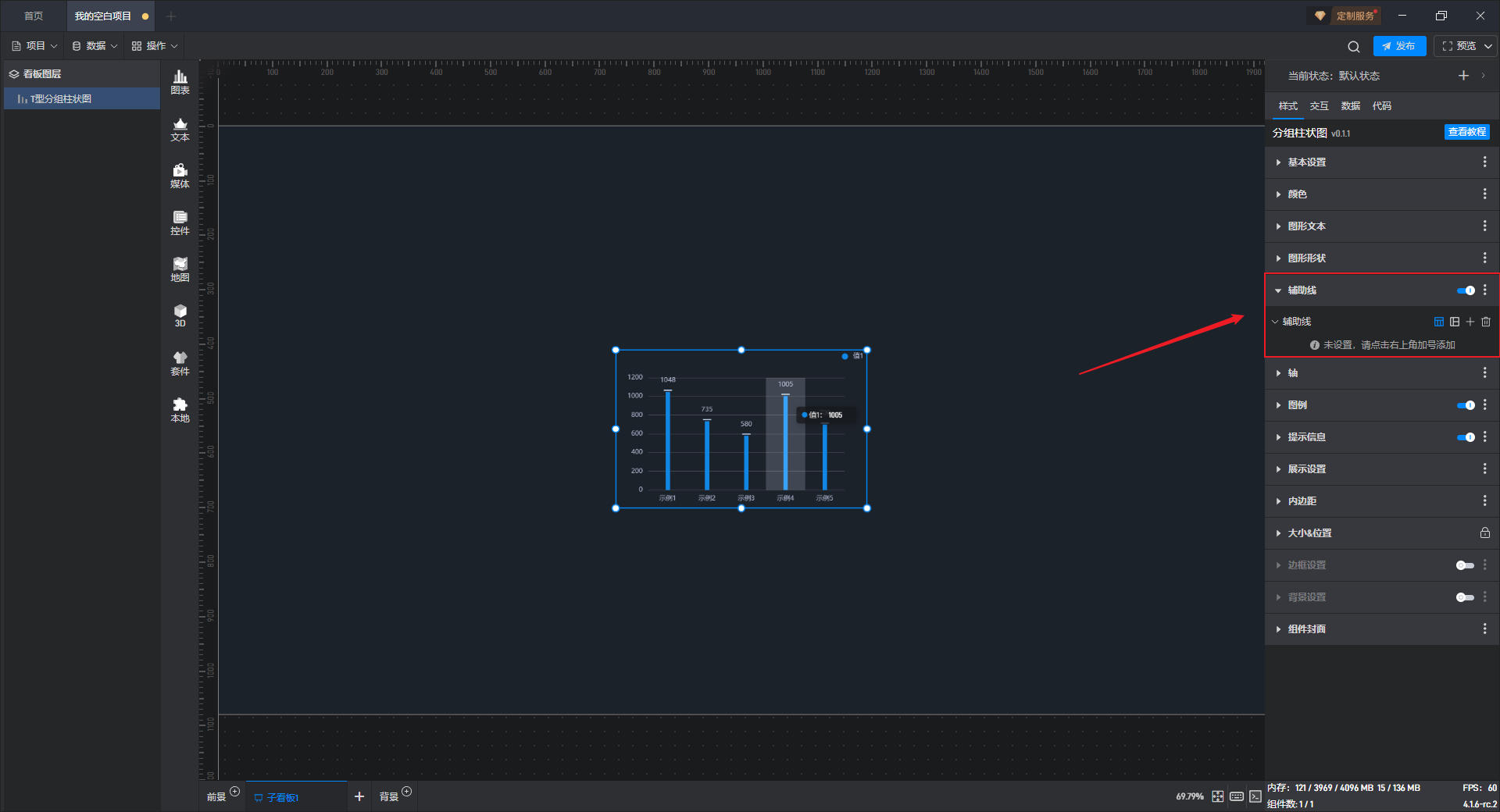 下面我们以T 型分组柱状图为例,为大家介绍一下组件的使用步骤: