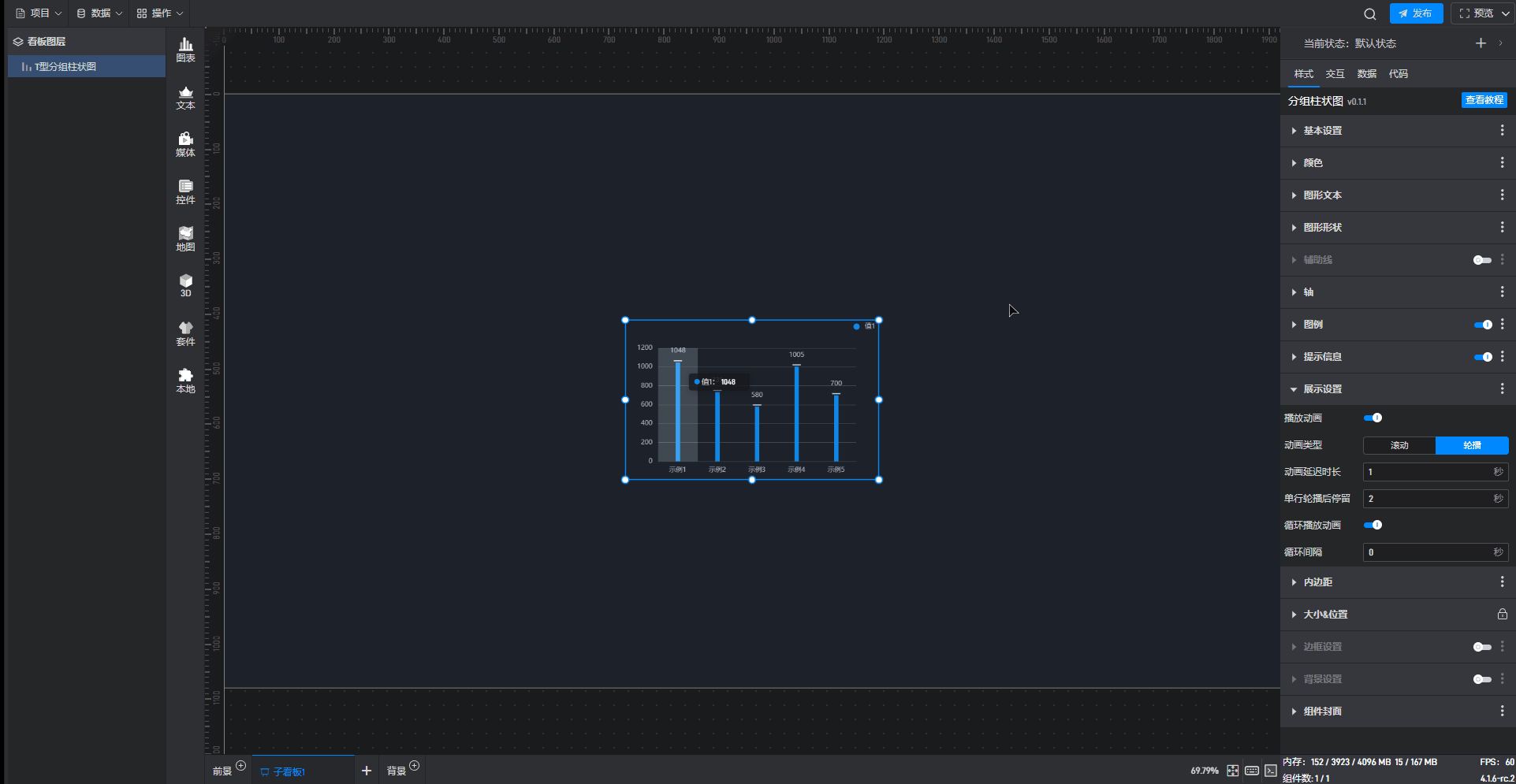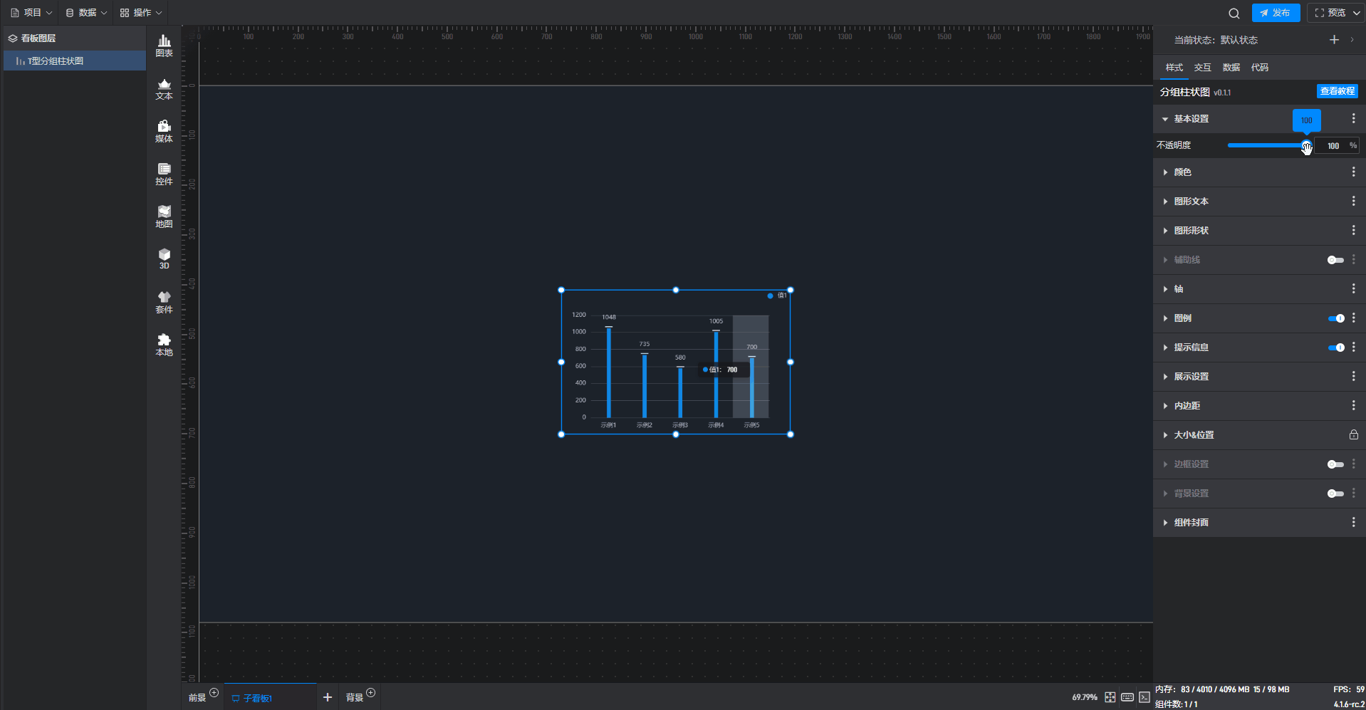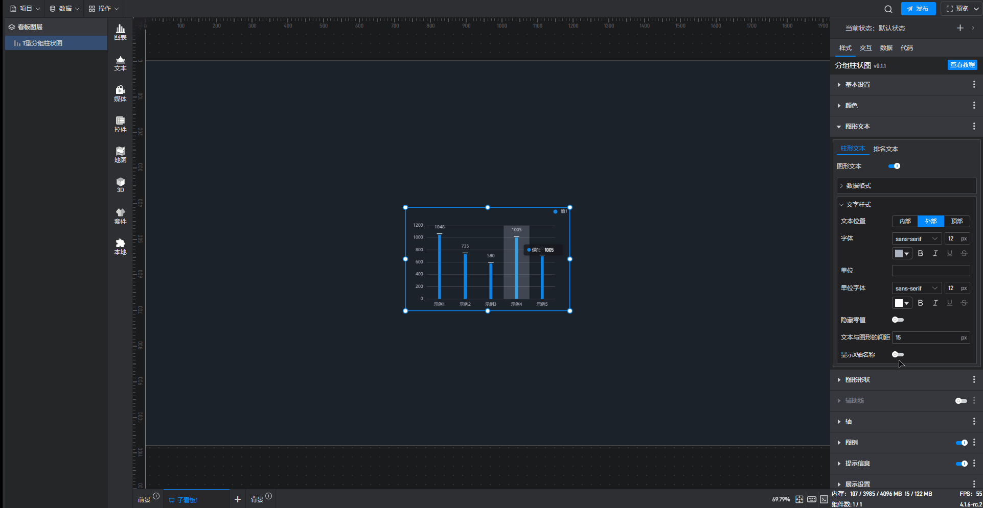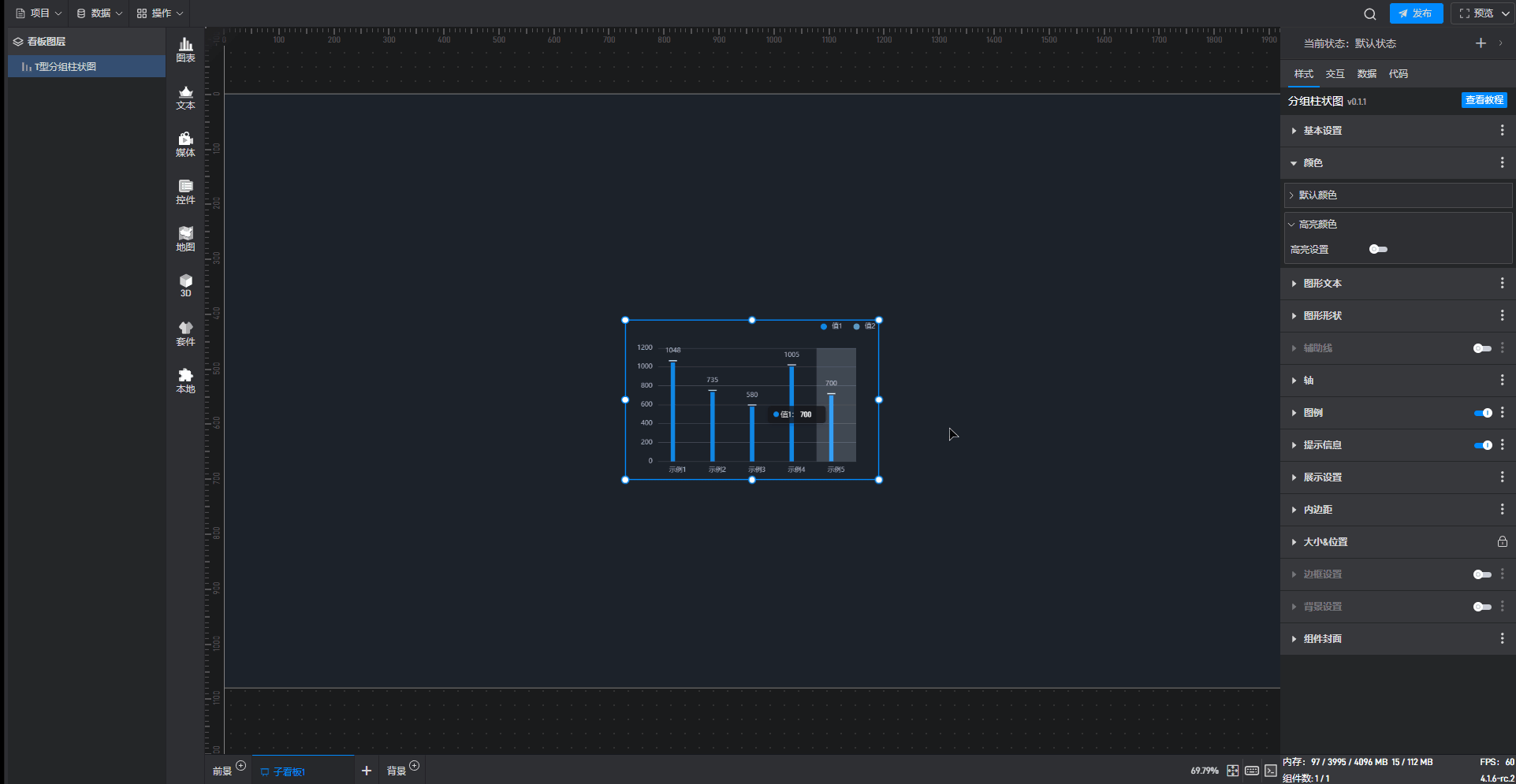 这是一个没有开启“高亮设置”按钮的分组柱状图组件: