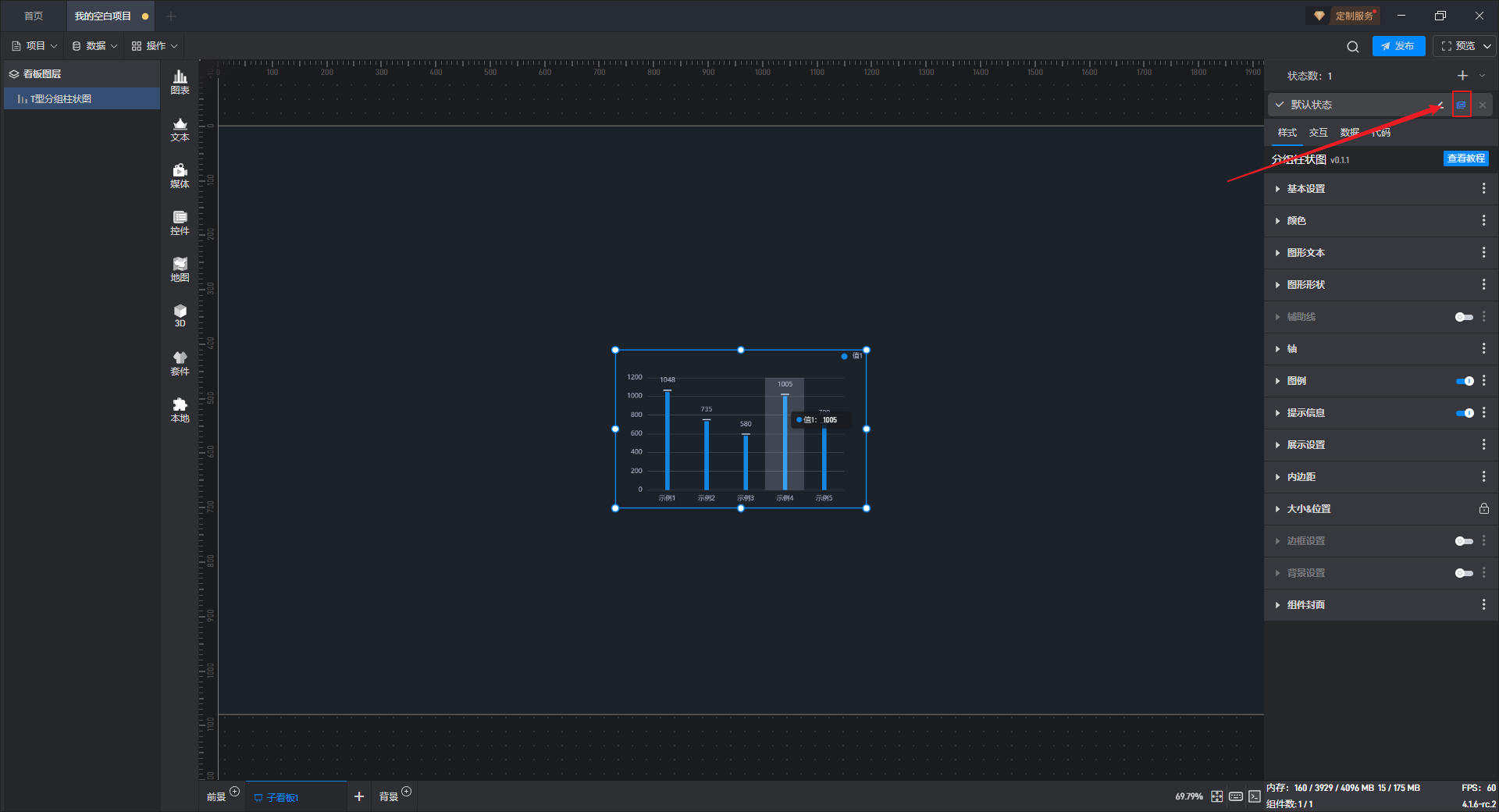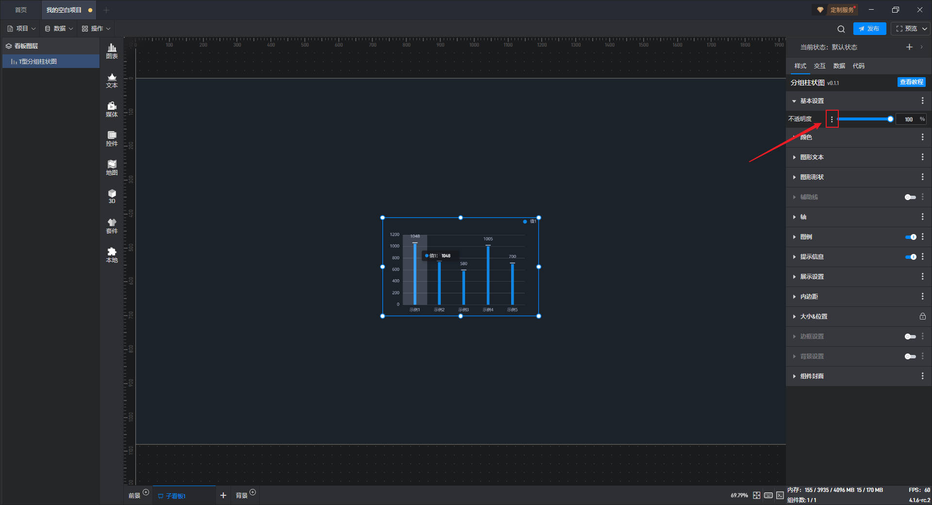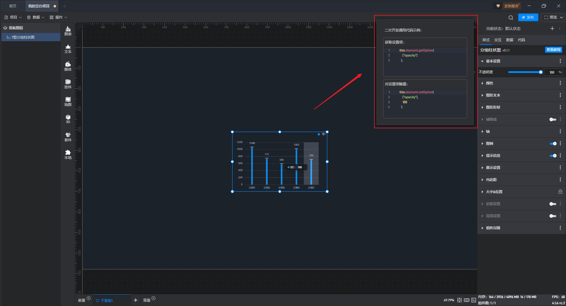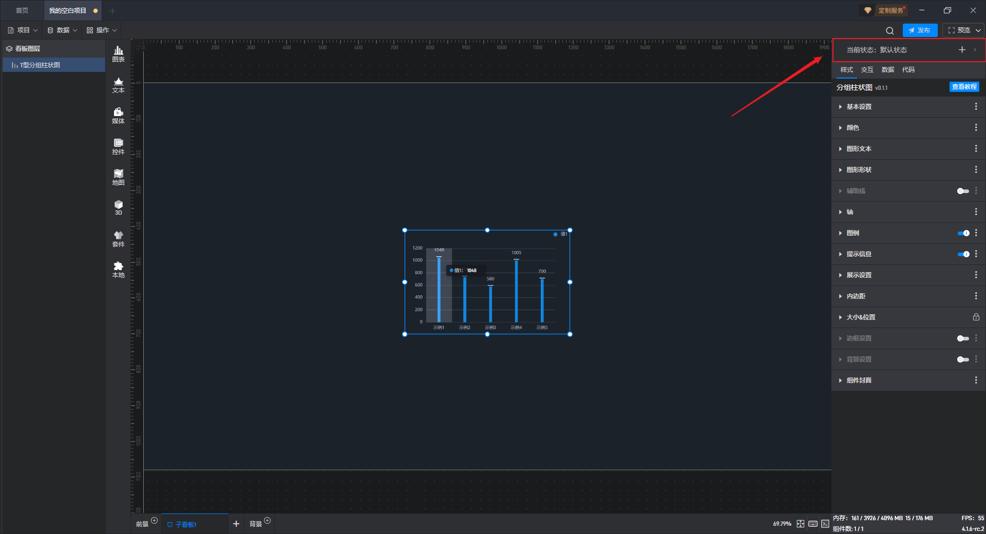 这是一个没有开启“高亮设置”按钮的分组柱状图组件: