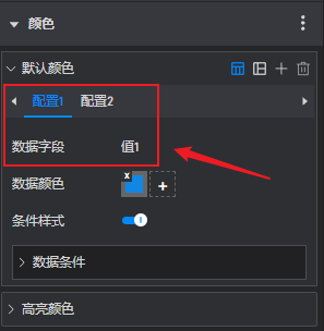 我们也可以在不修改数据字段排序的情况下,通过拖动配置项的顺序来修改配置,例如将“配置 2”拖动到“配置 1”前面,这样之前“配置 2”就变成了“配置 1”,排序第一位的数据字段(“值 1”)就会自动使用这个配置项。